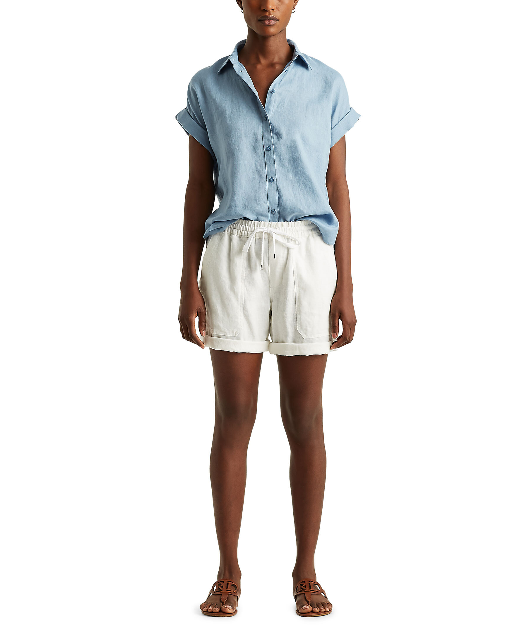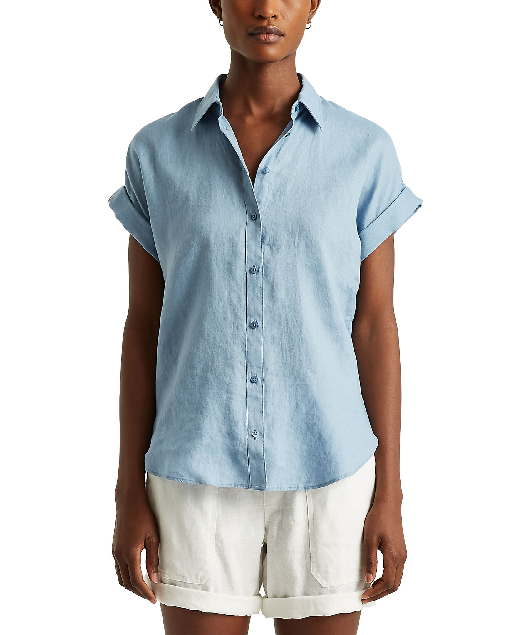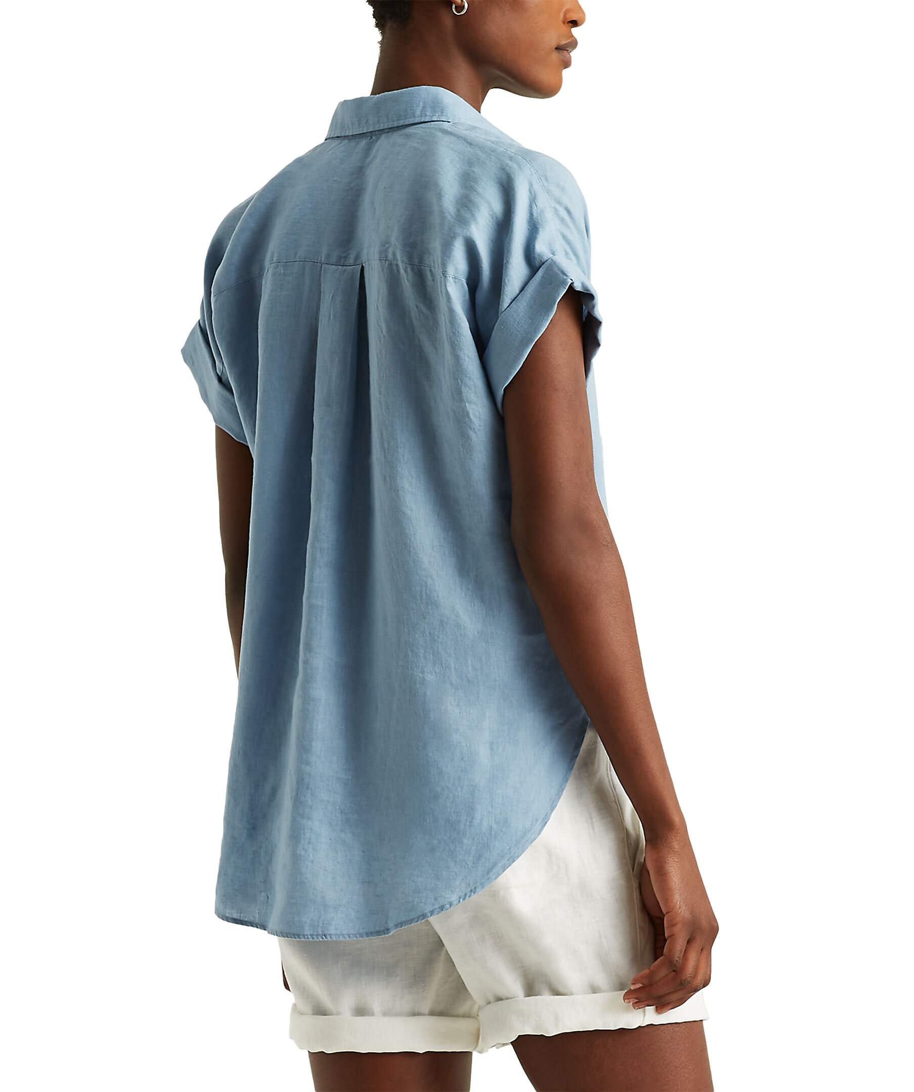 Duvblå linneskjorta från Lauren Ralph Lauren. Skjortan har korta upprullade ärmar och en avslappnad passform. Gjord i skönt och luftigt linnetyg.