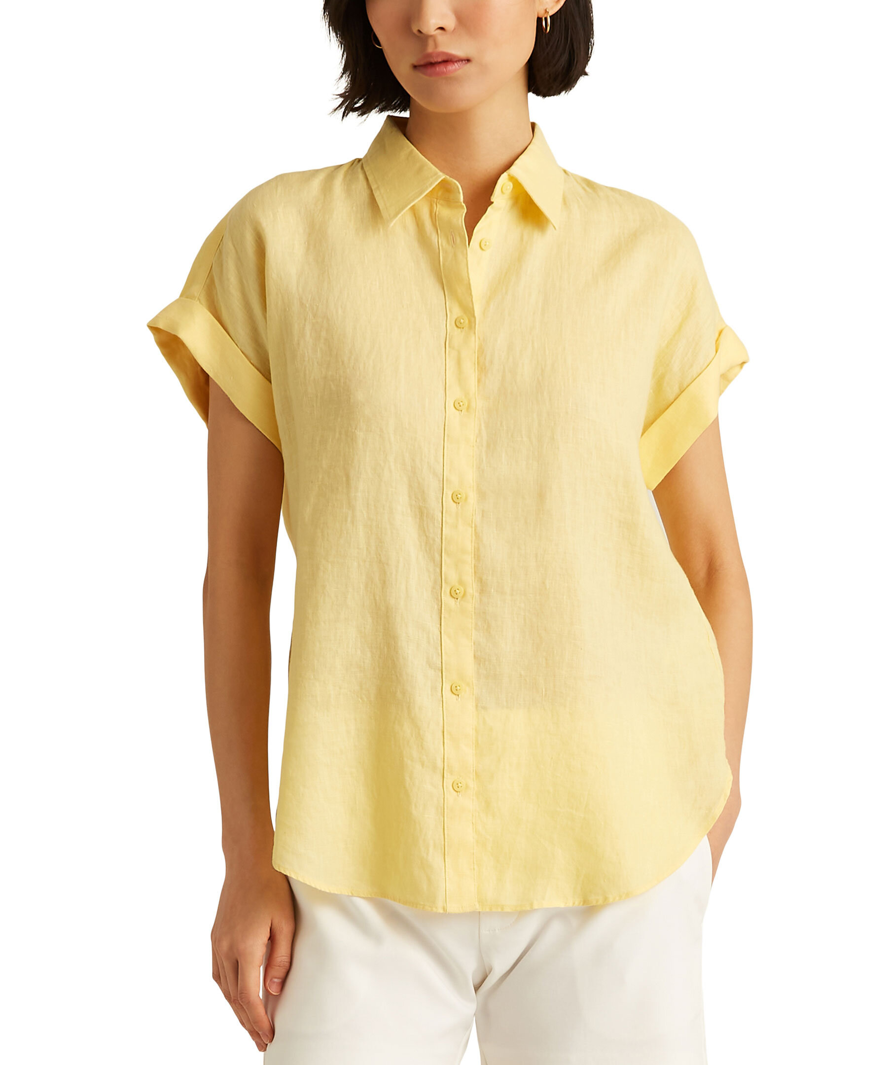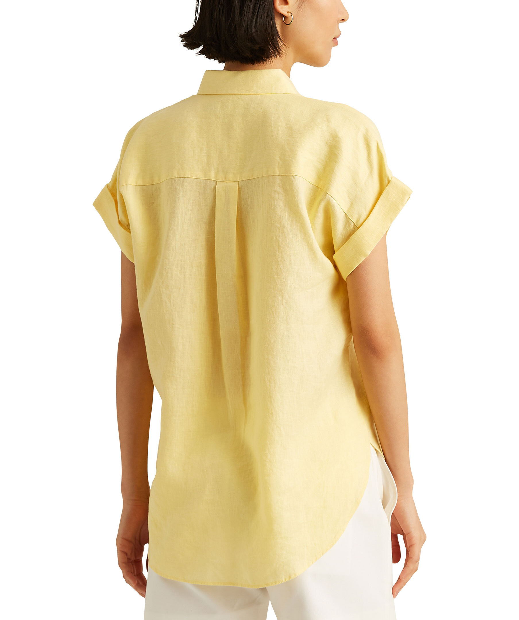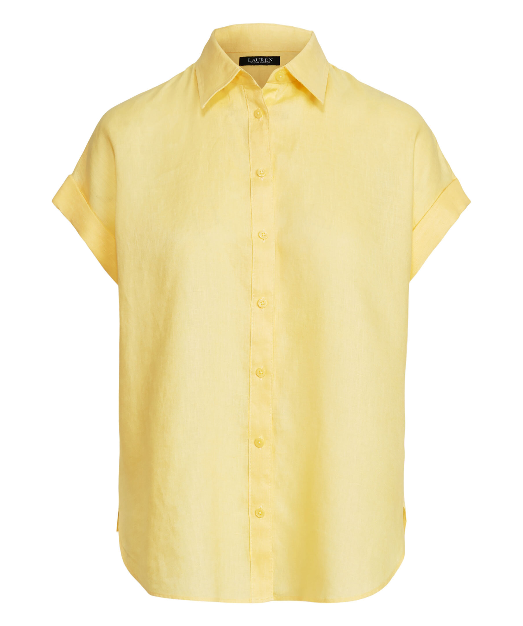 Lauren Ralph Lauren Broono Ss Linen Shirt - Citrongul
