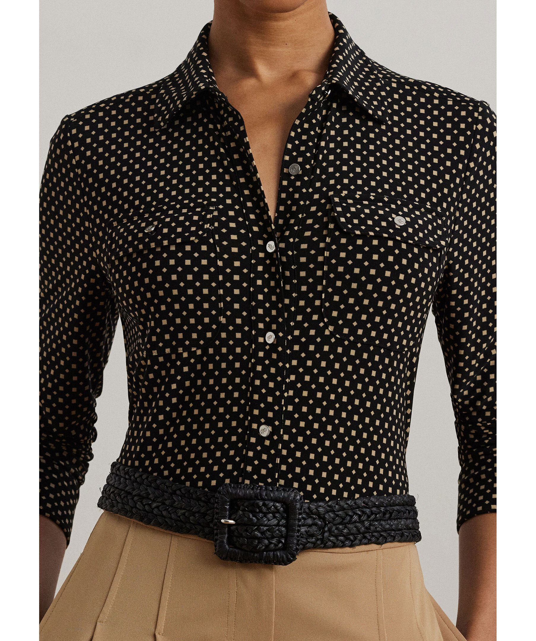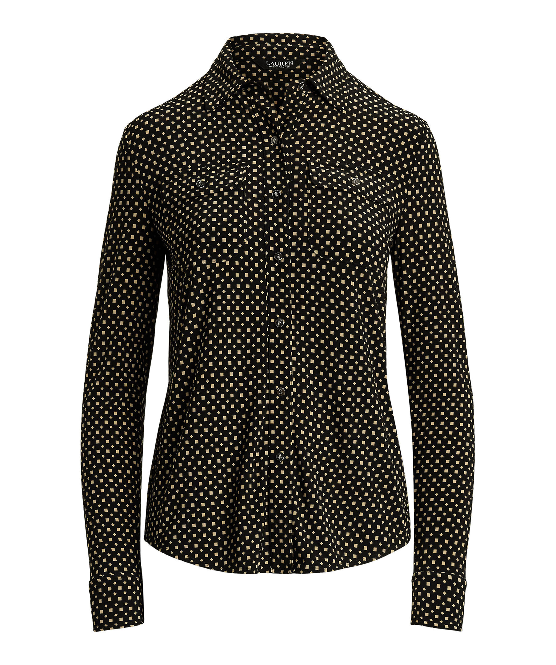 Mönstrad skjorta från Lauren Ralph Lauren. Stängs med knappar framtill och har två bröstfickor med lock och knapp. Tillverkad i en stretchig polyesterblandning.