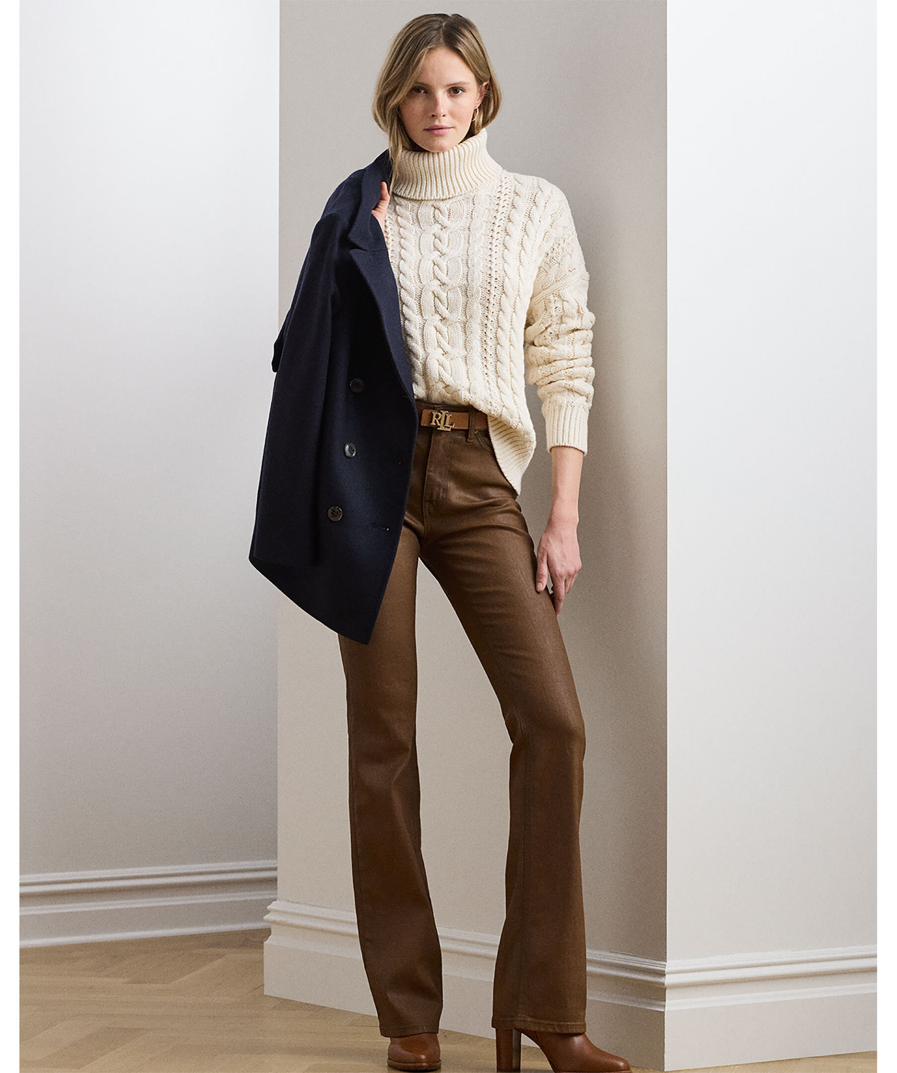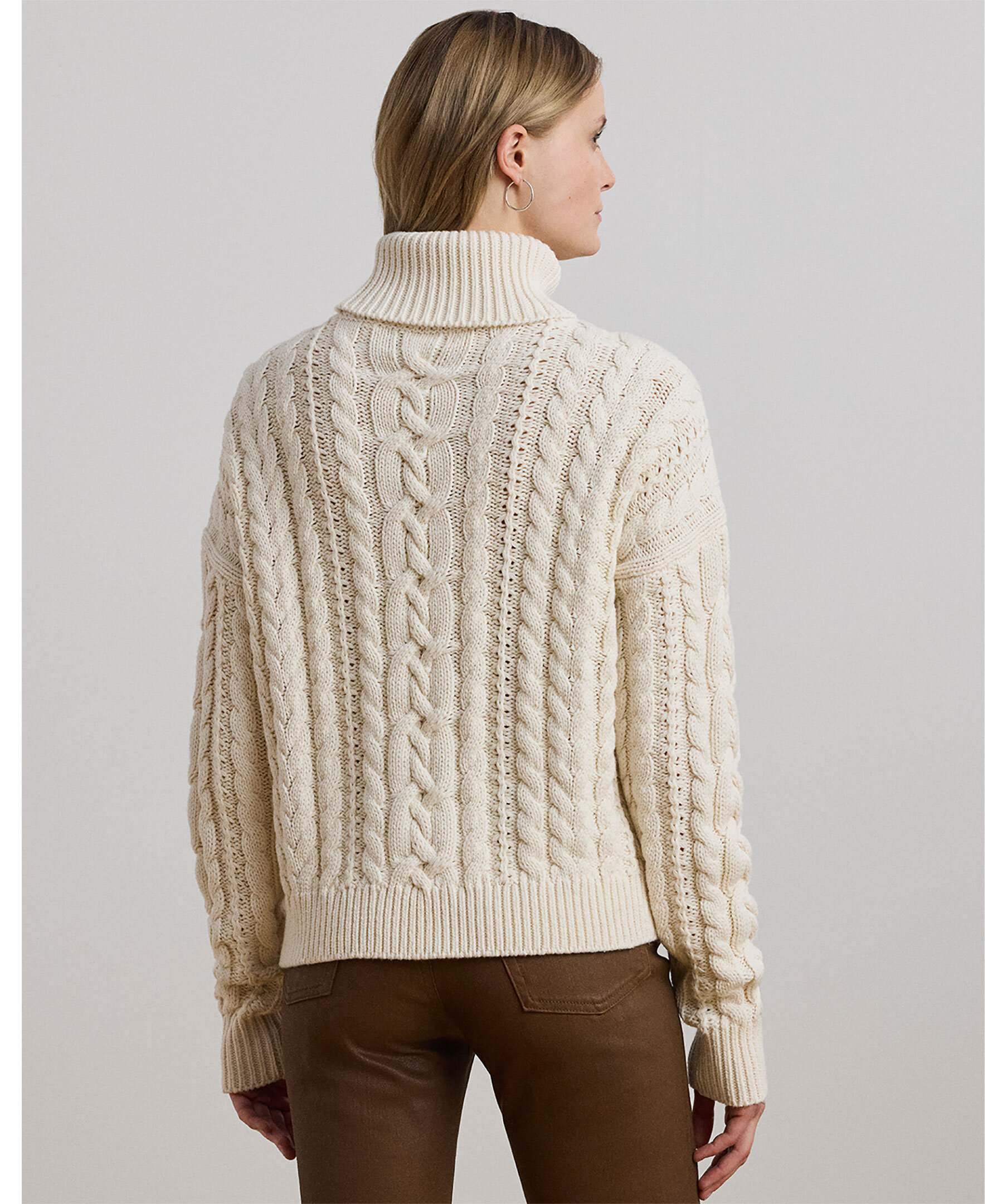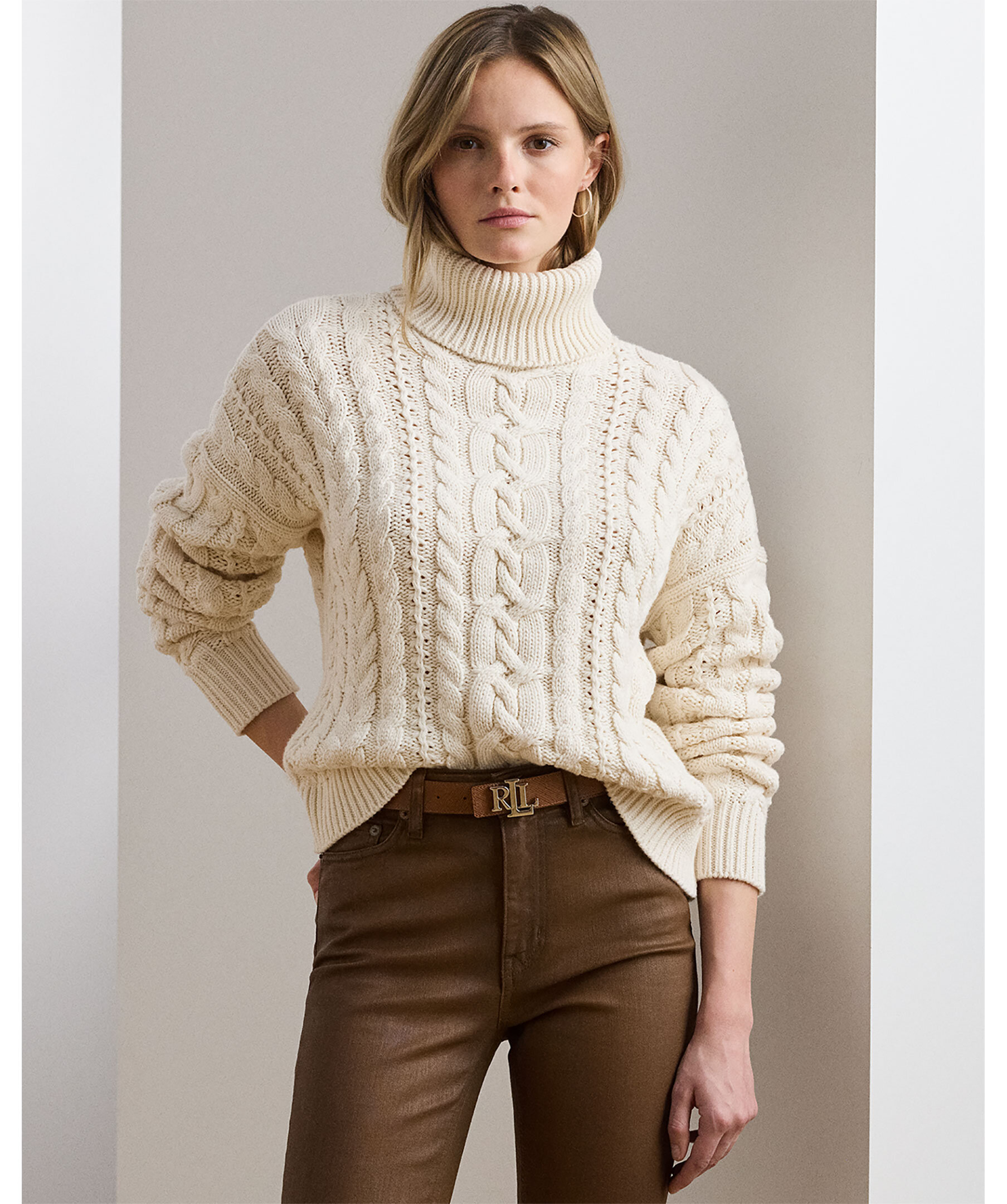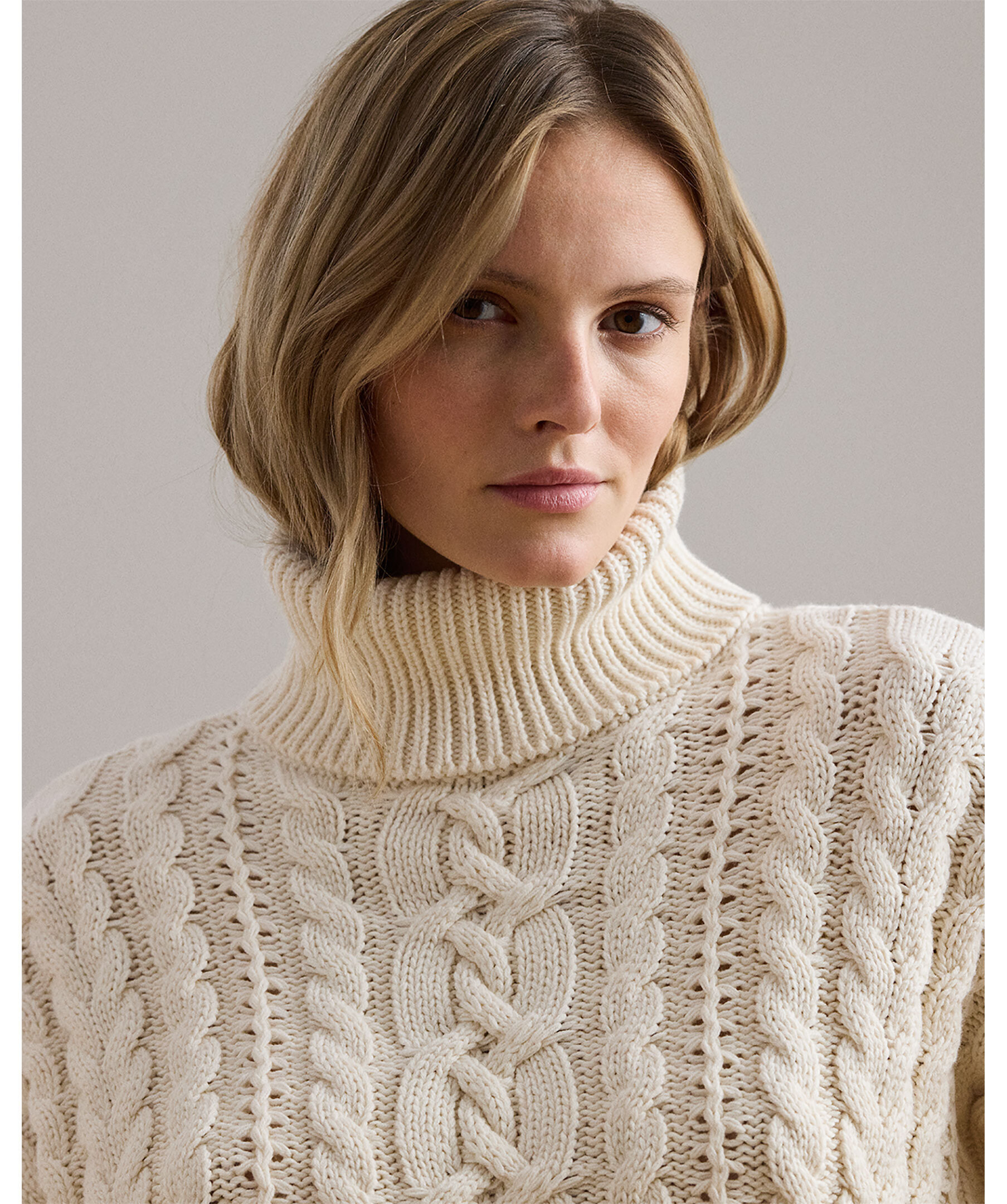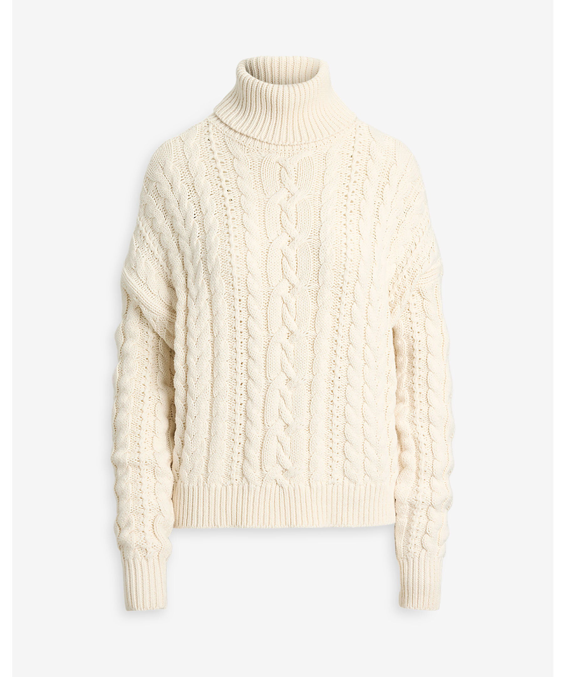 Krämvit, kabelstickad polotröja från Lauren Ralph Lauren.