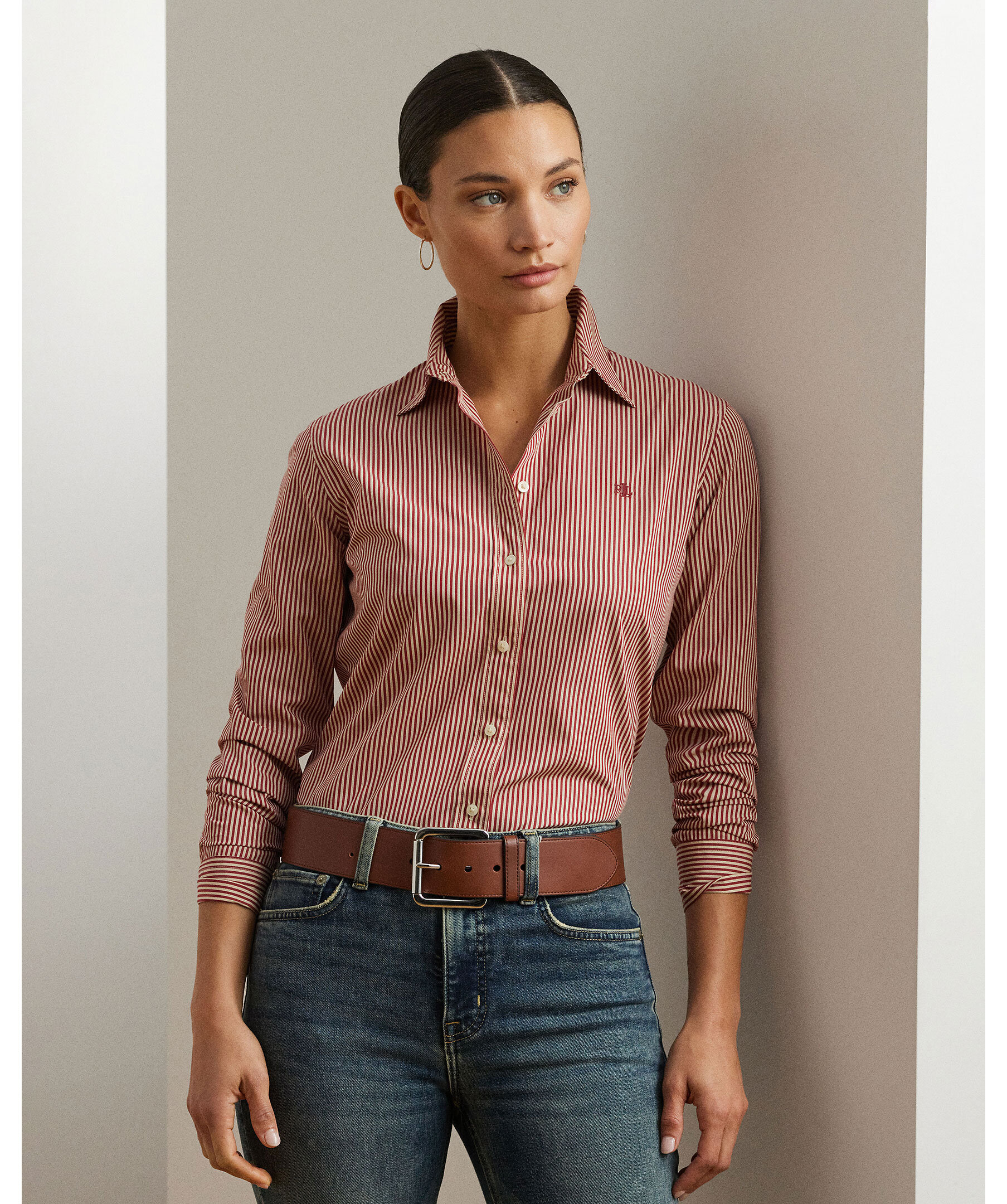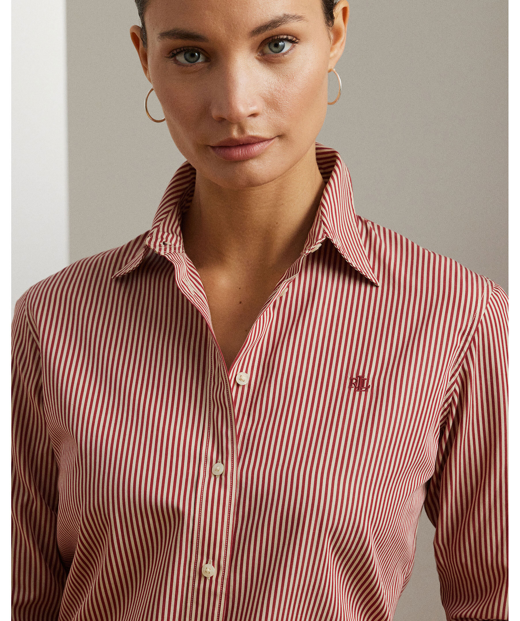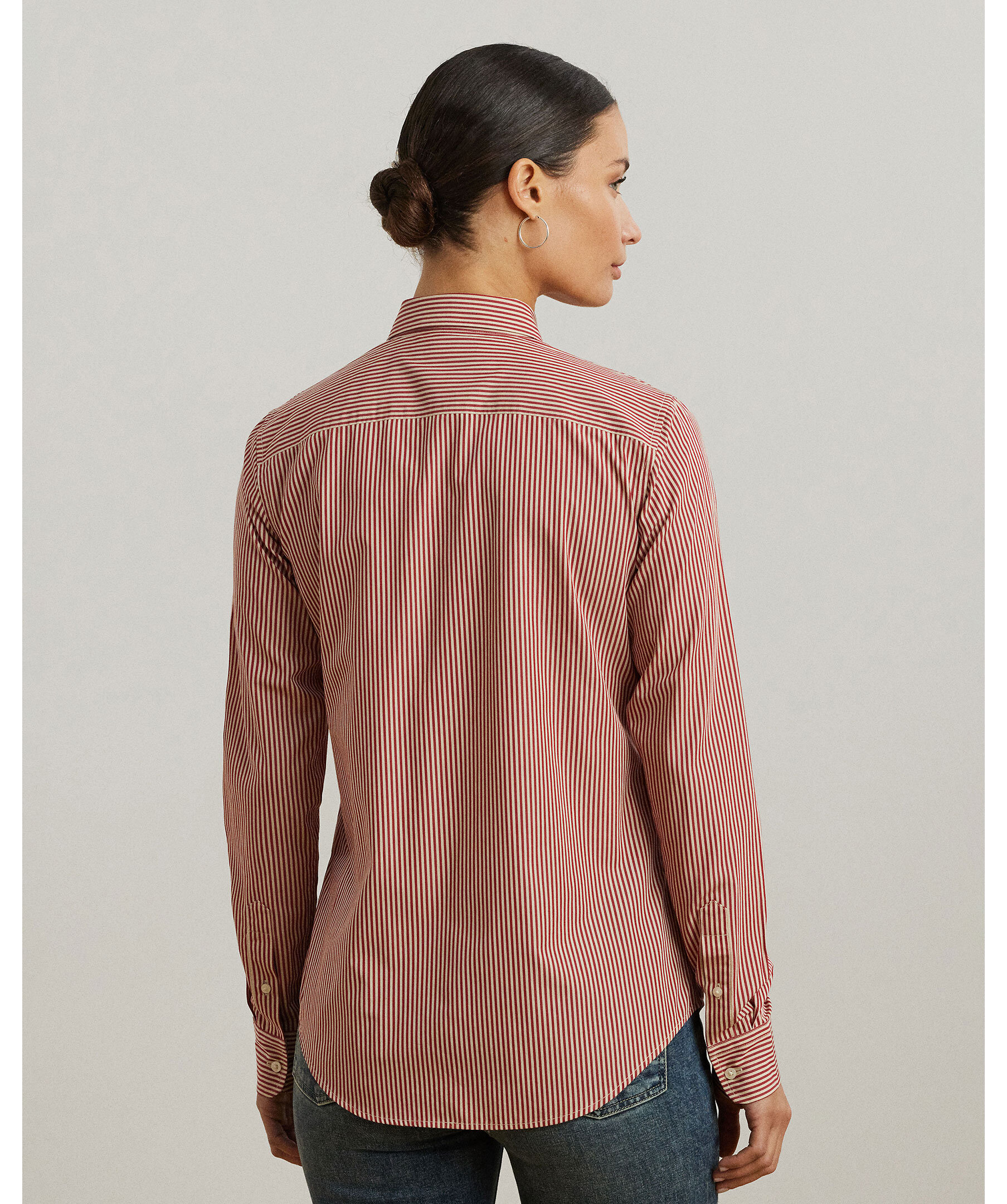 Skjorta i randigt bomull från Lauren Ralph Lauren. Skjortan har en rak passform och skräddad känsla. Den har point-krage, hel knäppning med graverade knappar, långa ärmar med manschetter samt LRL-broderi på bröstet. Ett mångsidigt plagg som fungerar både till vardags och mer dressade tillfällen.
