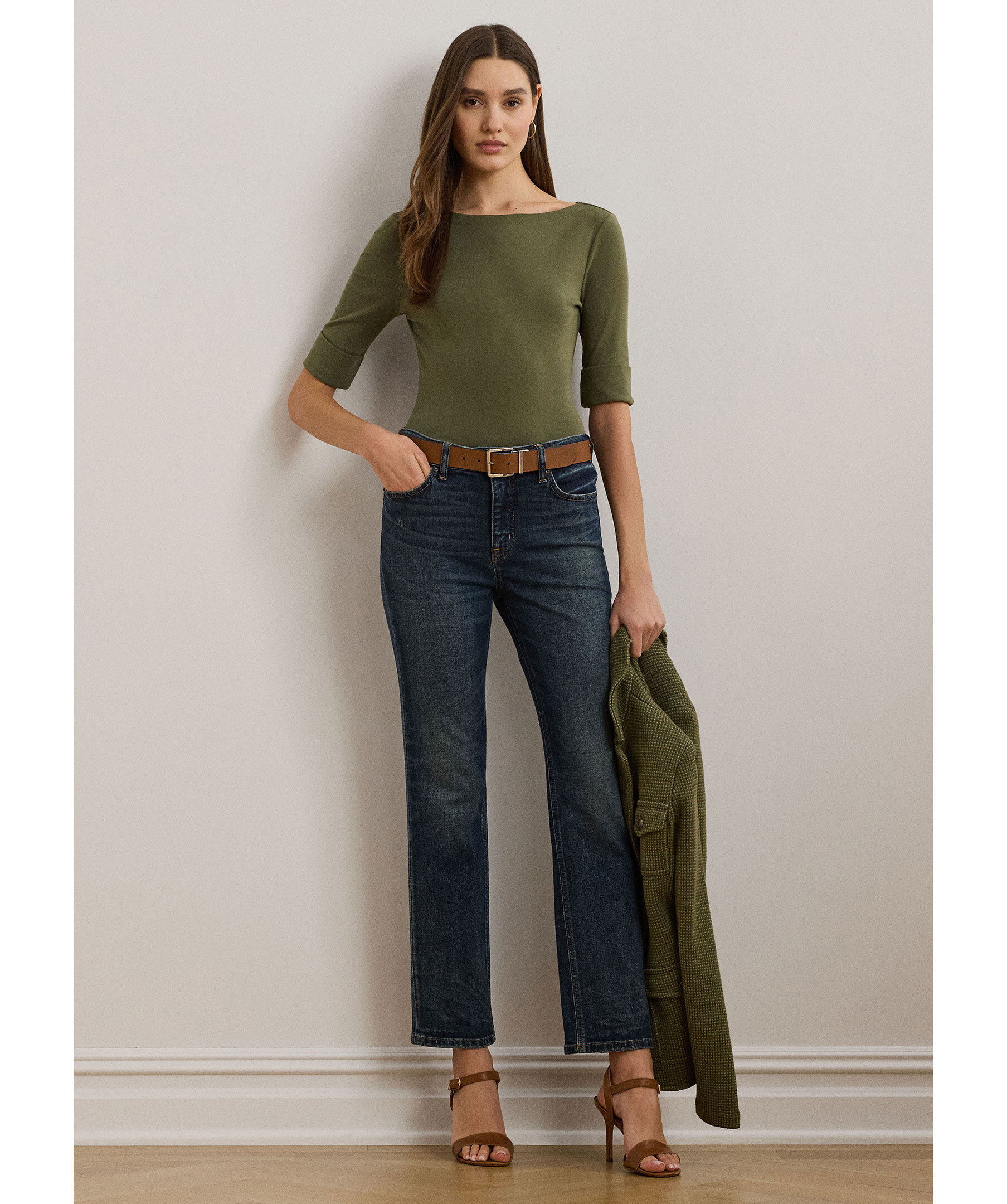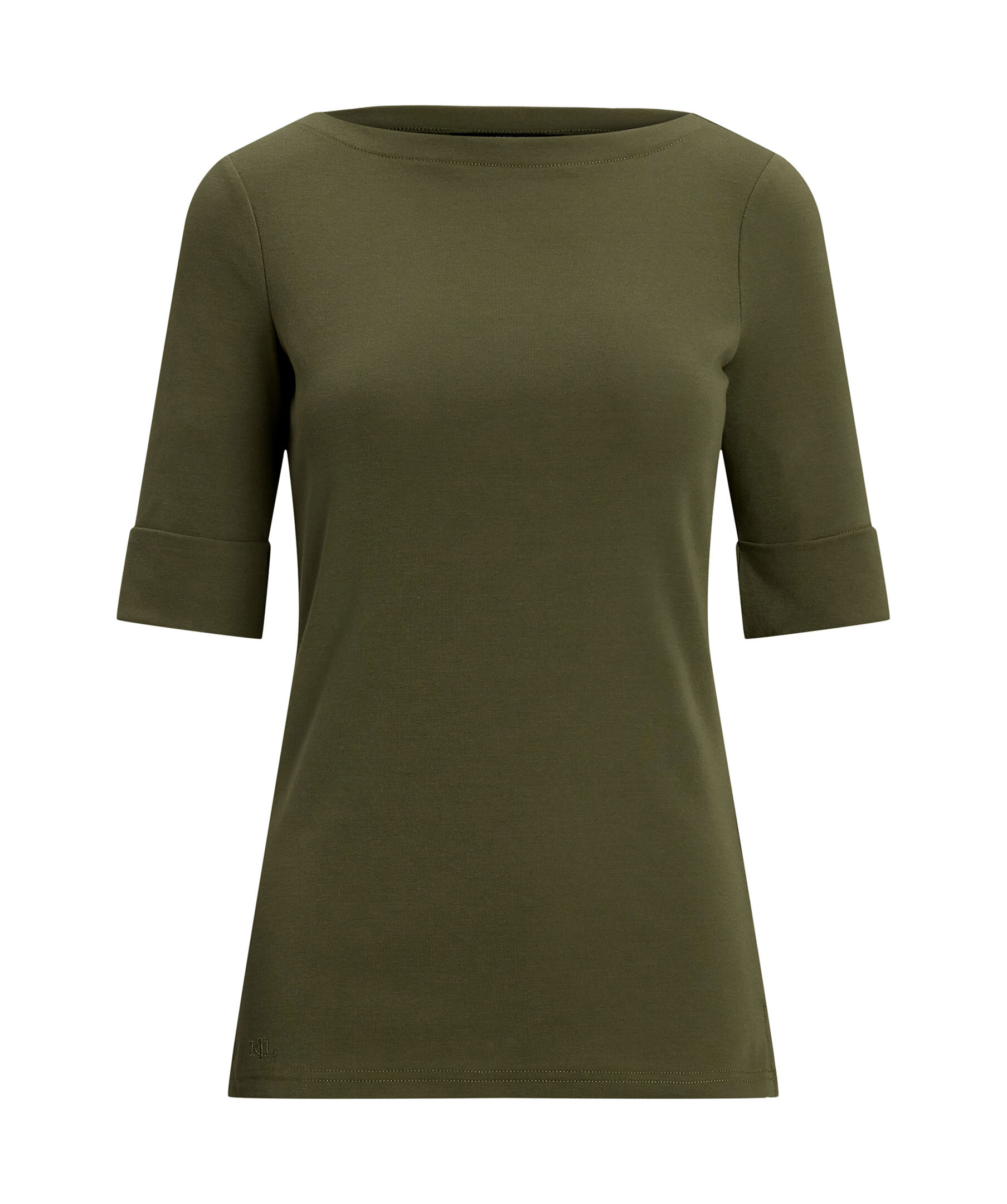 Mörkgrön topp i tidlös design tillverkad i bomull med stretch för extra komfort. Halvlånga ärmar med uppvikta kanter och en diskret "LRL" monogramdetalj på fållen som ger en sofistikerad touch.