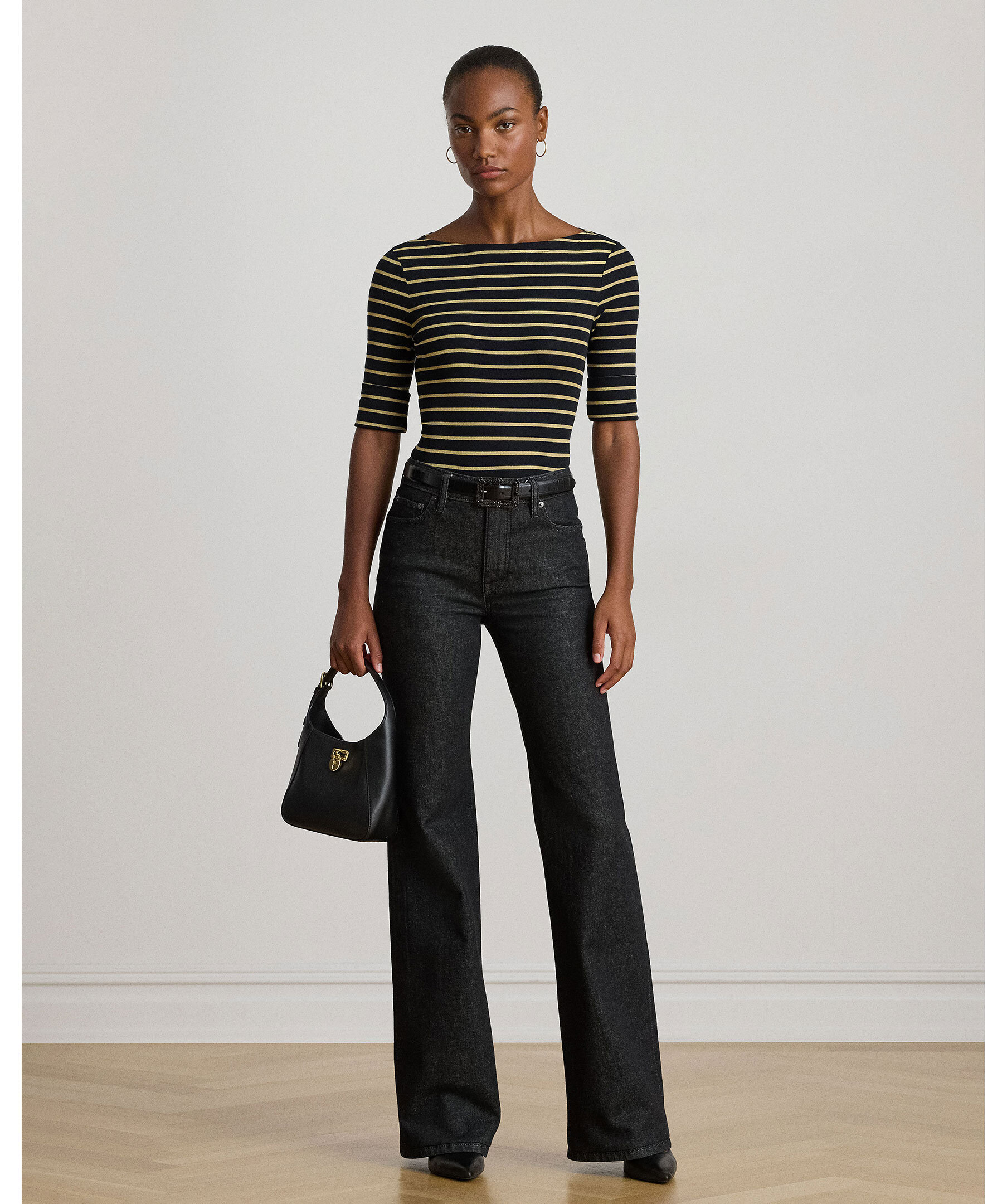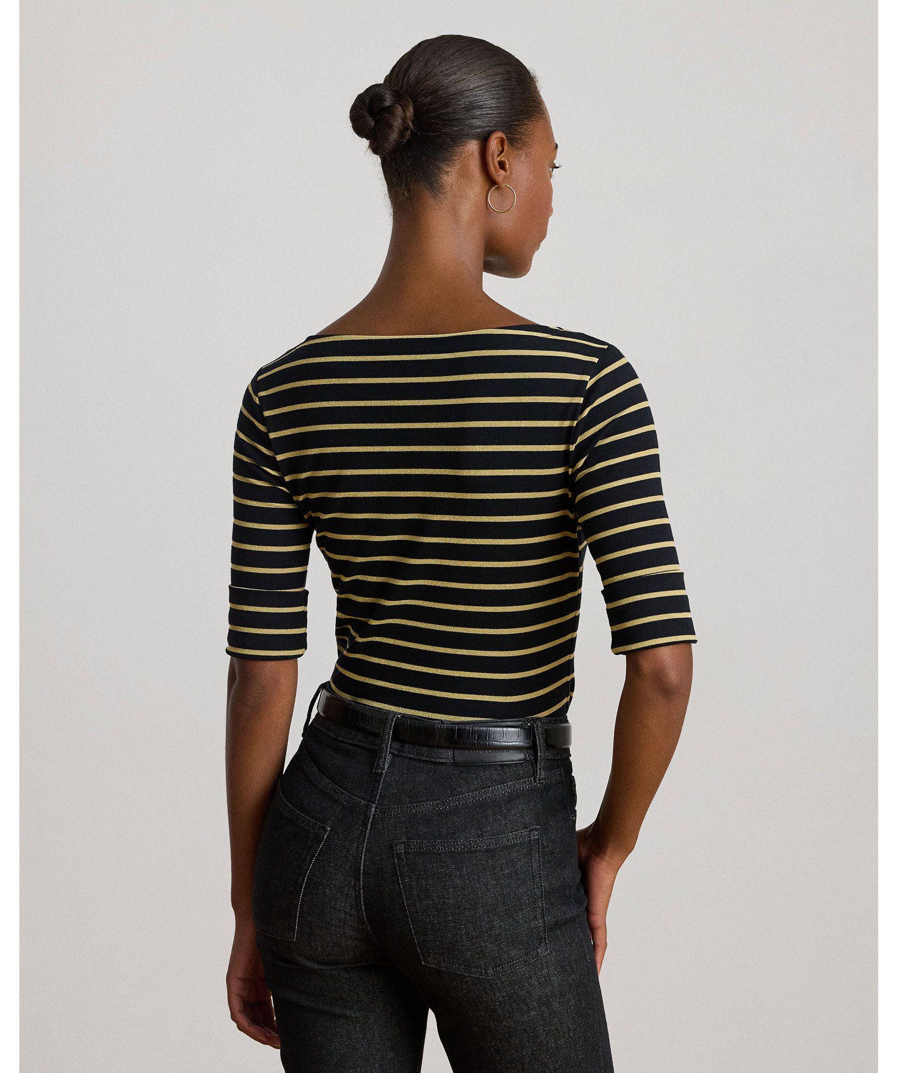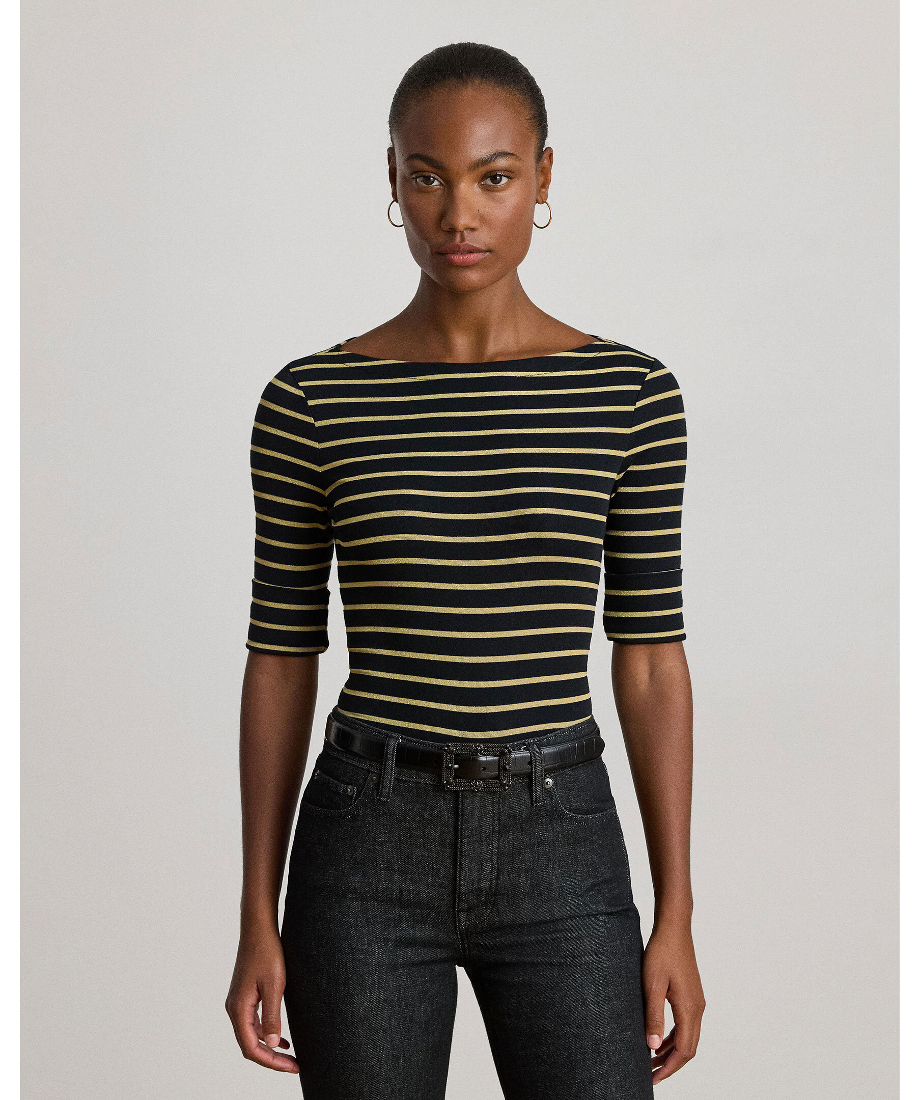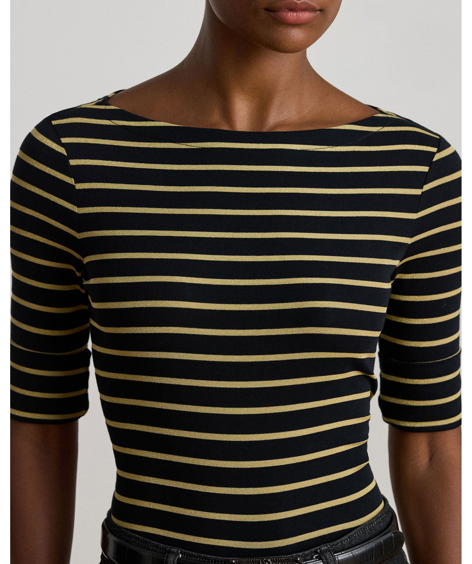 Trekvarsärmad t-shirt från Lauren Ralph Lauren. Slim fit, båtringning, armbågslånga ärmar med uppvikta muddar, sidslitsar samt LRL-broderi på fållen. Ett stilfullt basplagg med modern twist.