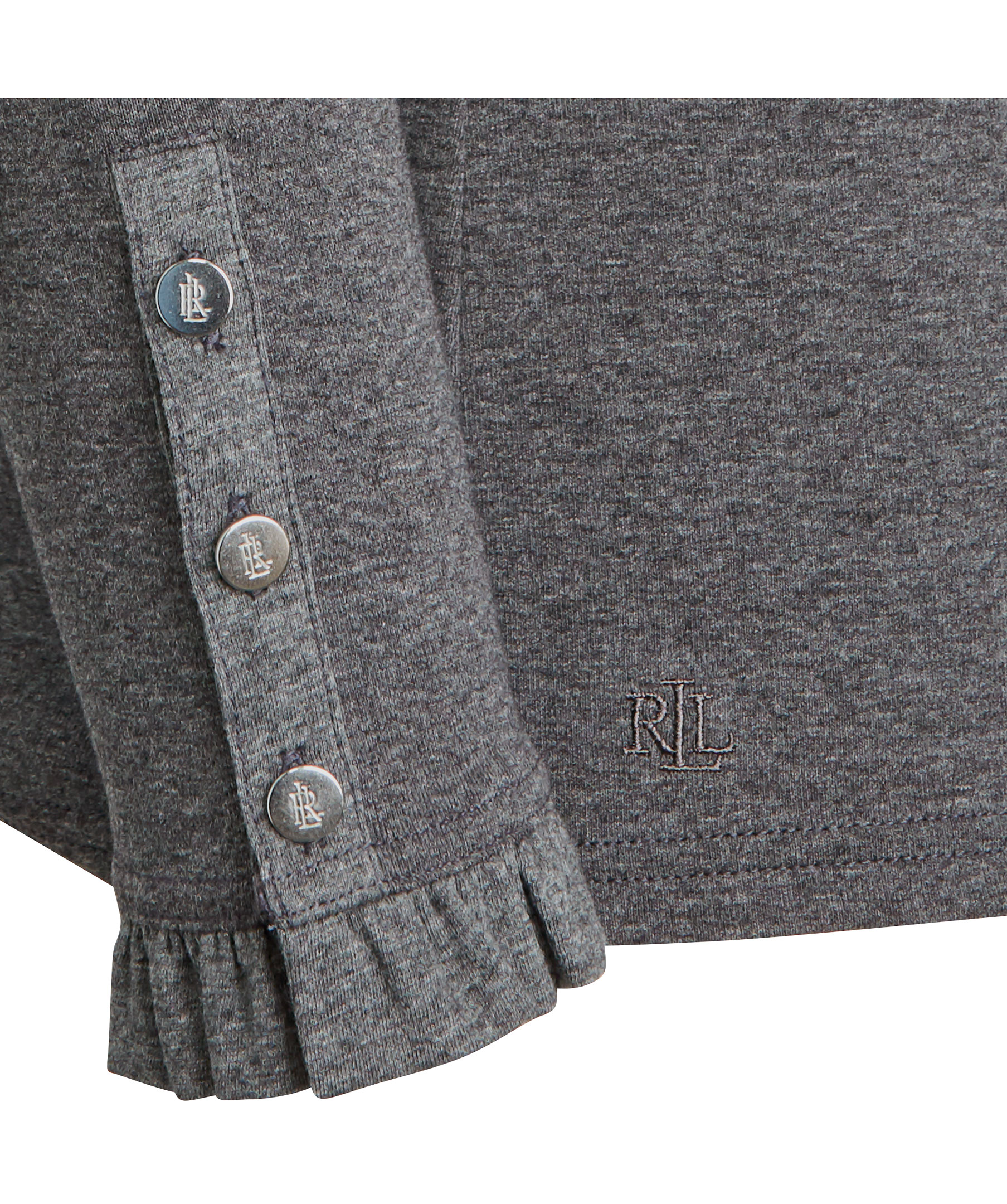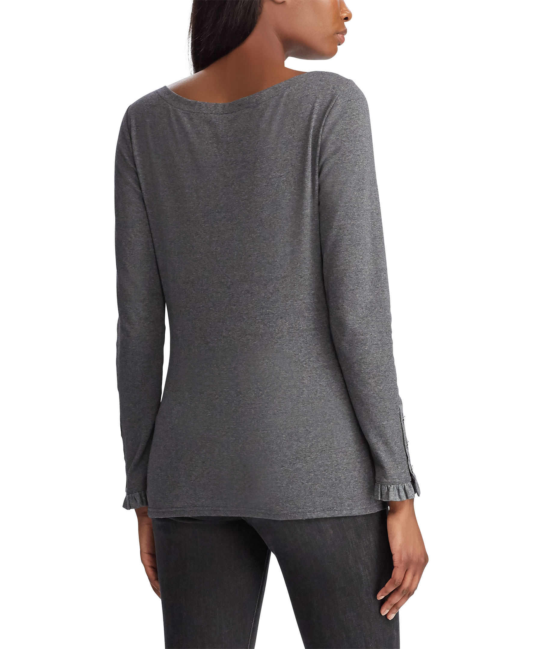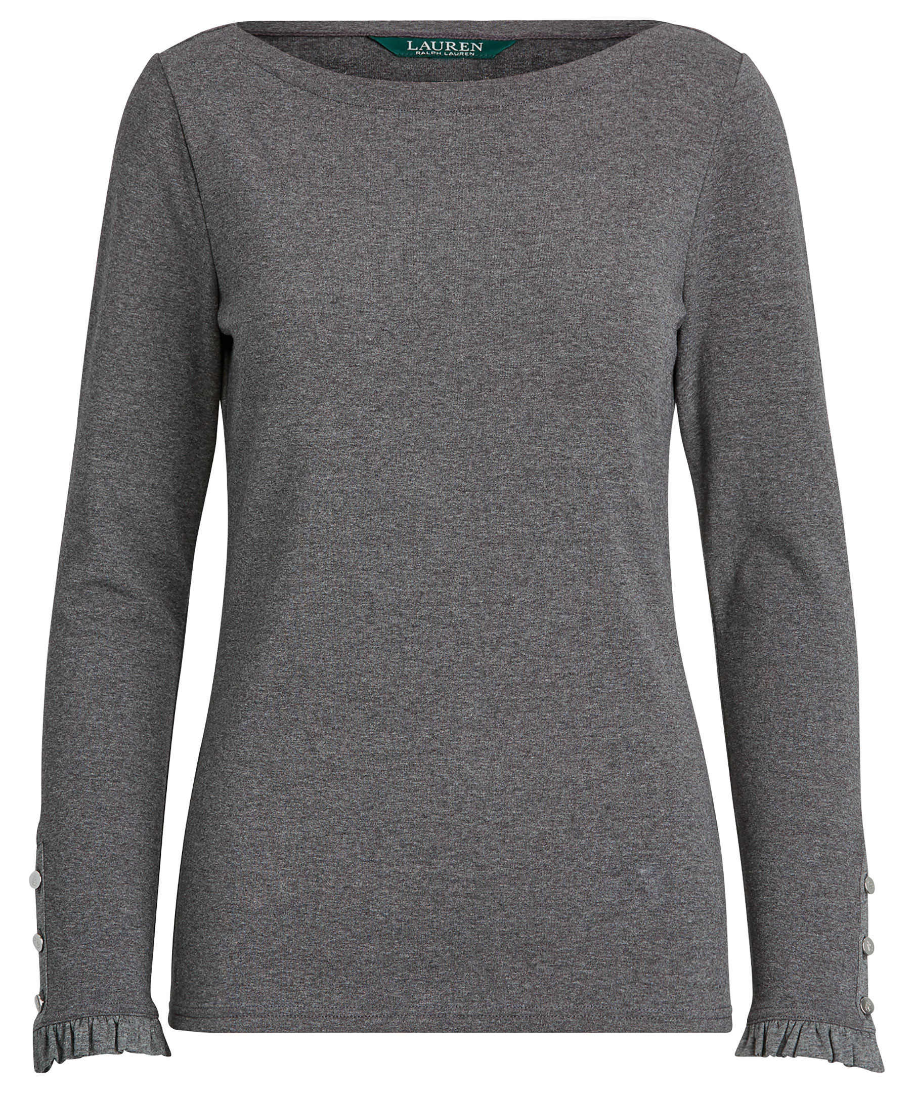 Grå långärmad tröja från Lauren Ralph Lauren. Applikation och volang i ärmslut, båthals.