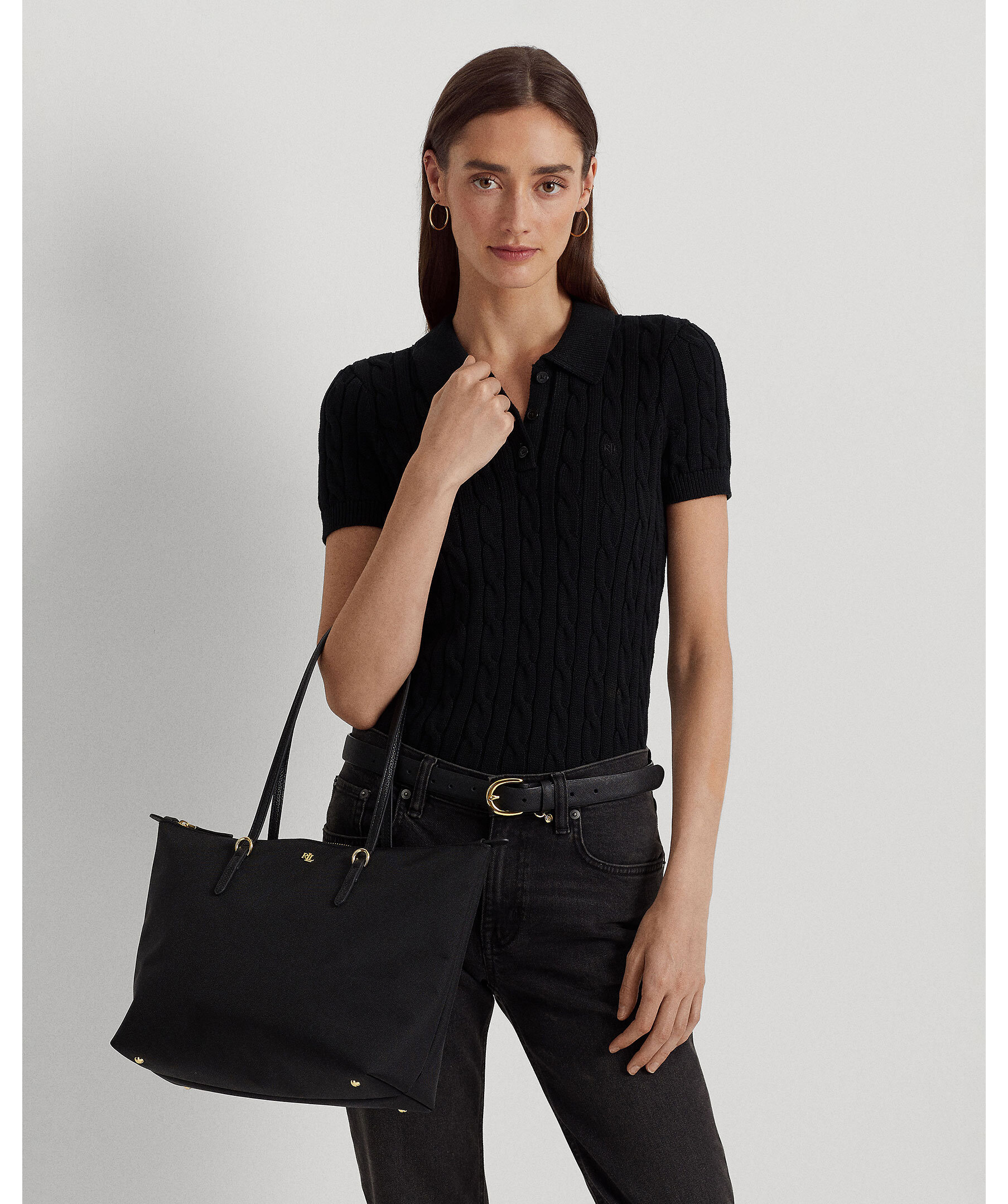 Keaton medium tote kombinerar slitstark nylon med lyxiga remmar i veganskt läder. Den rymliga designen rymmer dagens alla måsten, och en metallisk "LRL"-logotyp framtill ger en stilren signaturdetalj. Utrustad med topphandtag, dragkedja och innerficka.