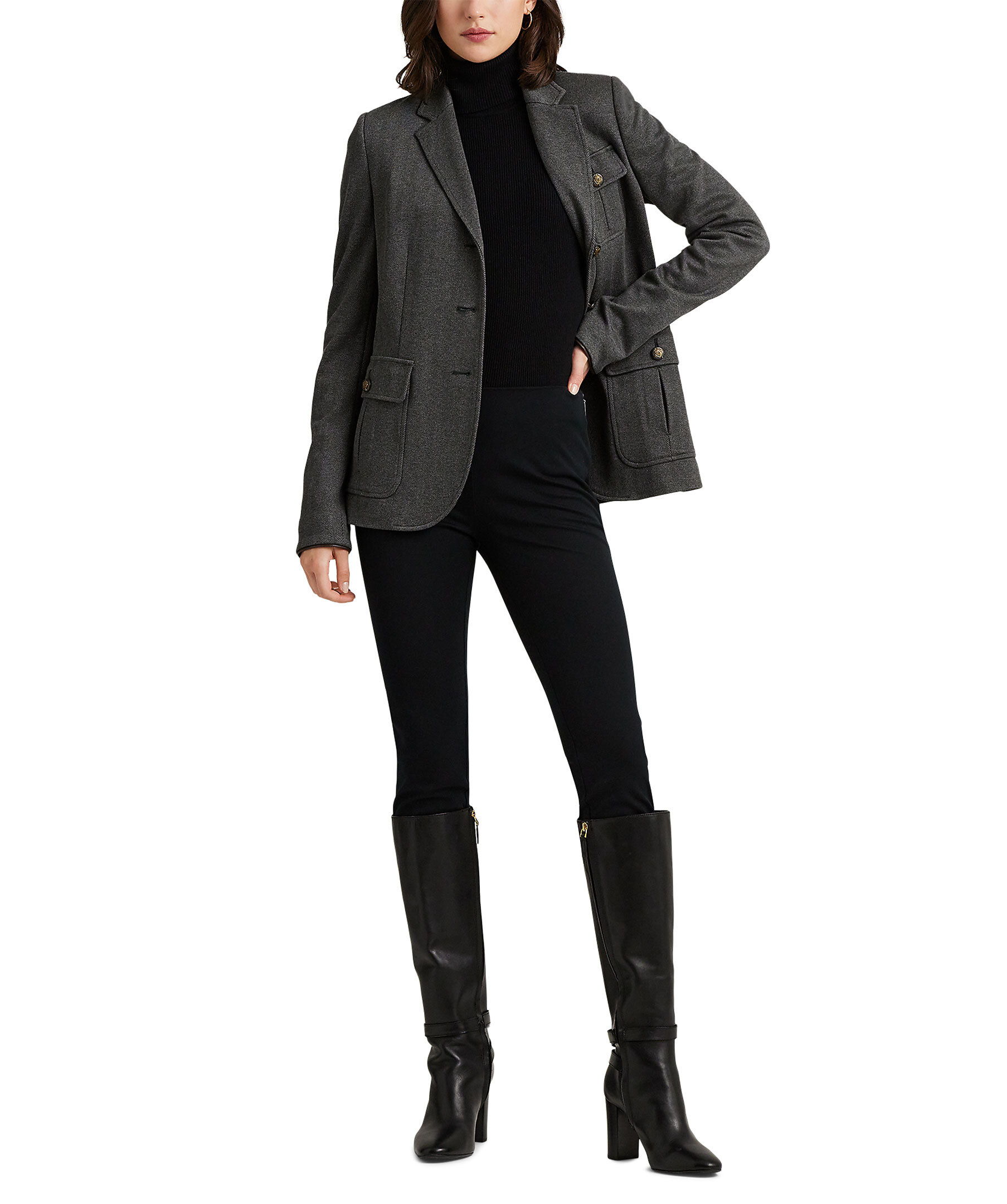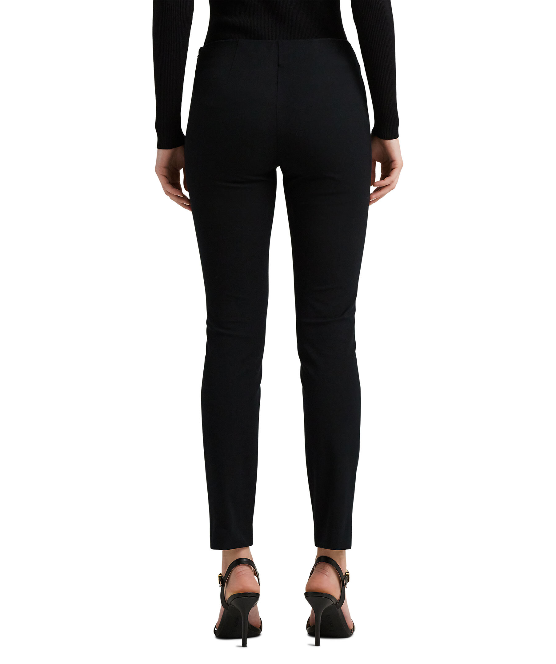 Svarta figurnära byxor från Lauren Ralph Lauren. Invändig resår i midjan, dold dragkedja i sidan. Tillverkade i bomullsblandning. Croppade benslut, byxan slutar strax ovanför anklarna.