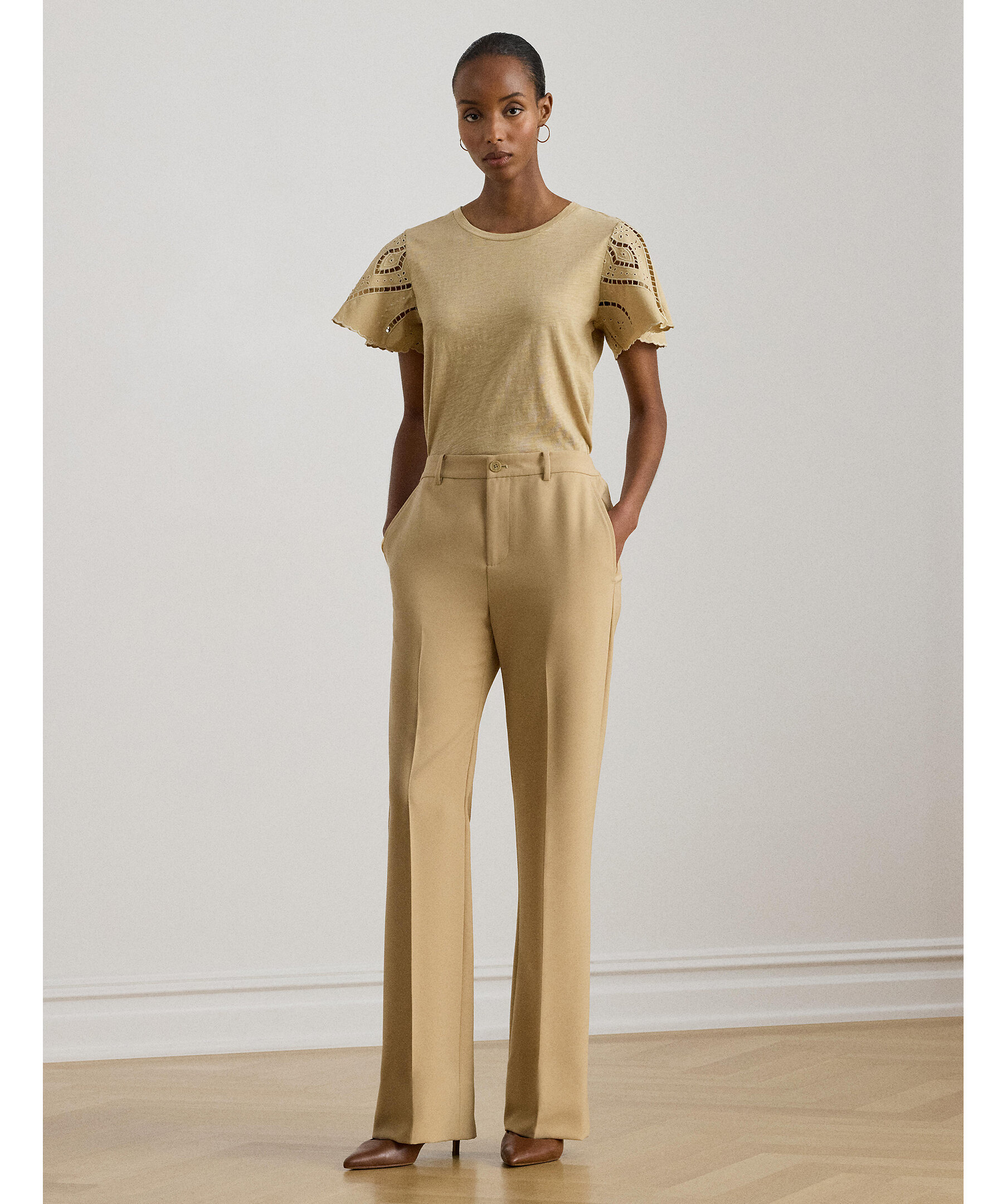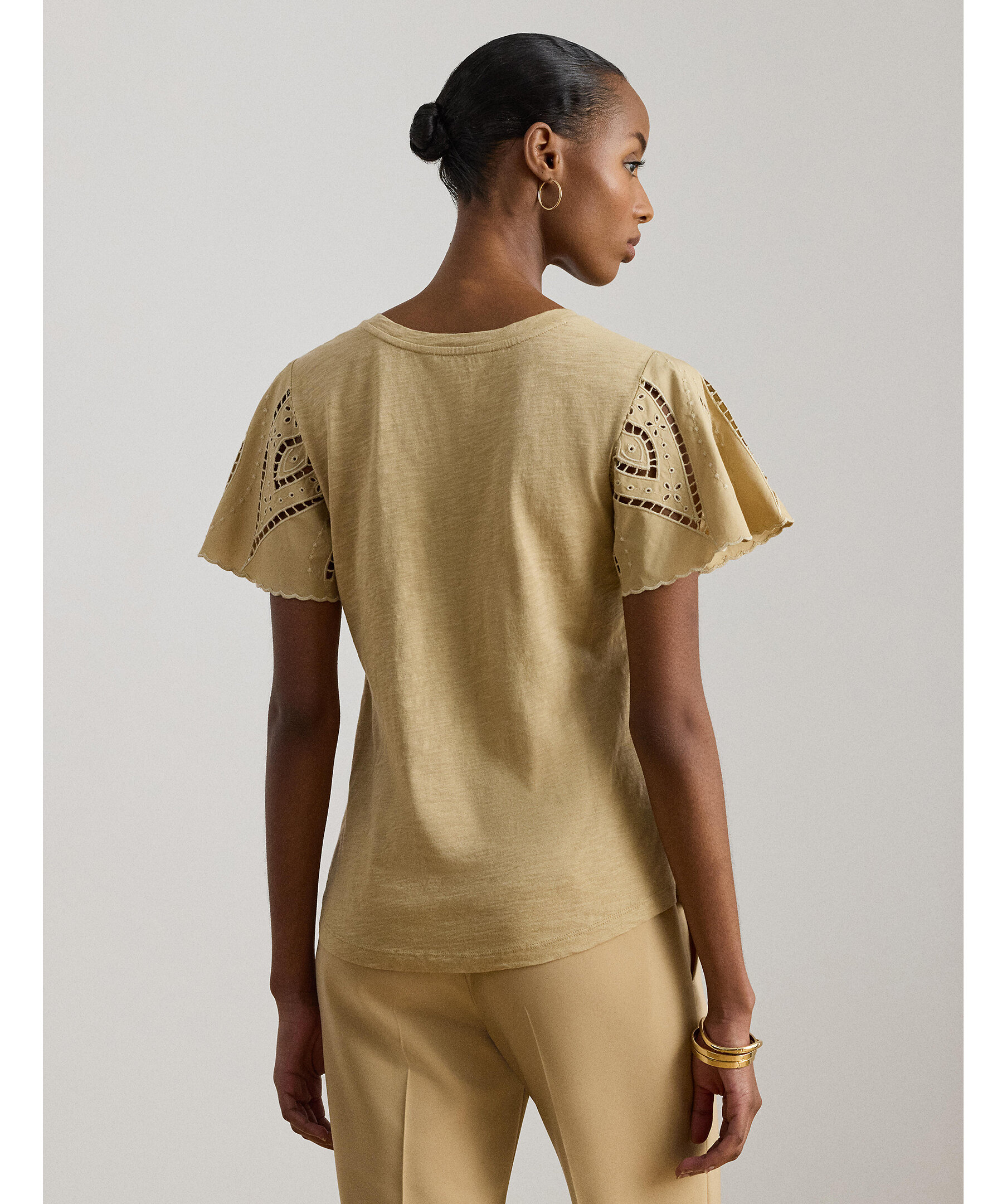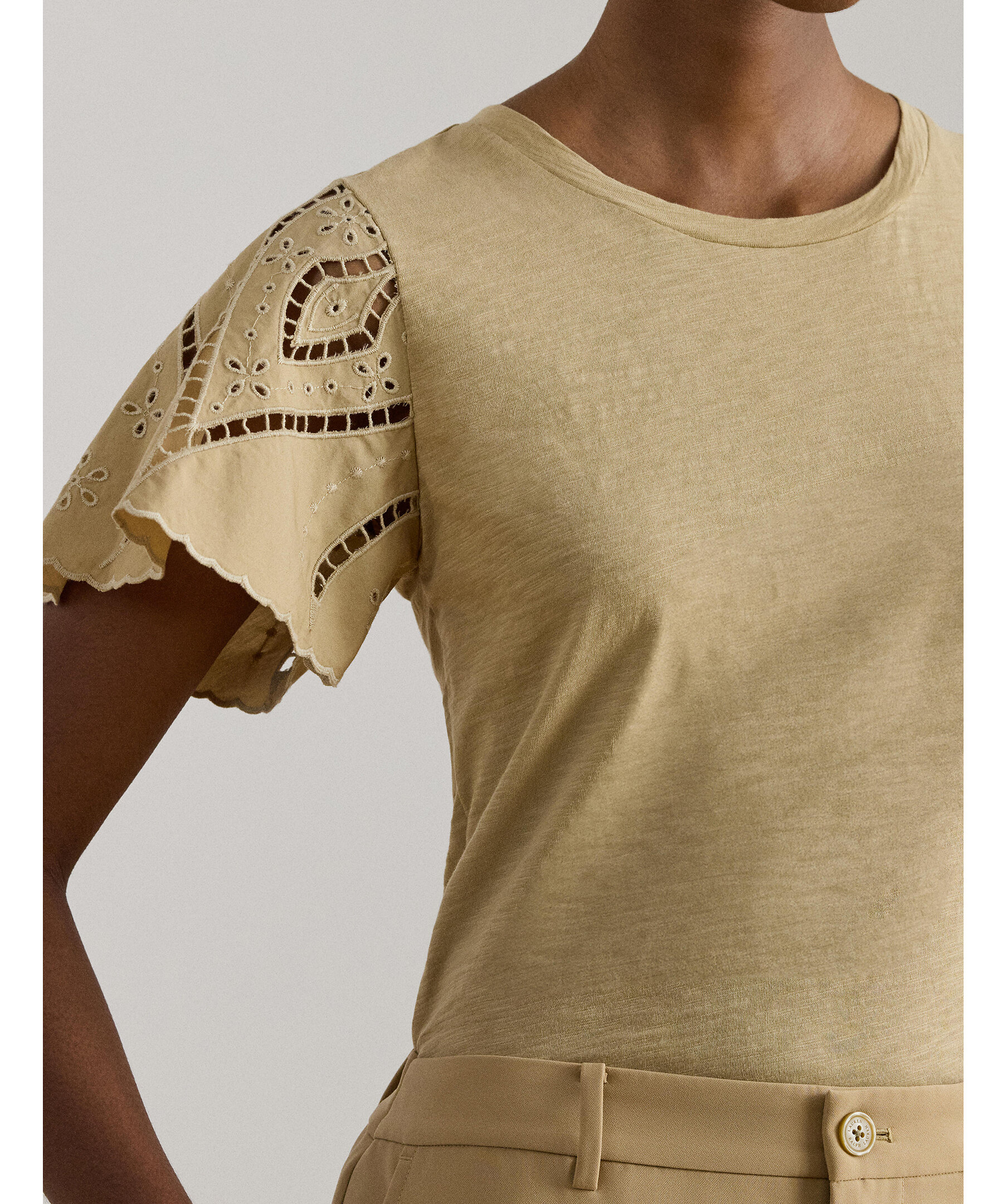 Kortärmad top från Lauren Ralph Lauren med brodyr på ärmarna.