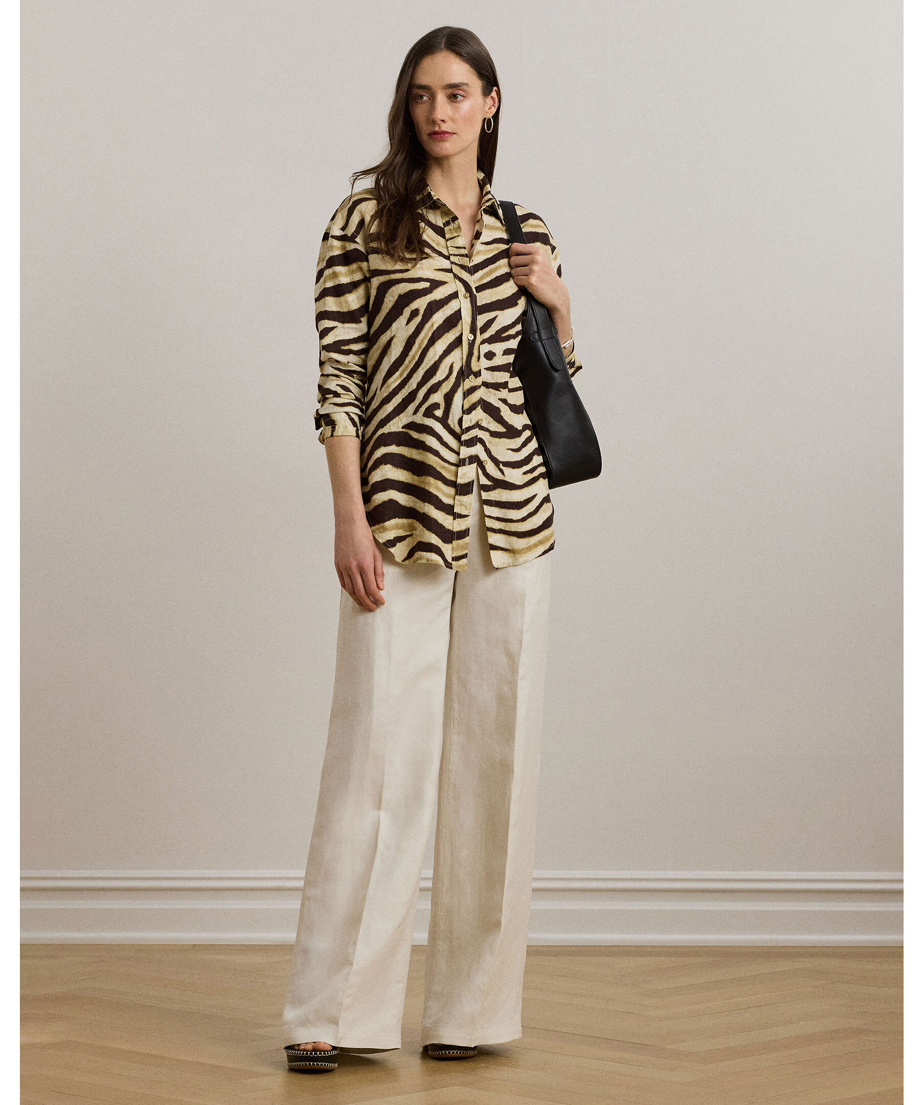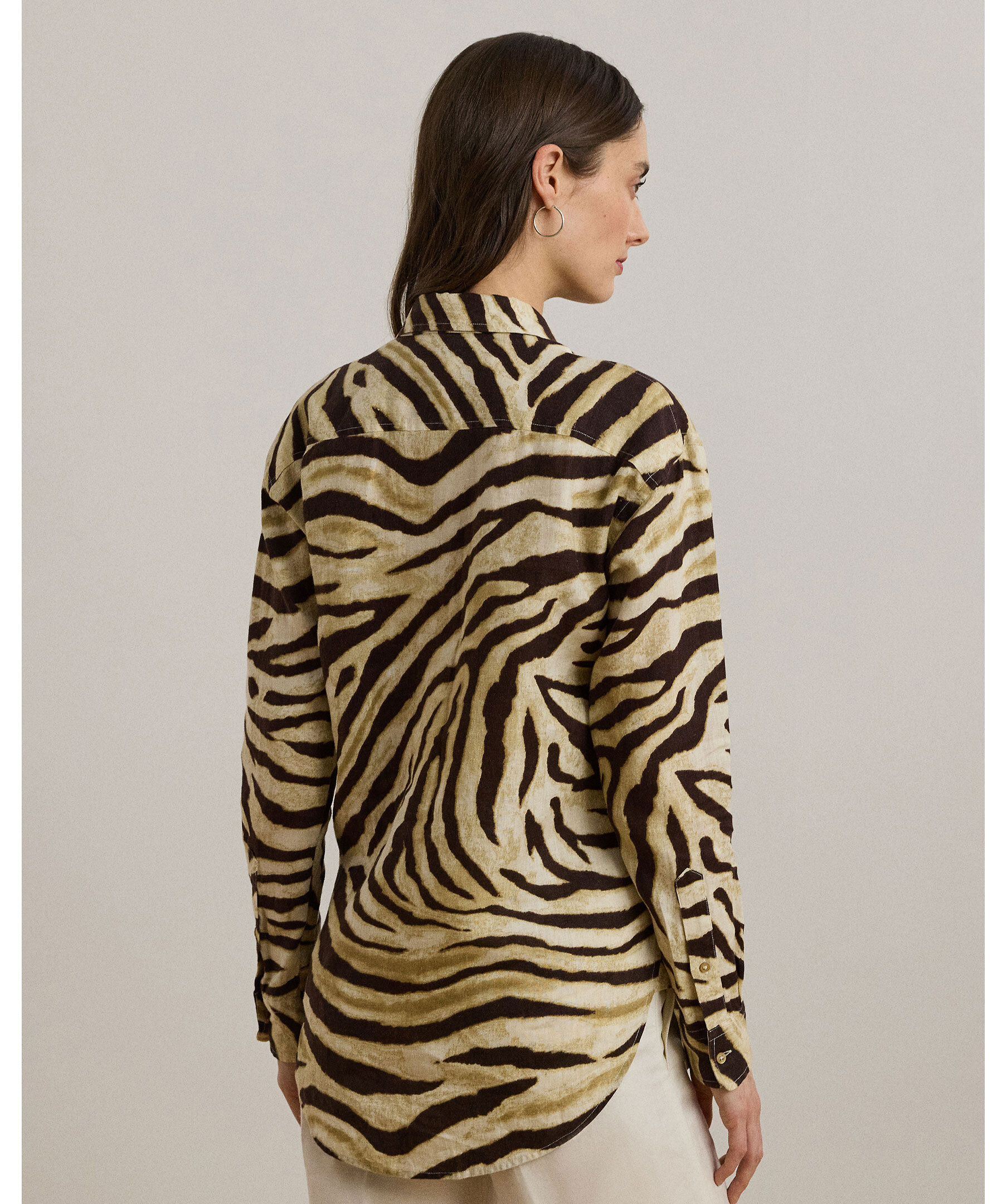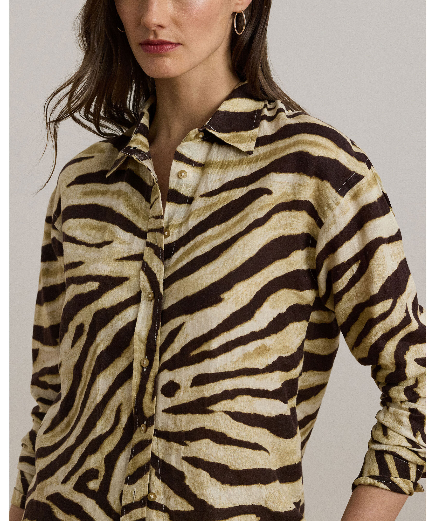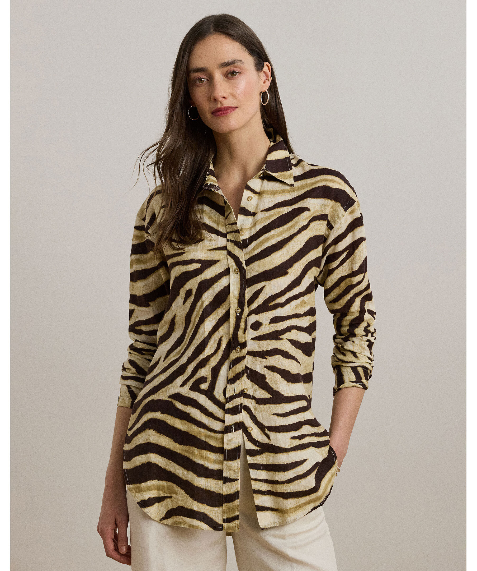 En luftig linneskjorta från Lauren Ralph Lauren. Skjortan har en avslappnad passform och är zebramönstrad. Designad med point-krage, hel knäppning med logoknappar, långa ärmar med manschetter och rundad fåll. Ett uttrycksfullt plagg som kombinerar komfort med stil.