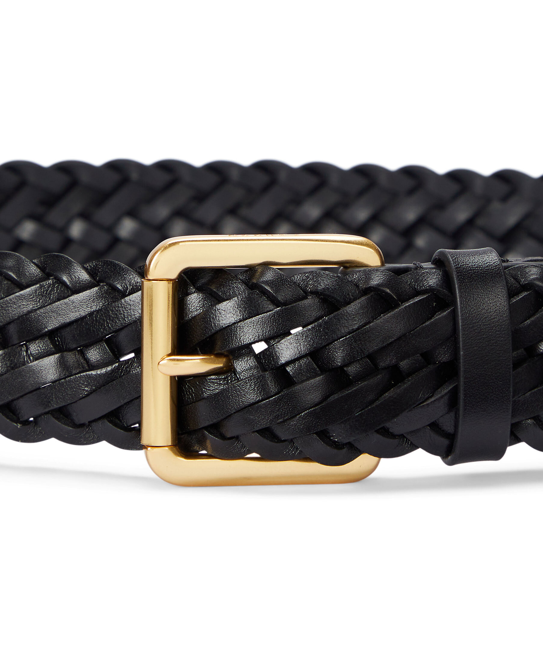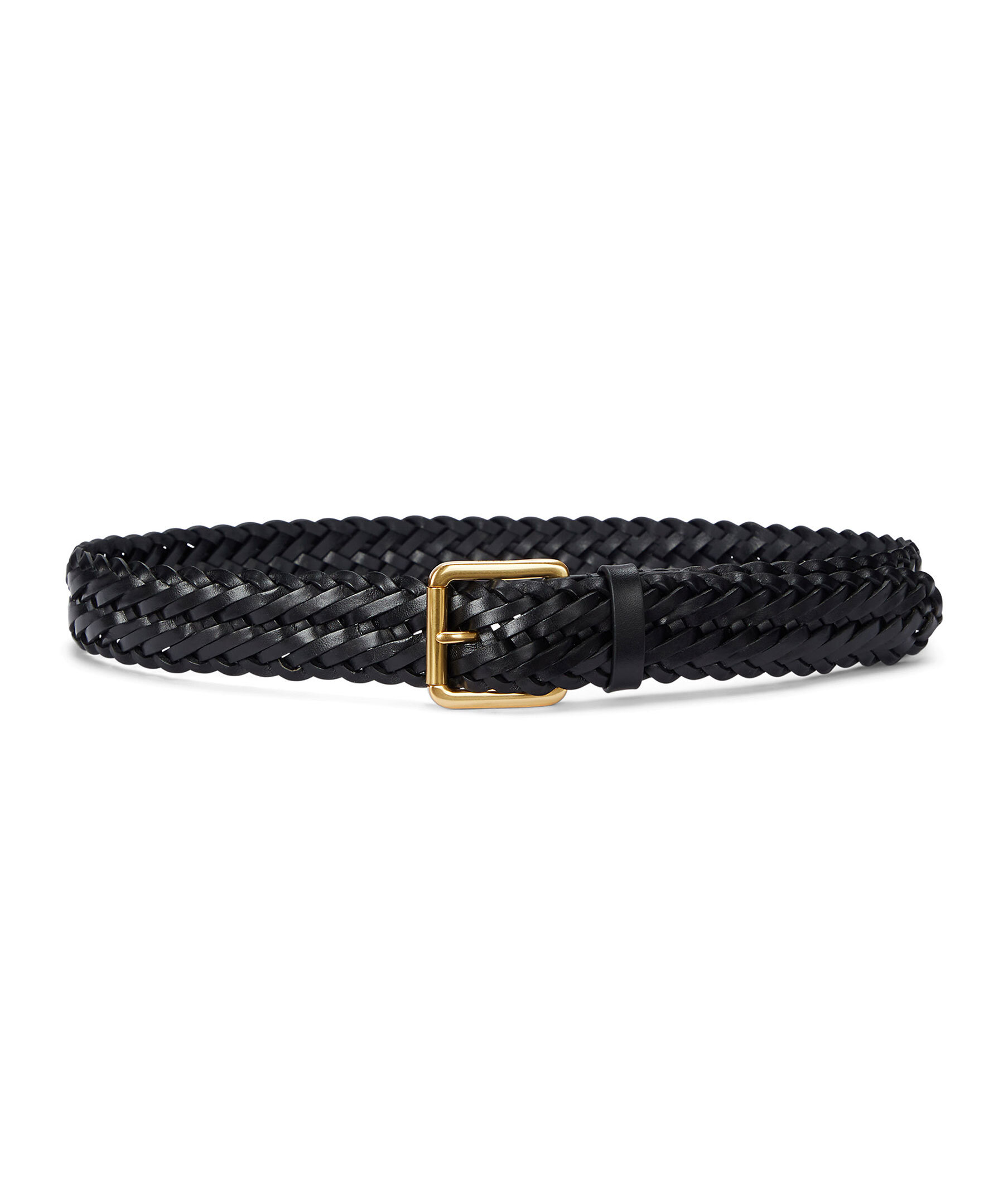 Svart flätat bälte från Lauren Ralph Lauren. Tillverkat av naturligt läder. Bredd: 4 cm.