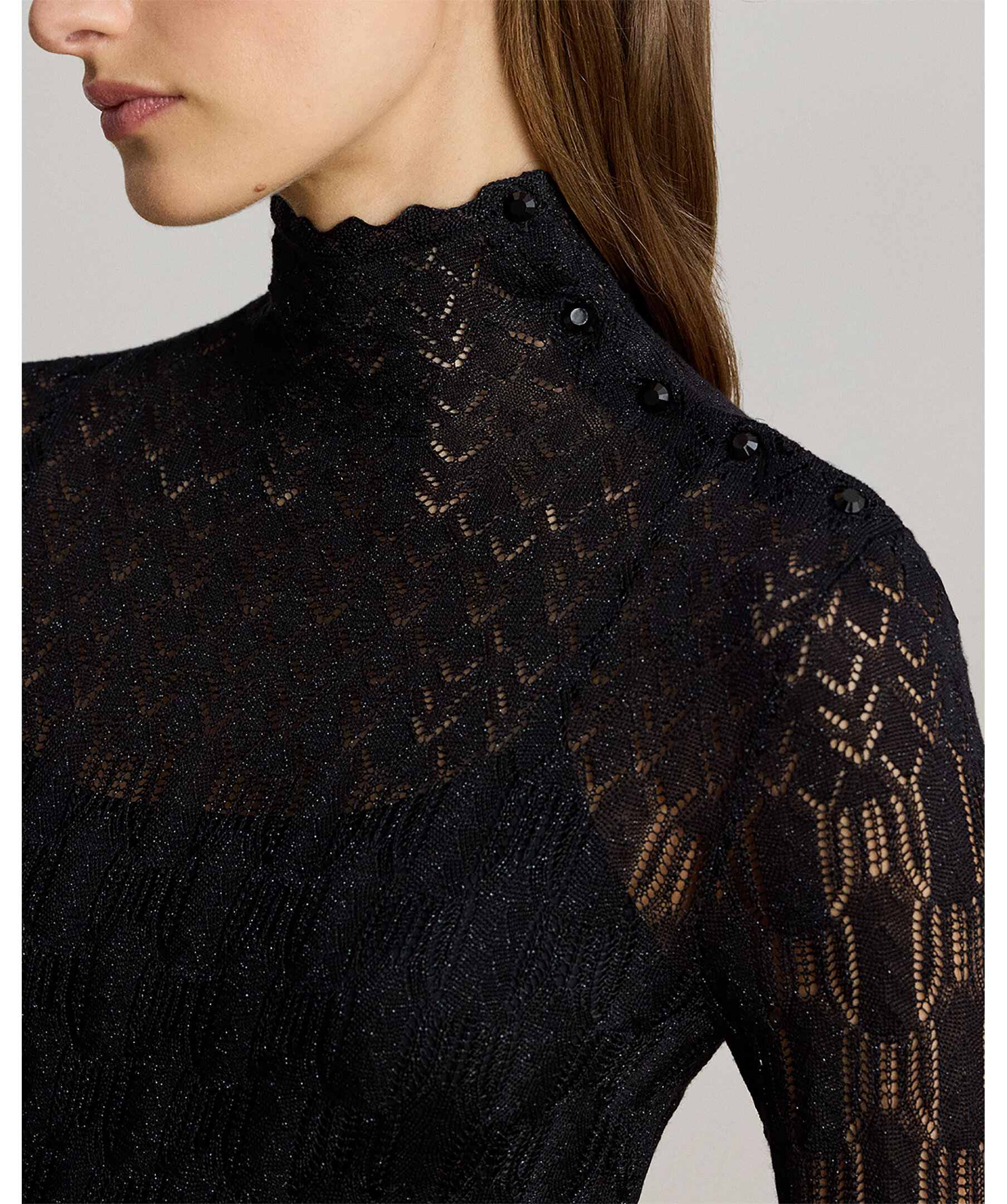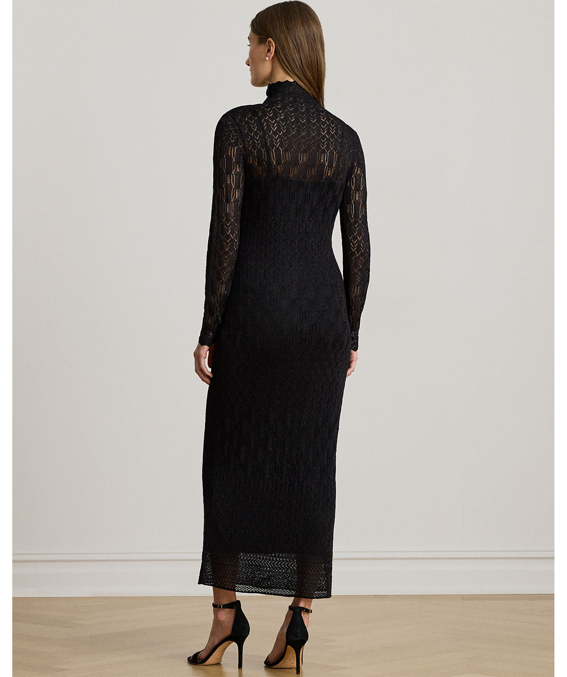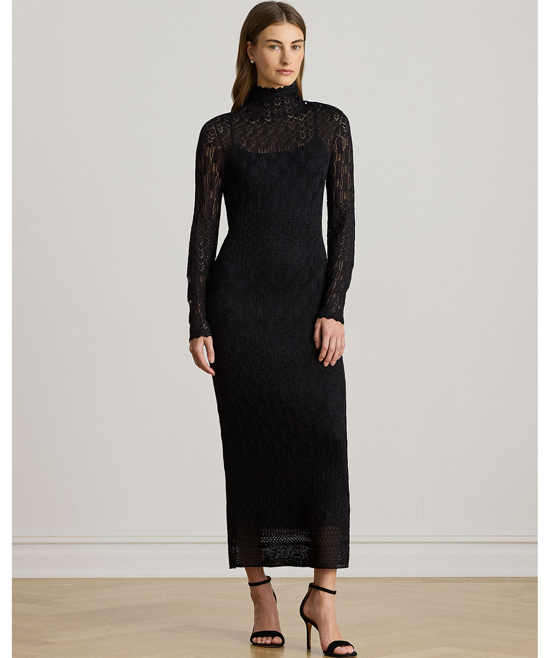 Grovstickad långklänning från Lauren Ralph Lauren med dekorativa knappar vid vänster axel.