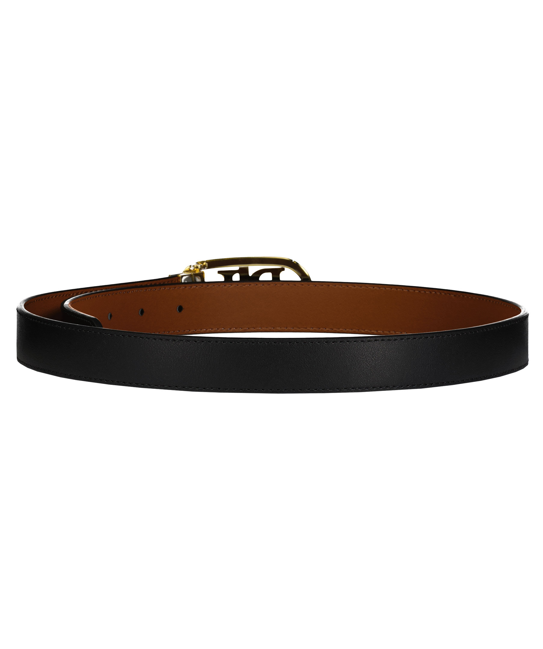 Vändbart läderbälte i brunt och svart från Lauren Ralph Lauren. Guldfärgat spänne med LRL logotyp. 2,5 cm brett.