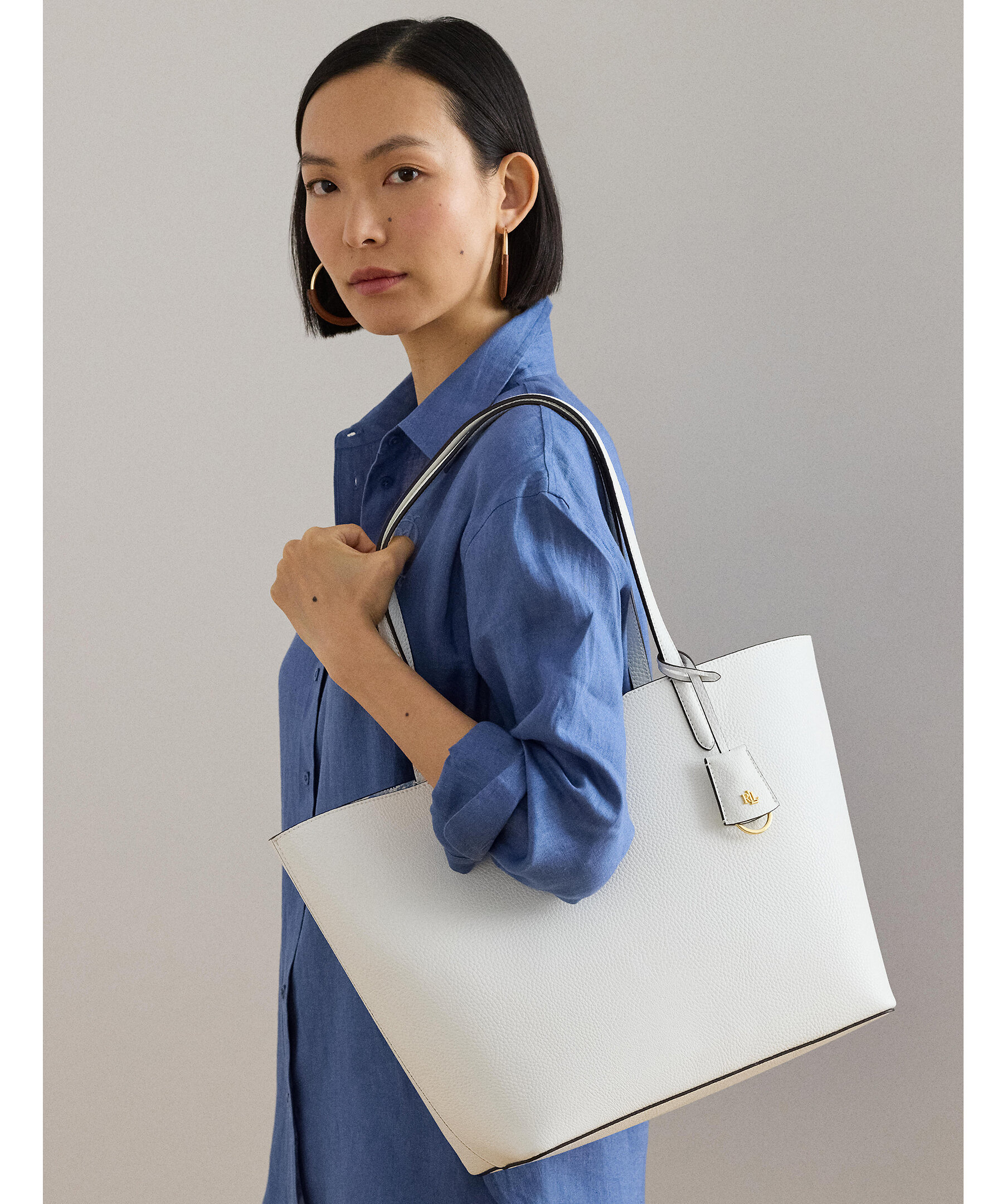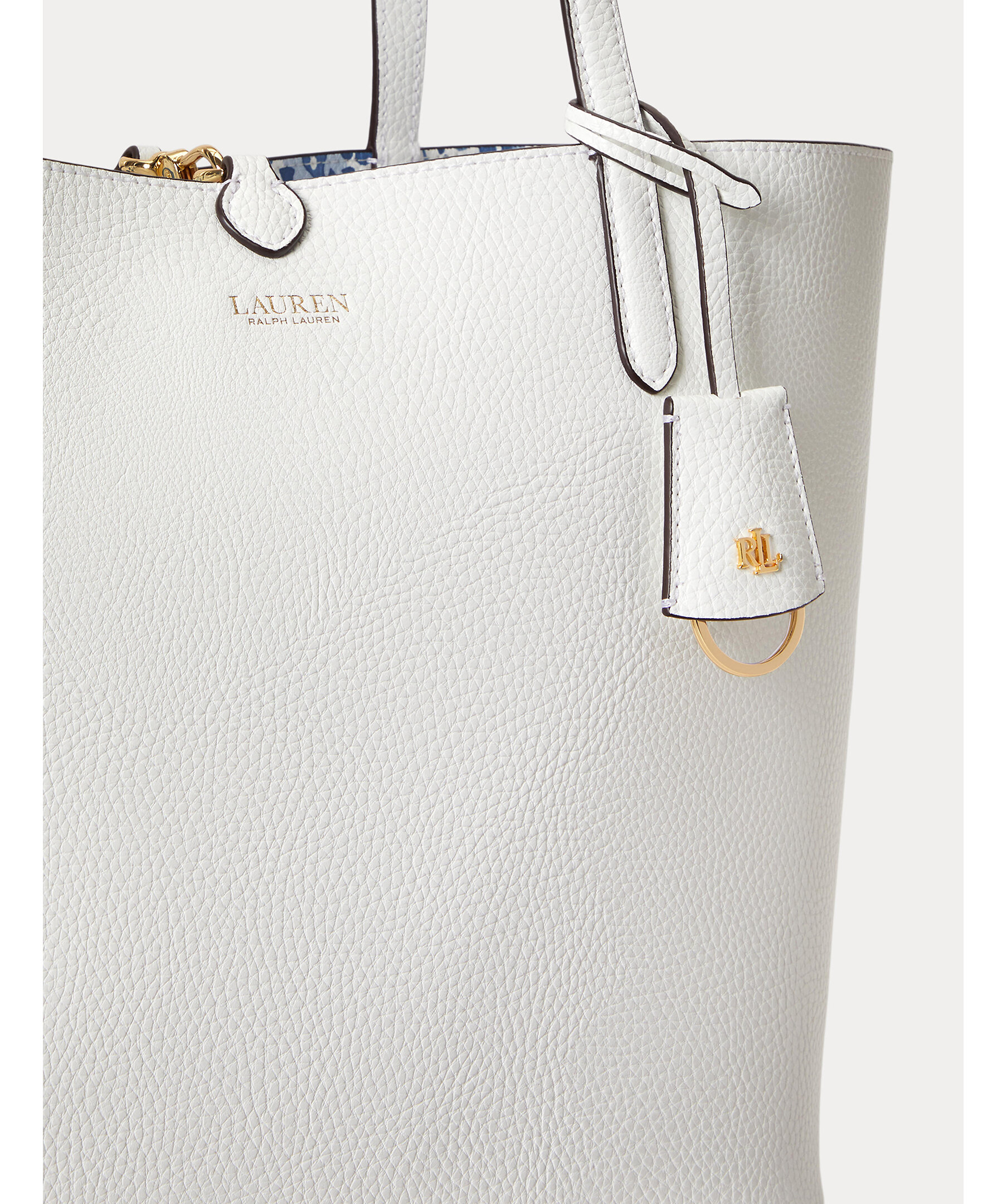 Väska från Lauren Ralph Lauren. En elegant och praktisk väska som kan vändas för att variera mellan en enfärgad sida och en mönstrad sida, vilket gör den mångsidig och användbar för olika tillfällen. Grain-textur som ger ett sofistikerat utseende. Dubbla handtag, en avtagbar innerväska med dragkedja för extra förvaring, och logotyp. Mått: 32/43 x 29 x 13 cm.