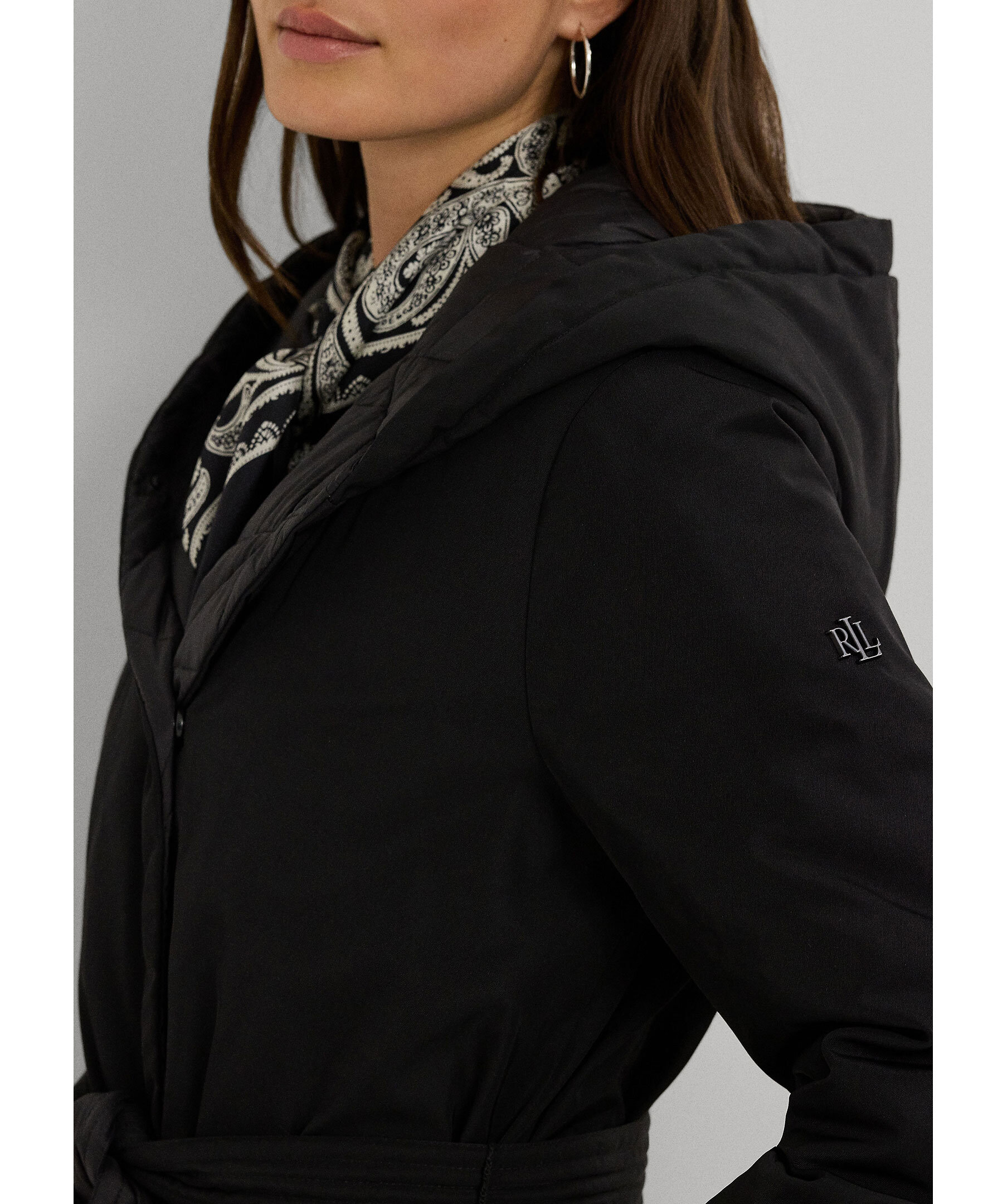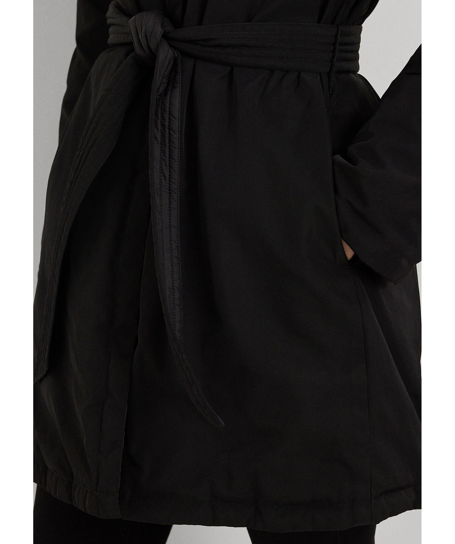Svart, kort kappa med huva från Lauren Ralph Lauren. Stängs med knappar och bälte, två sidfickor samt logotyp i metall på vänster ärm. Tillverkad i nylon.
