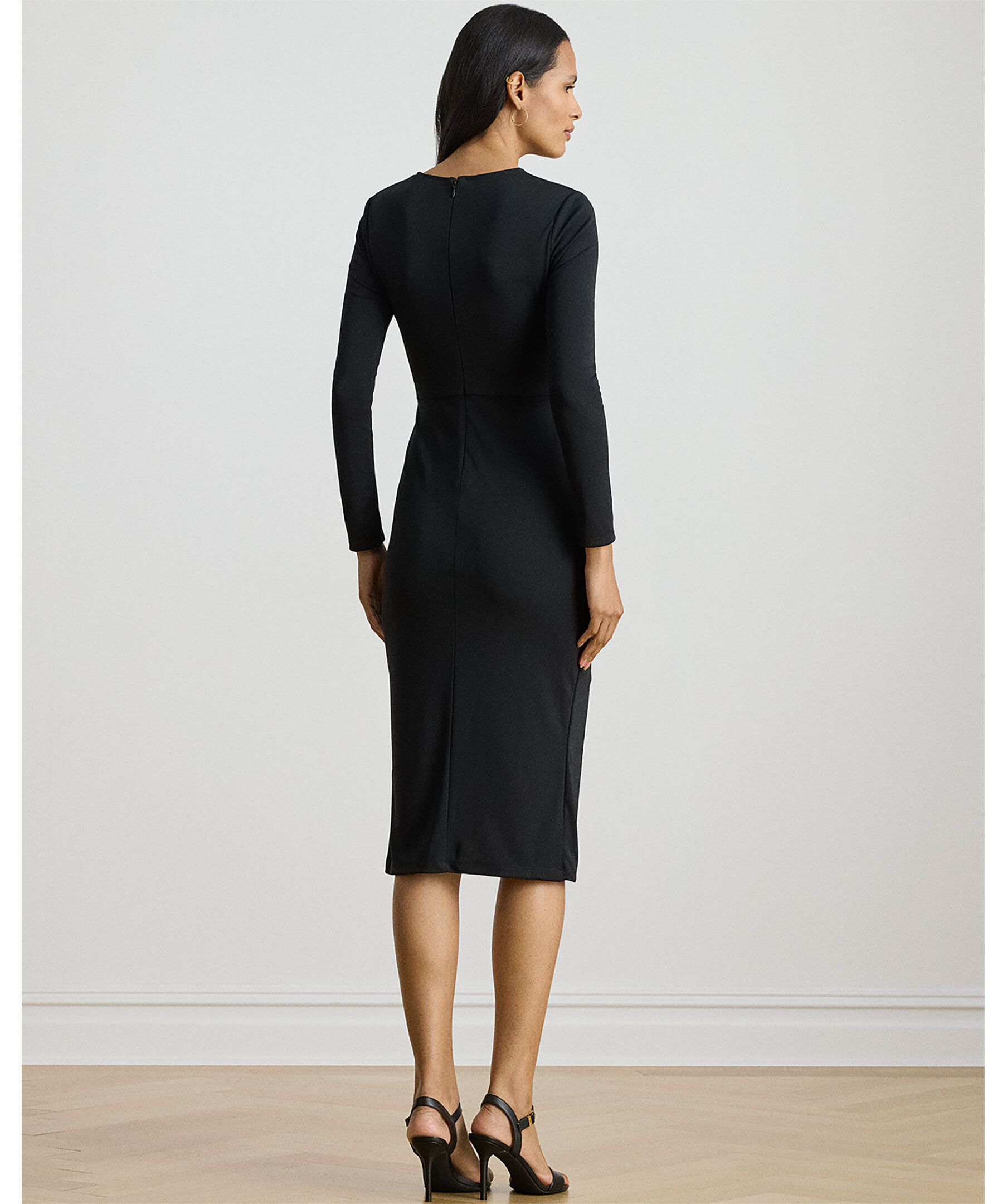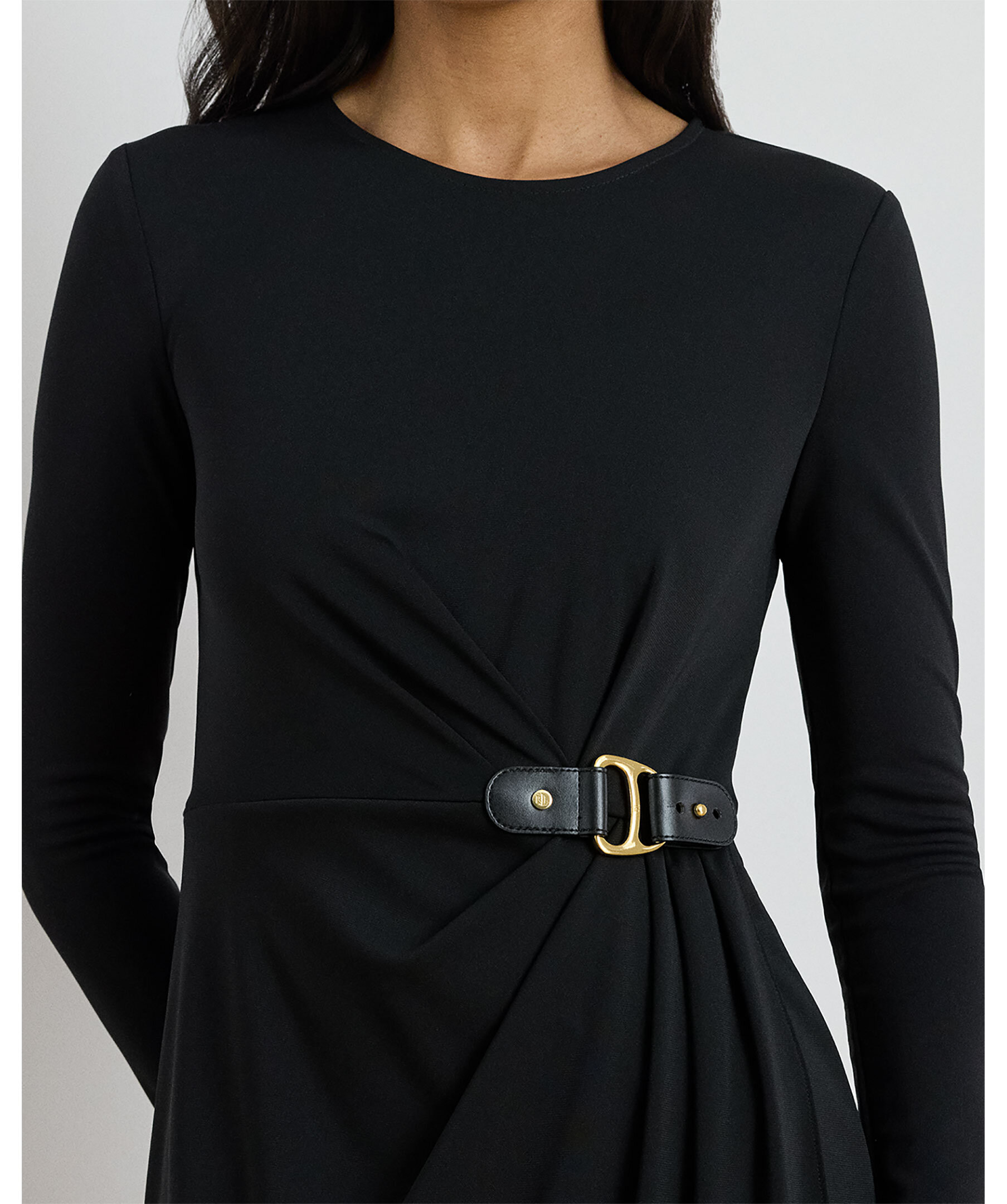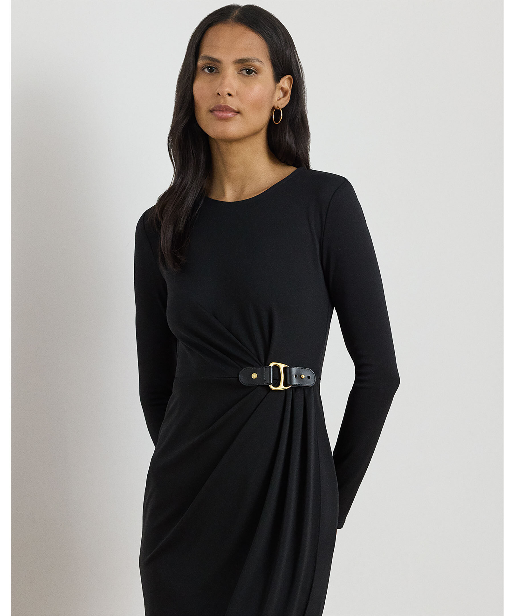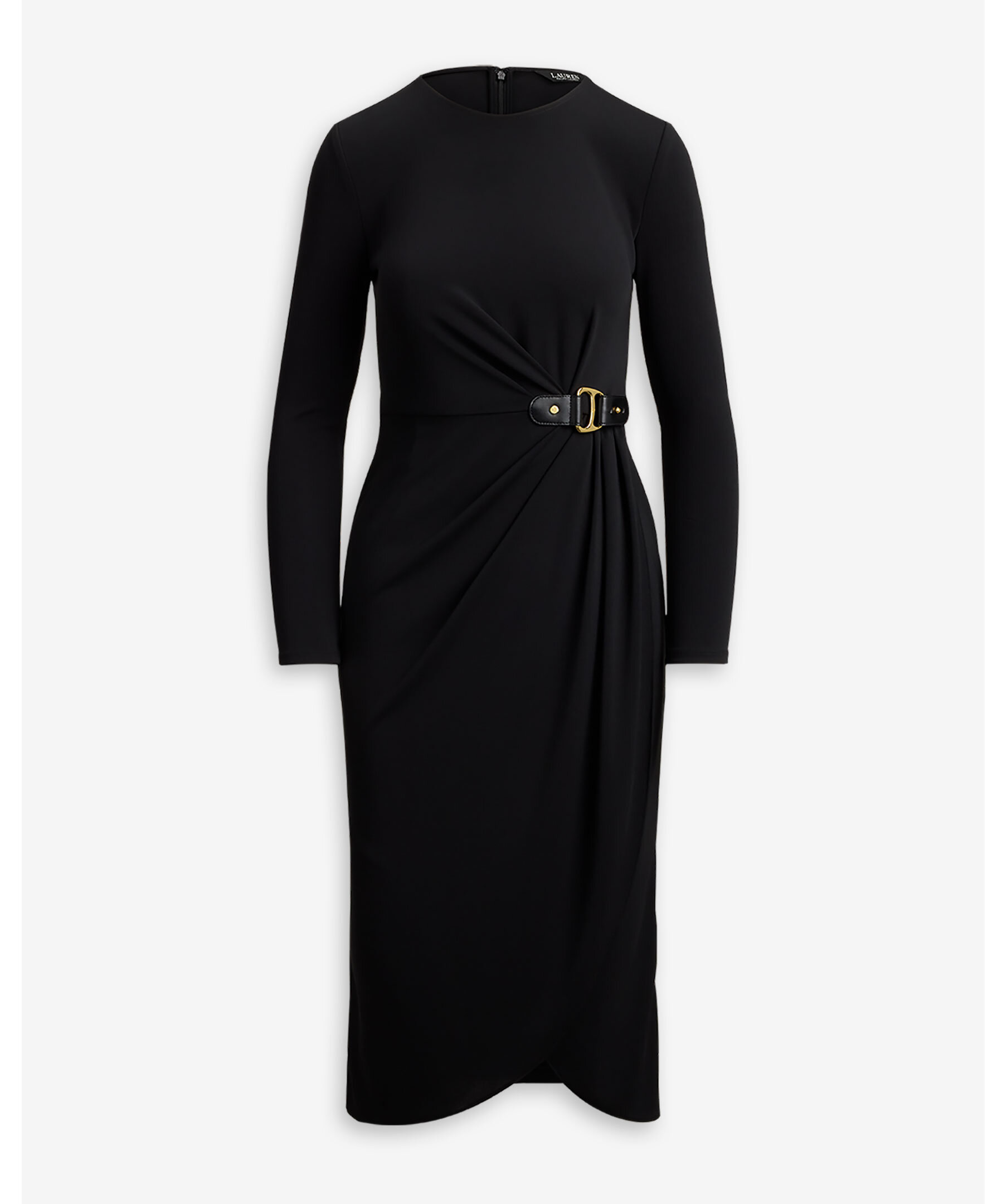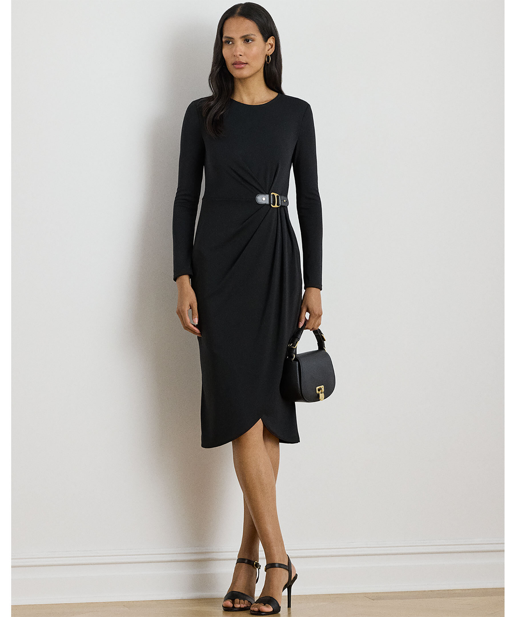 Långärmad omlottklänning från Lauren Ralph Lauren med dekorativt spänne på vänster sida.