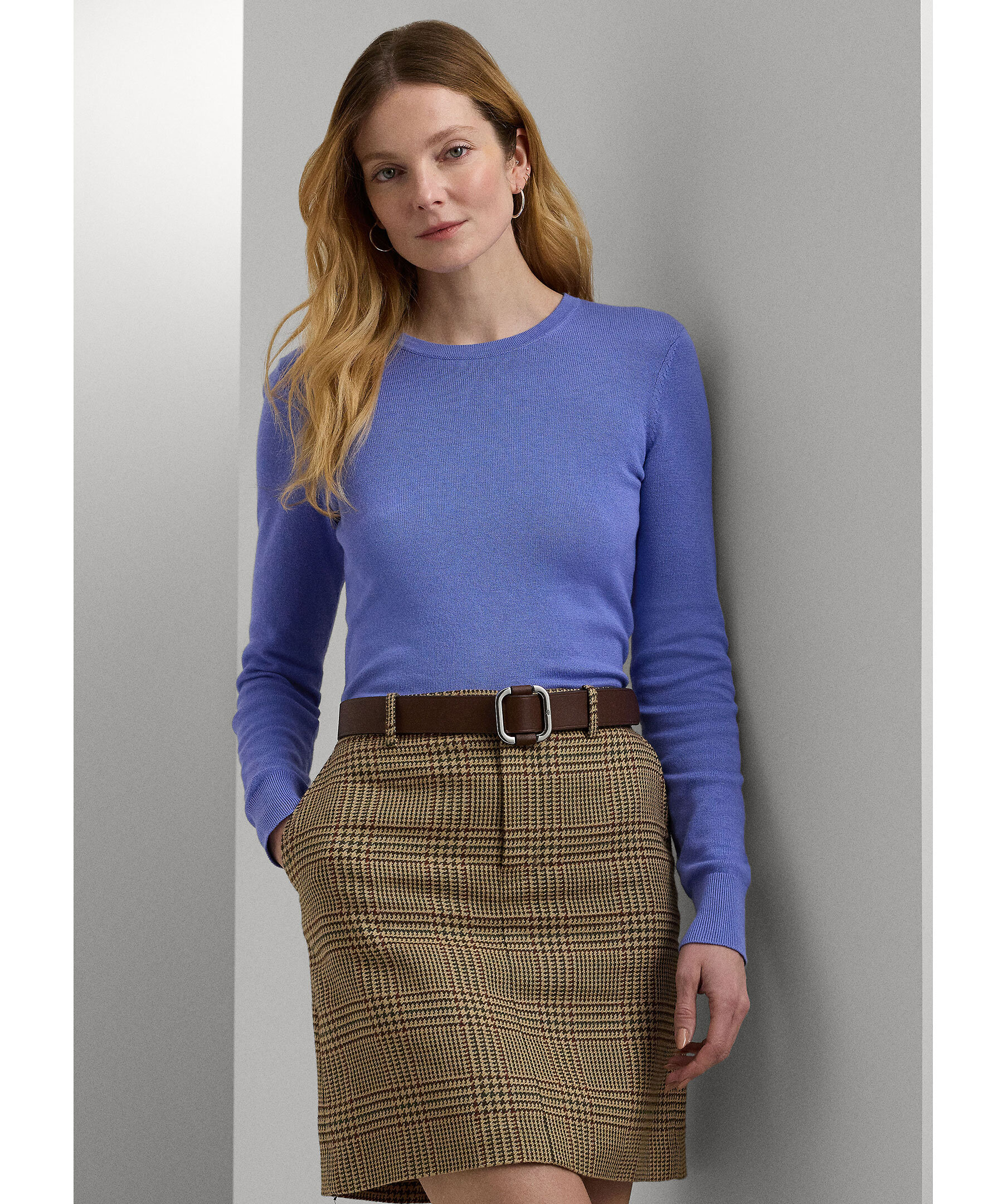 Blålila stickad pullover från Lauren Ralph Lauren. Tröjan har rund, ribbstickad halsringning samt ribbstickade muddar vid ärm- och plaggslut. Tillverkad i en mjuk bomullsblandning.