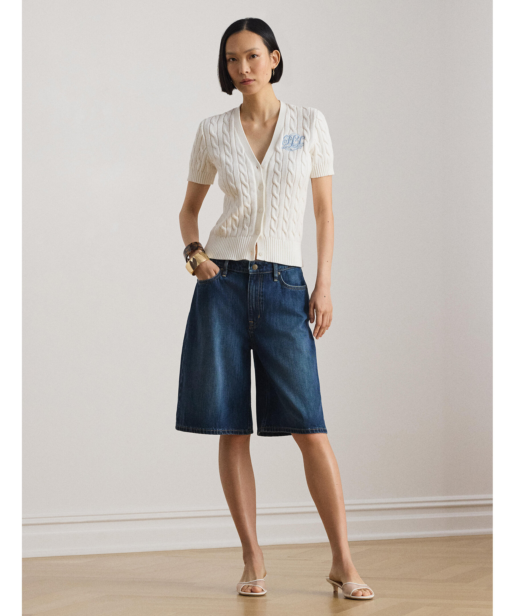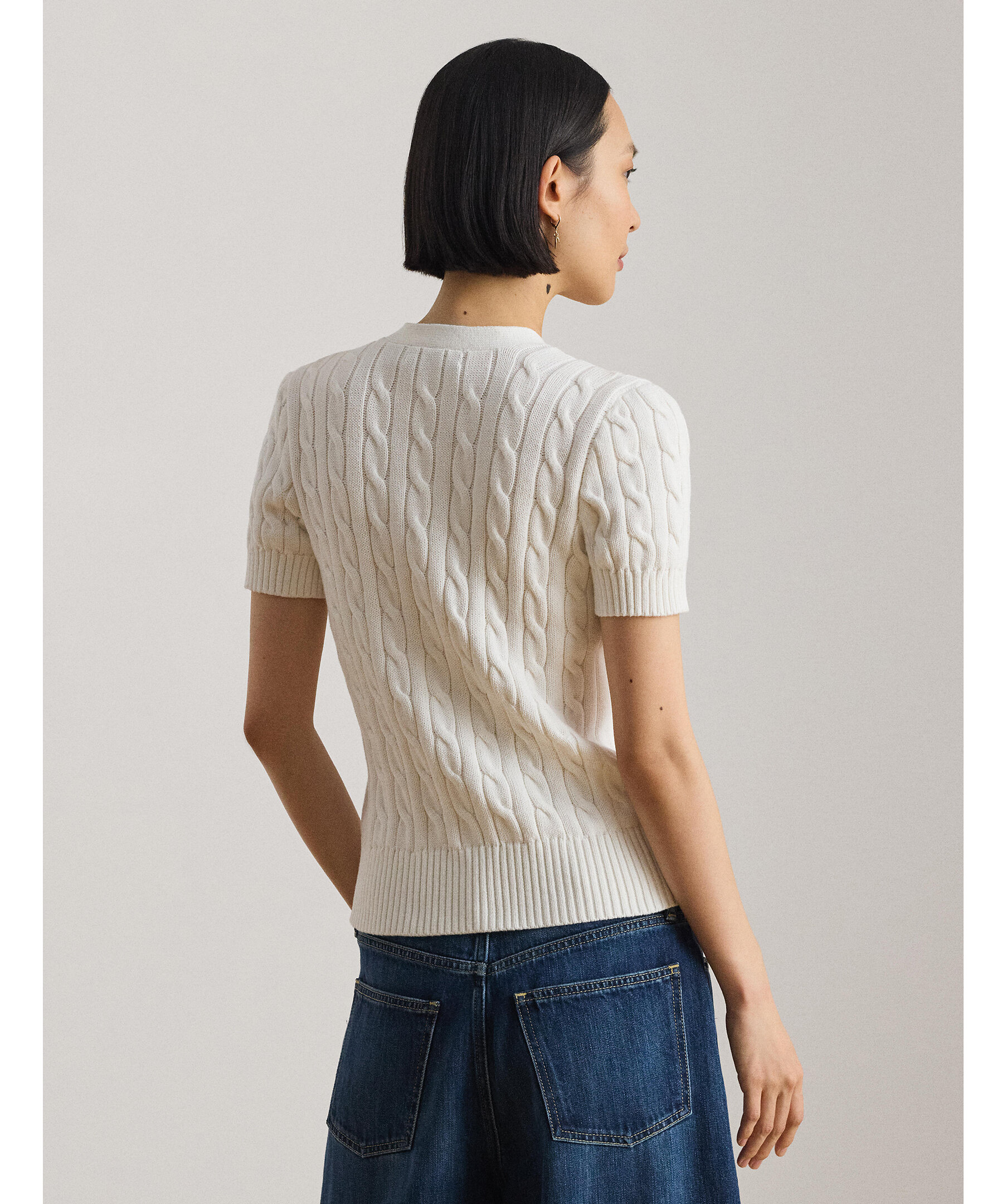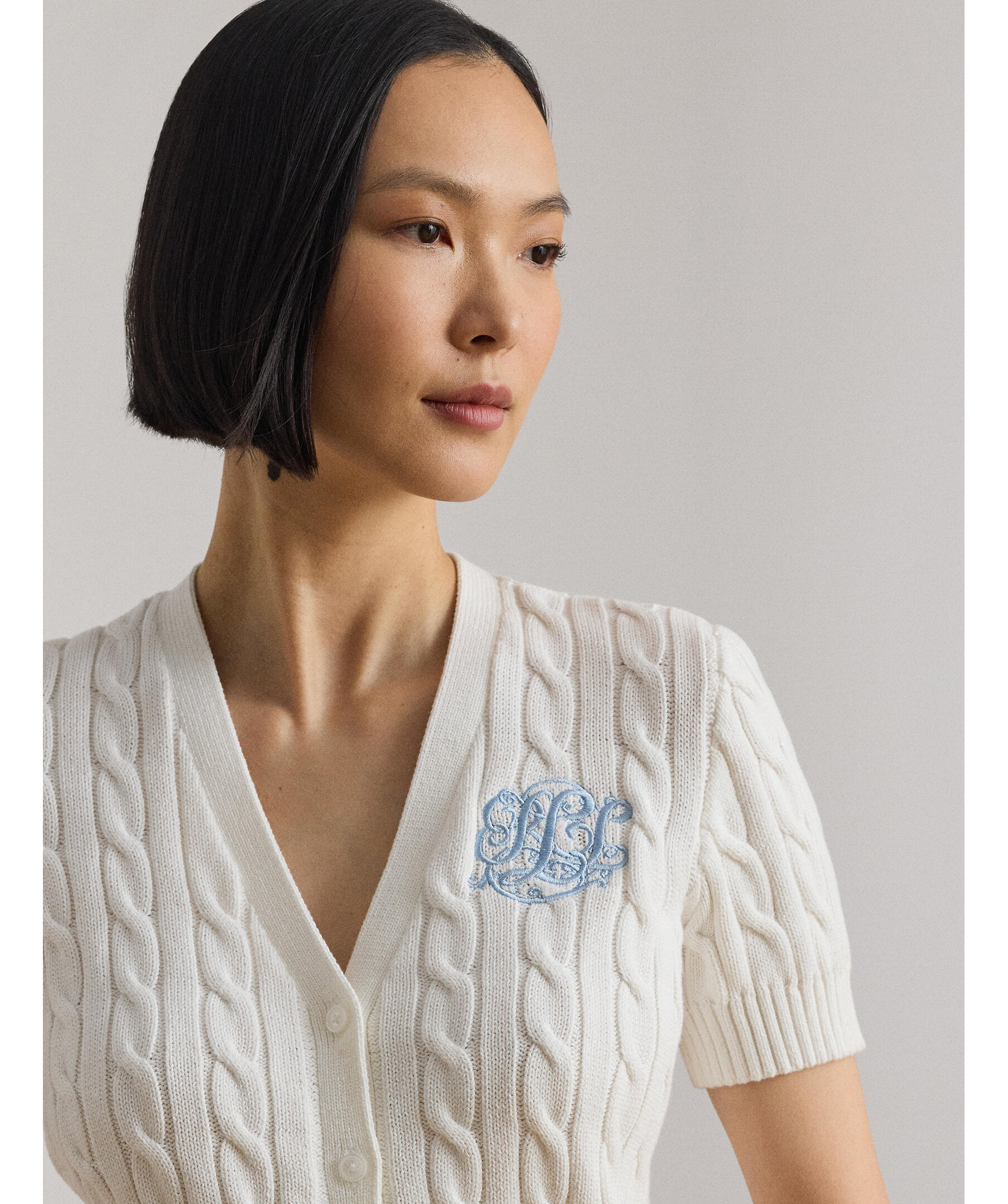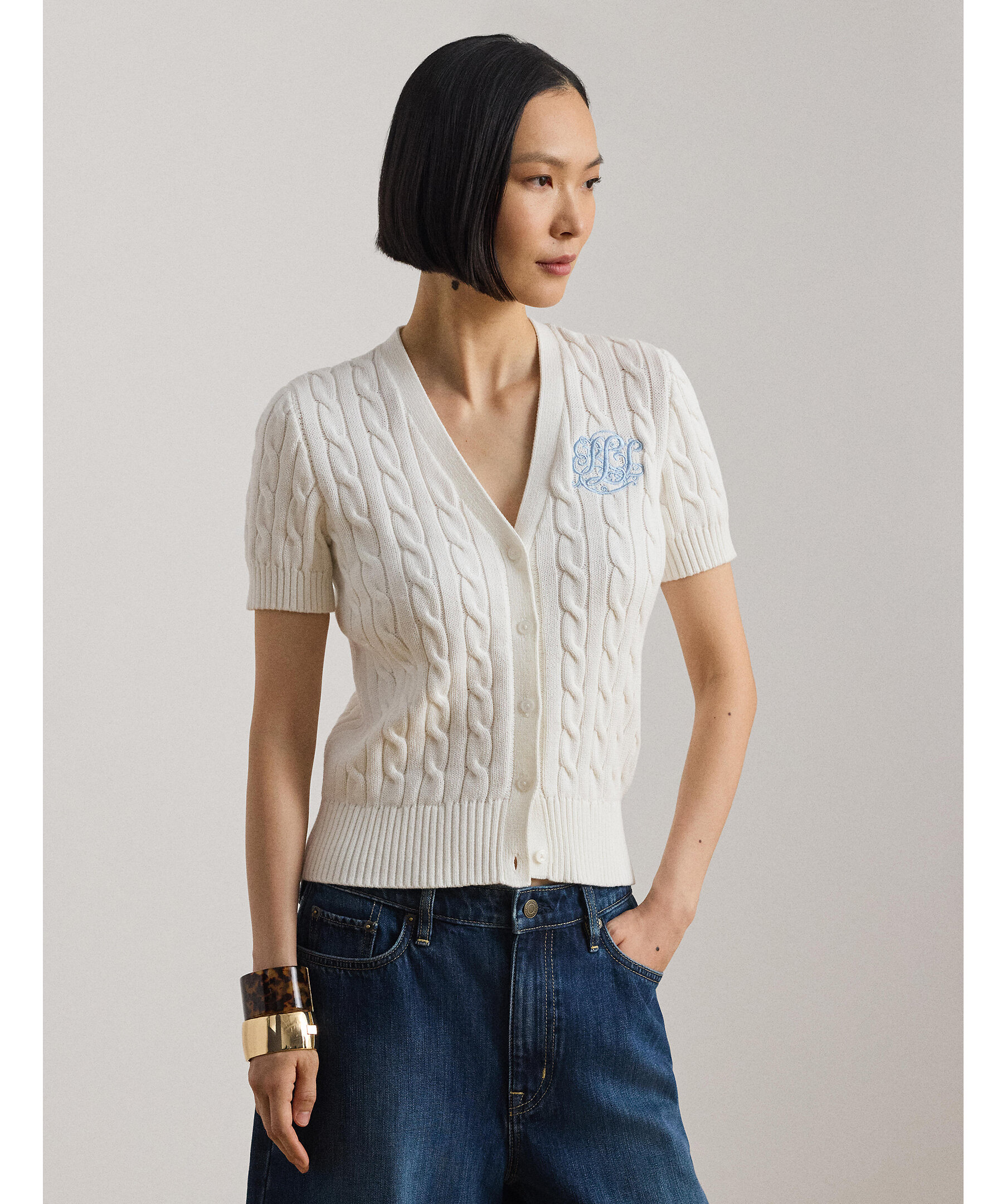 Kabelstickad cardigan med broderad logotyp från Lauren Ralph Lauren.