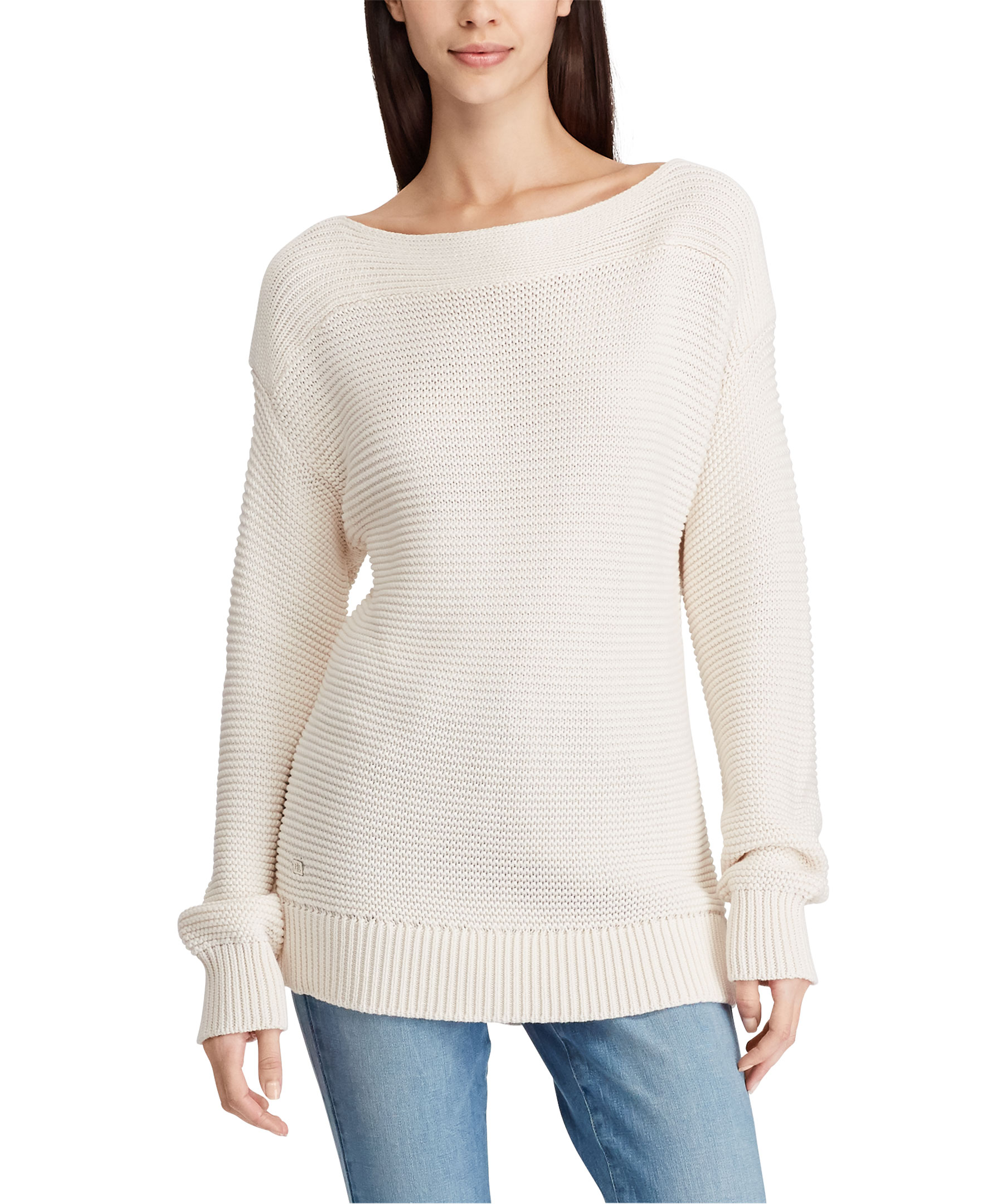 Stickad tröja från Lauren Ralph Lauren. Långa ärmar och båthals med en ribbad stickning.
