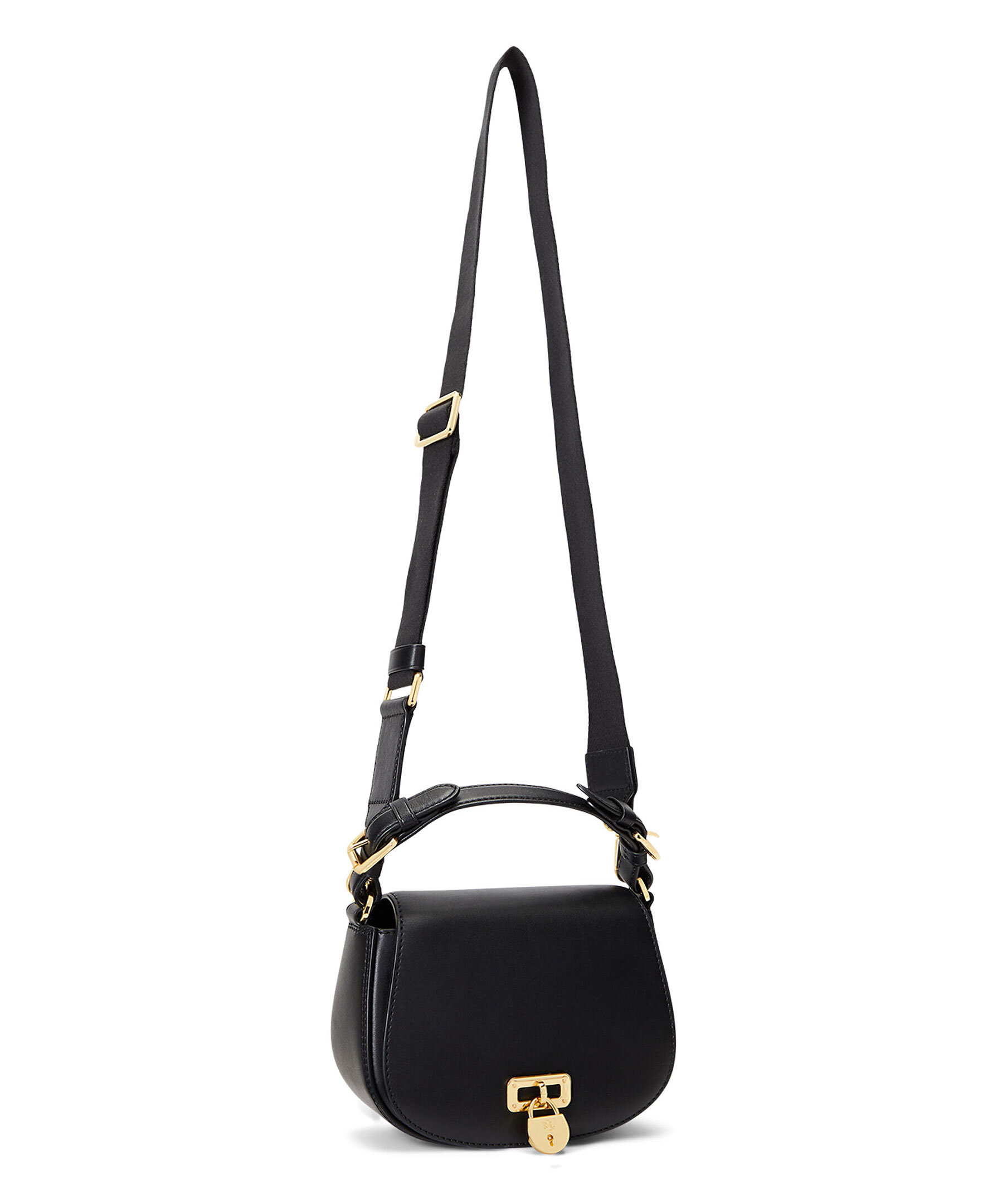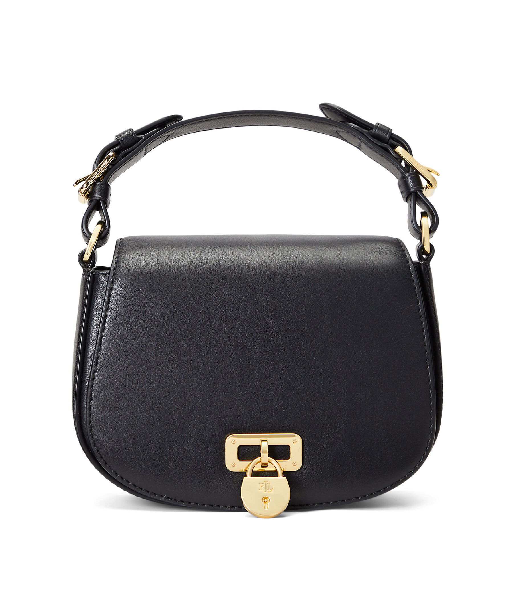 Svart axelremsväska i läder från Lauren Ralph Lauren. Väsklock med magnetlås och guldfärgat lås på utsidan. Avtagbart axelband. En ytterficka på väskans baksida. Stort huvud fack med en mindre ficka inuti.