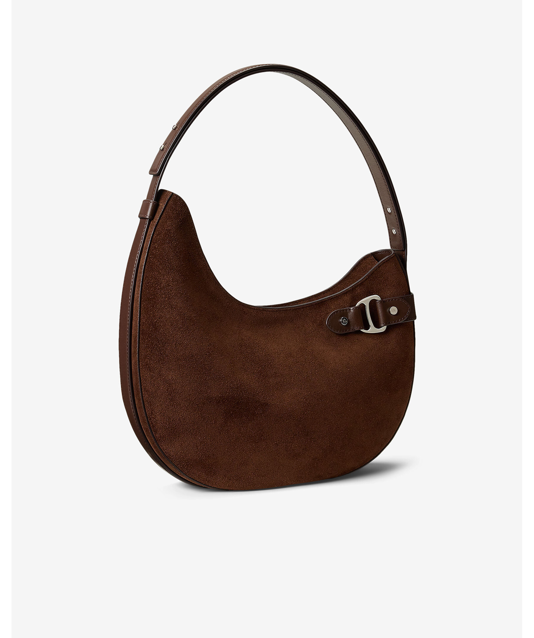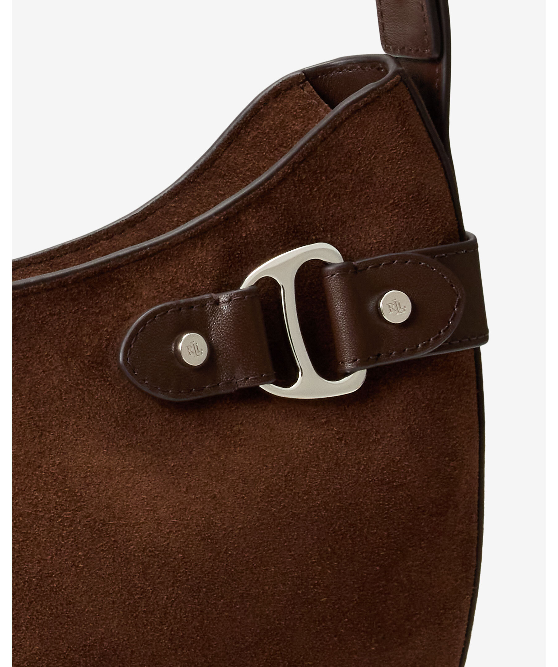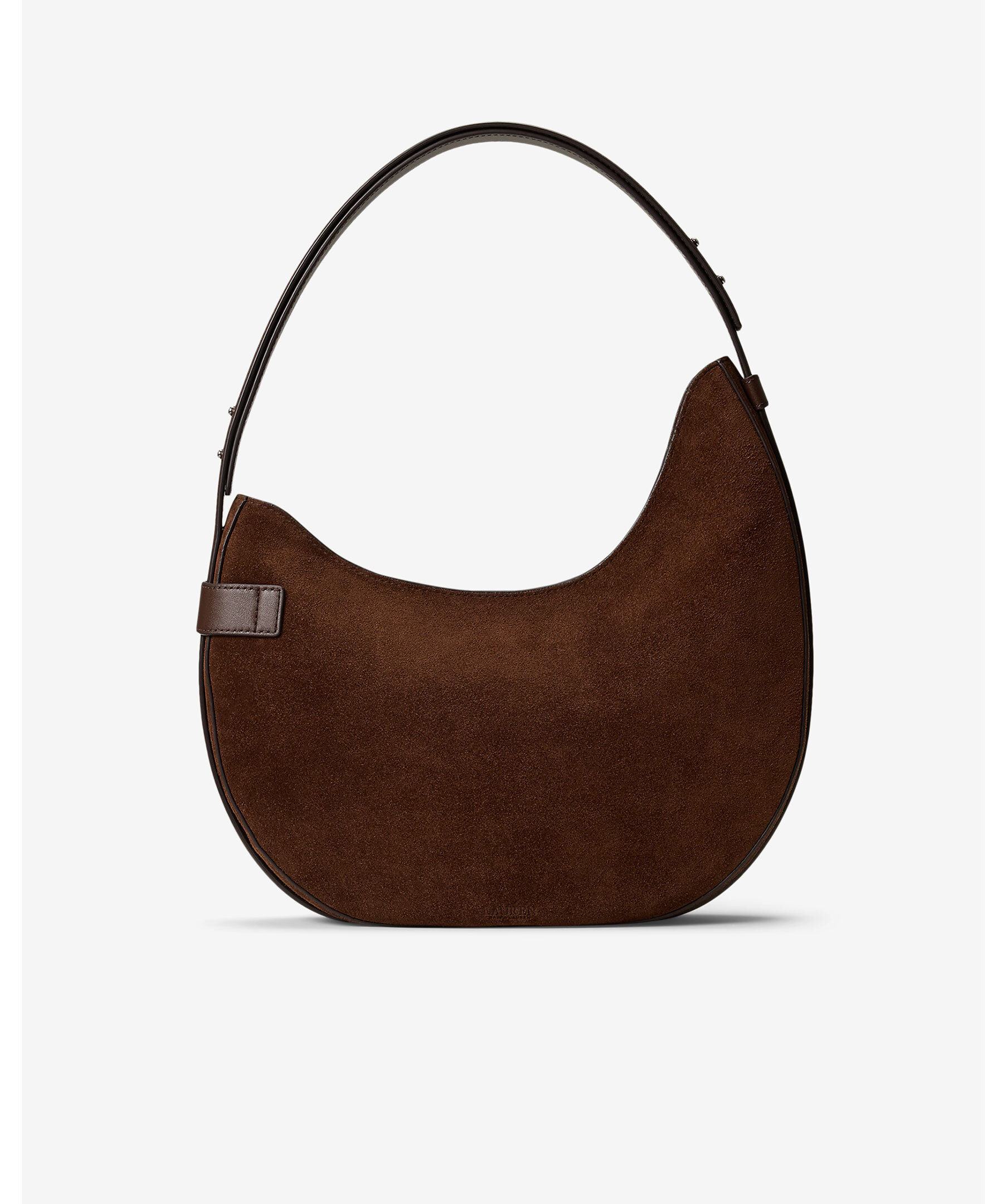 Brun axelväska i mockaläder från Lauren Ralph Lauren. Väskan stängs med dragkedja och har en invändig ficka och foder i polyester. Mått: H 30 cm, B 30 cm, D 6 cm, axelbandshöjd 46cm.
