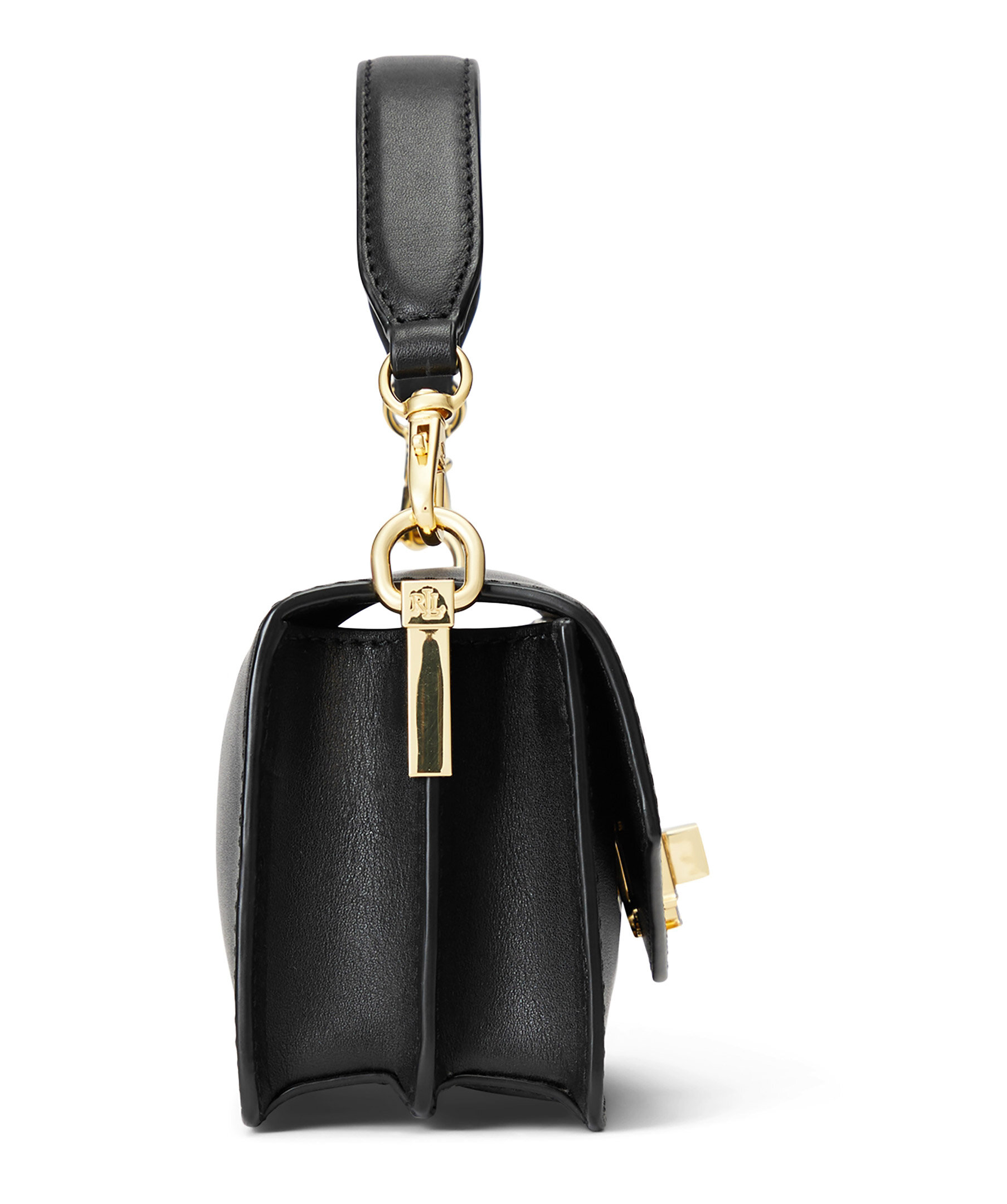 Svart axelremsväska i läder från Lauren Ralph Lauren. Väsklock med magnetlås och guldfärgadt metallspänne med Lauren Ralph Laurens signatur-logotyp. Två fack på insidan och en ficka med dragkedja. Ett topphandtag och justerbar axelrem med en bredd på 3,5 cm. Mått på väskan: 20 x 12 x 7 cm.