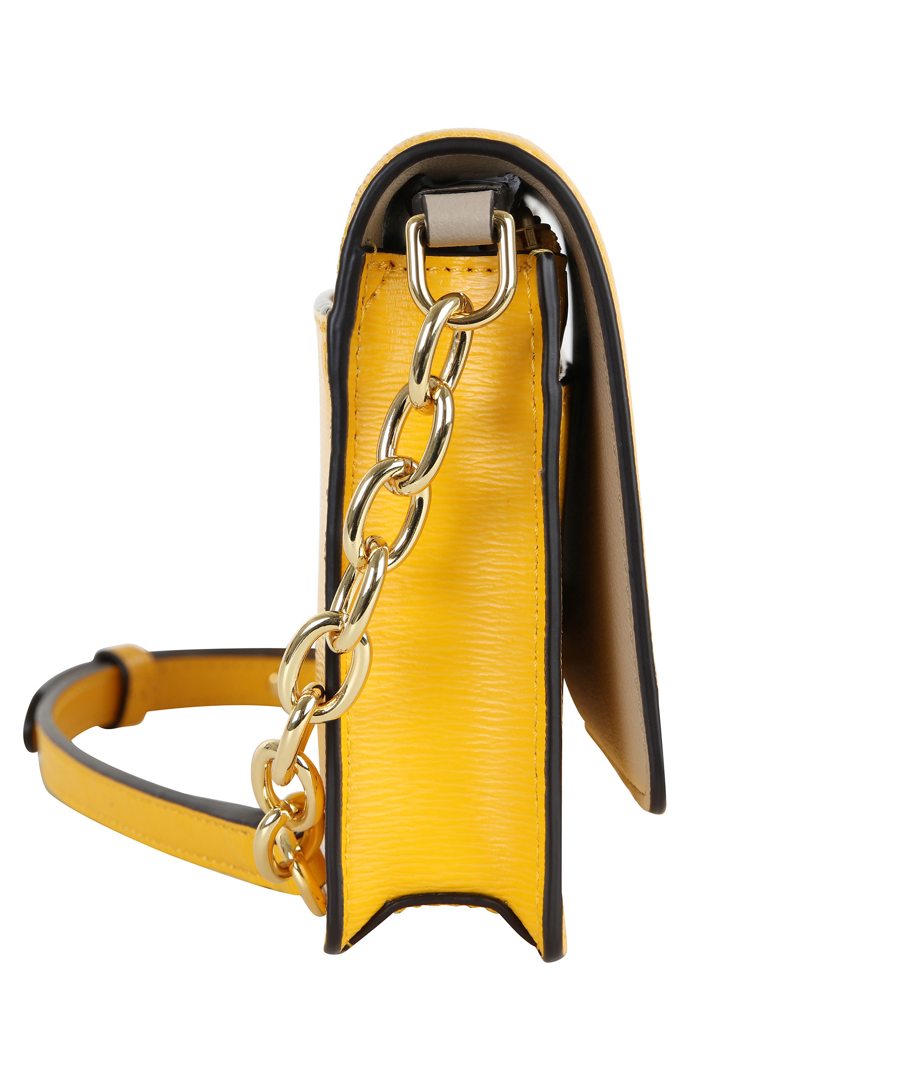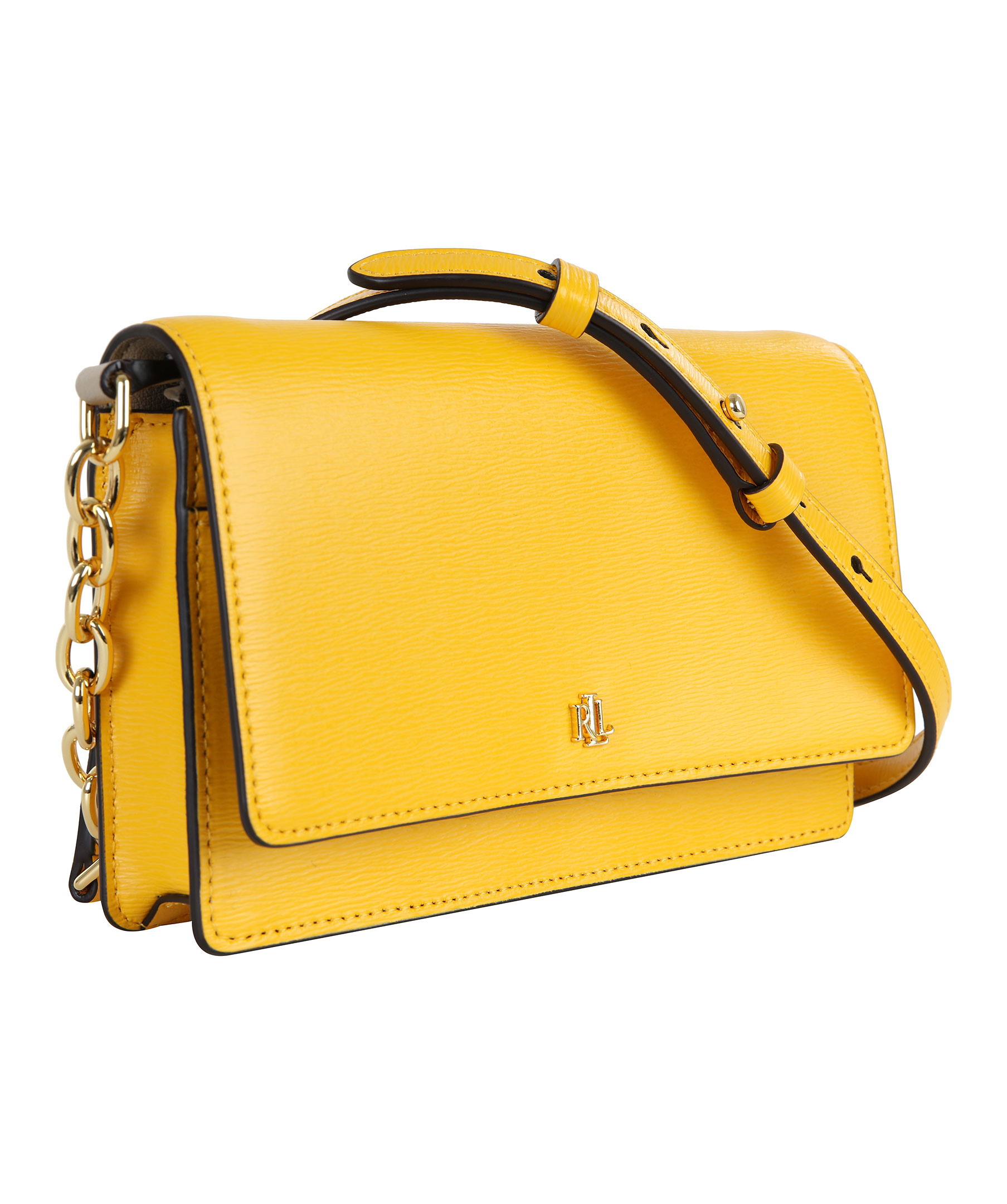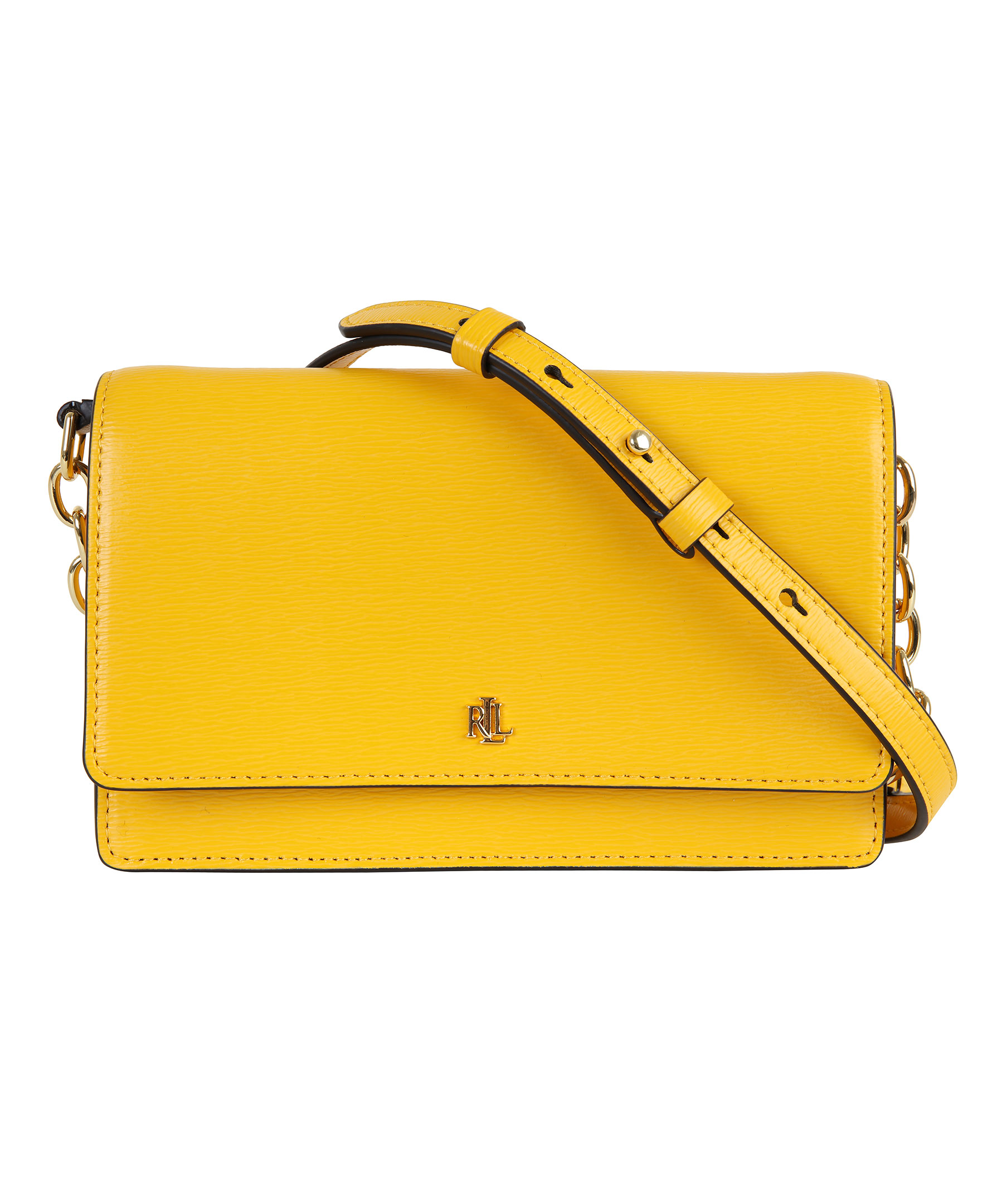 Gul handväska från Lauren Ralph Lauren. Tillverkad i äkta läder. Justerbart axelband, guldfärgad logotyp i metall.