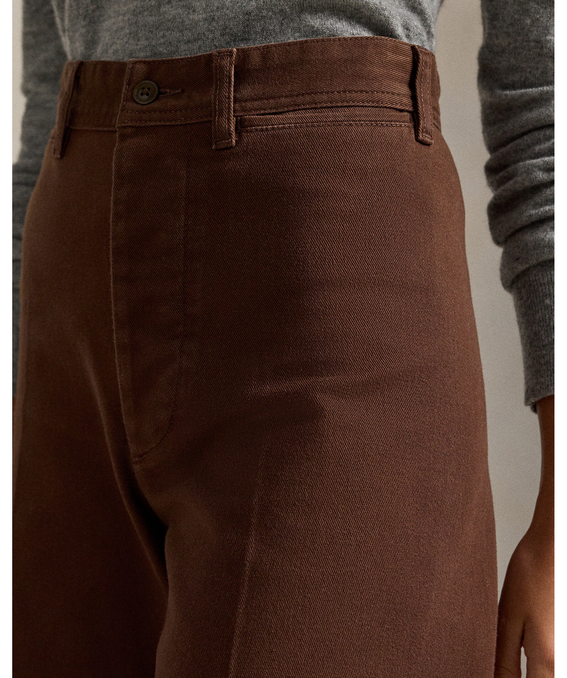 Rostbruna chinos med hög midja och utsvängd benvidd från Lauren Ralph Lauren. Detaljer som tydliga pressveck fram, sidofickor och bakficka med knapp ger funktionell och klassisk finish. Perfekta för både kontorsstil och mer avslappnade vardagsoutfits där du vill kombinera modern form med Lauren Ralph Laurens klassiska estetik.