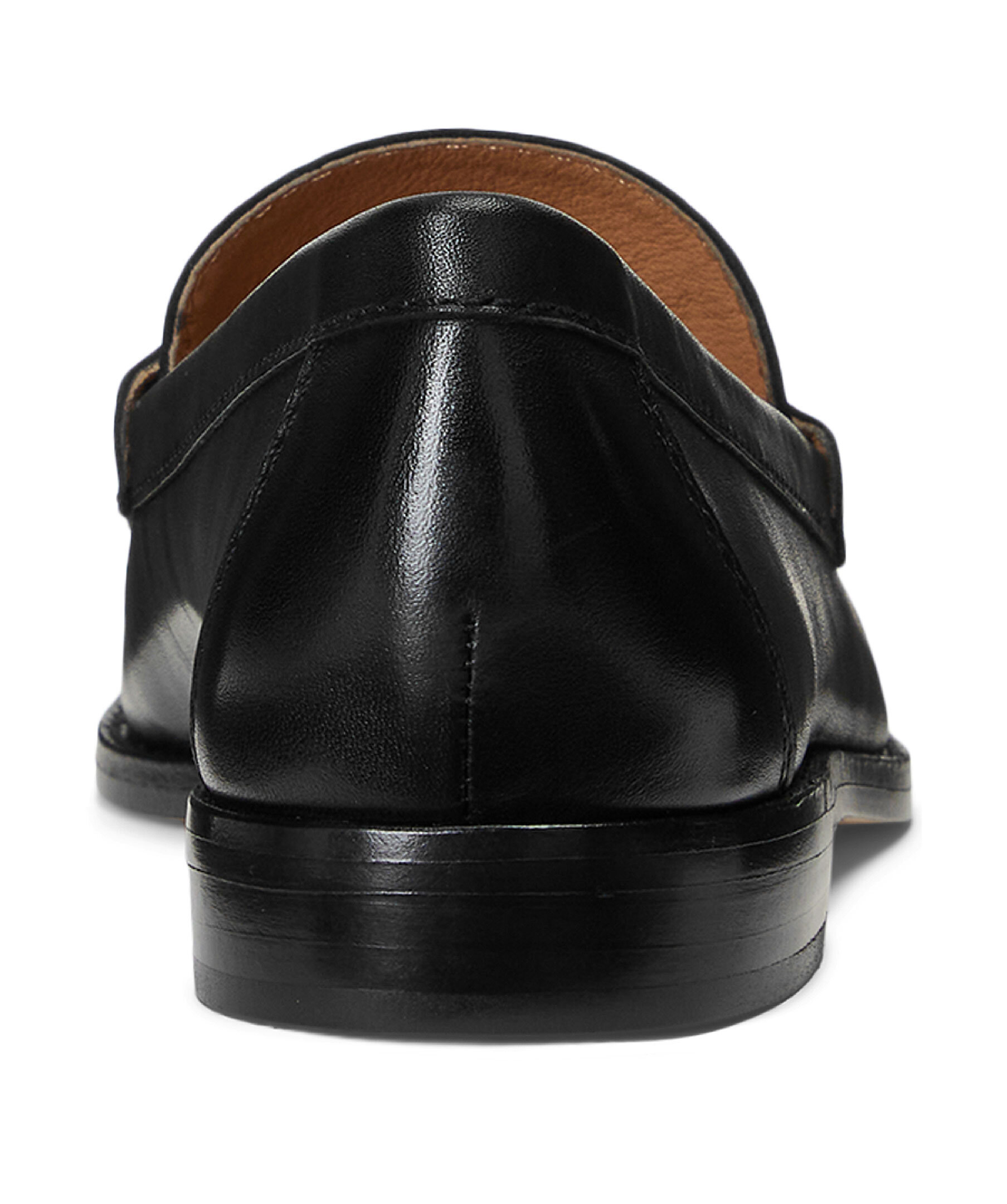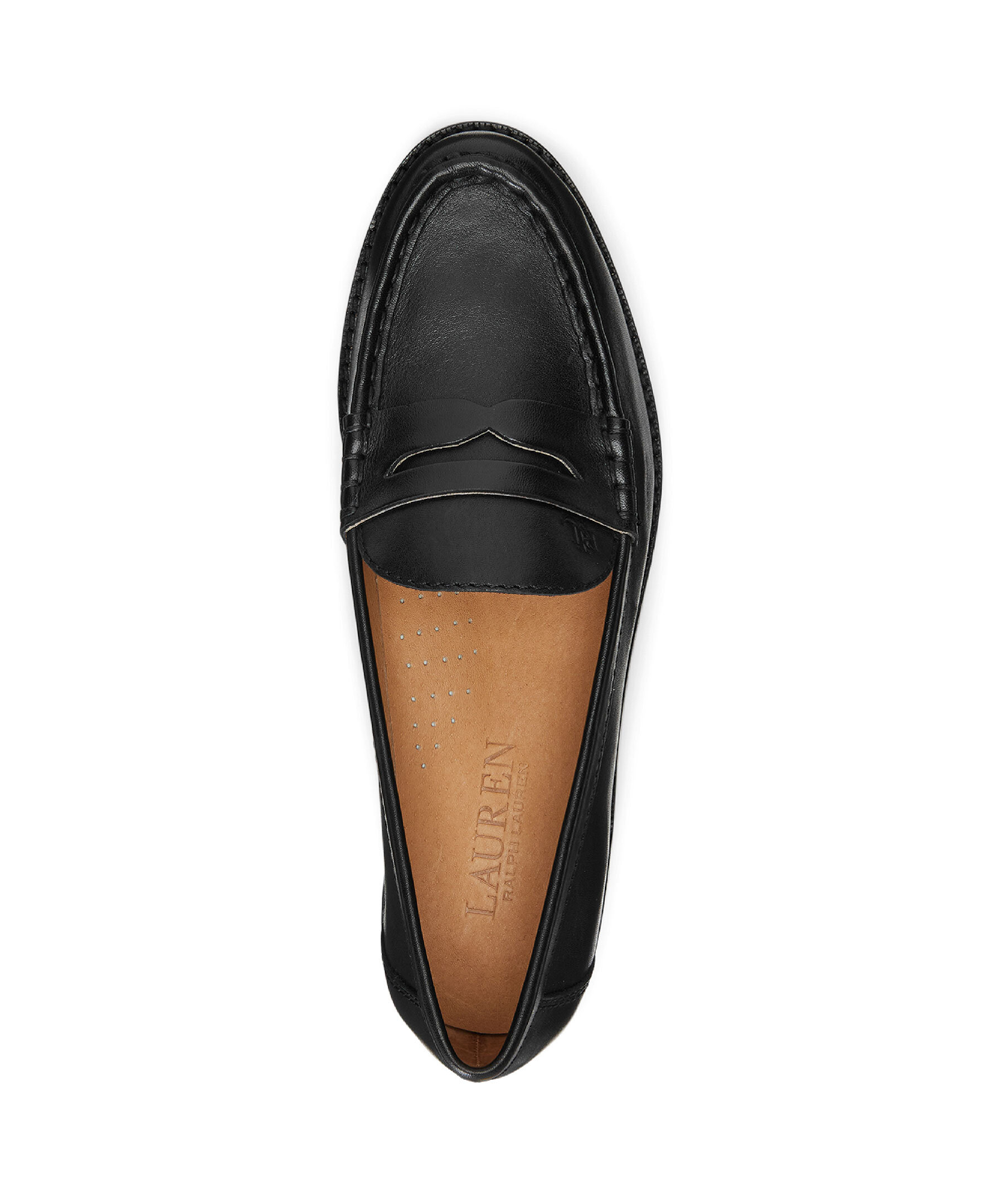 Svarta loafers från Lauren Ralph Lauren. Skorna är i en slip-on modell och har en 10mm klack, mandelformad tå, "LRL" logotyp graverad på ovansidan samt vadderas innersula. Tillverkade i läder.