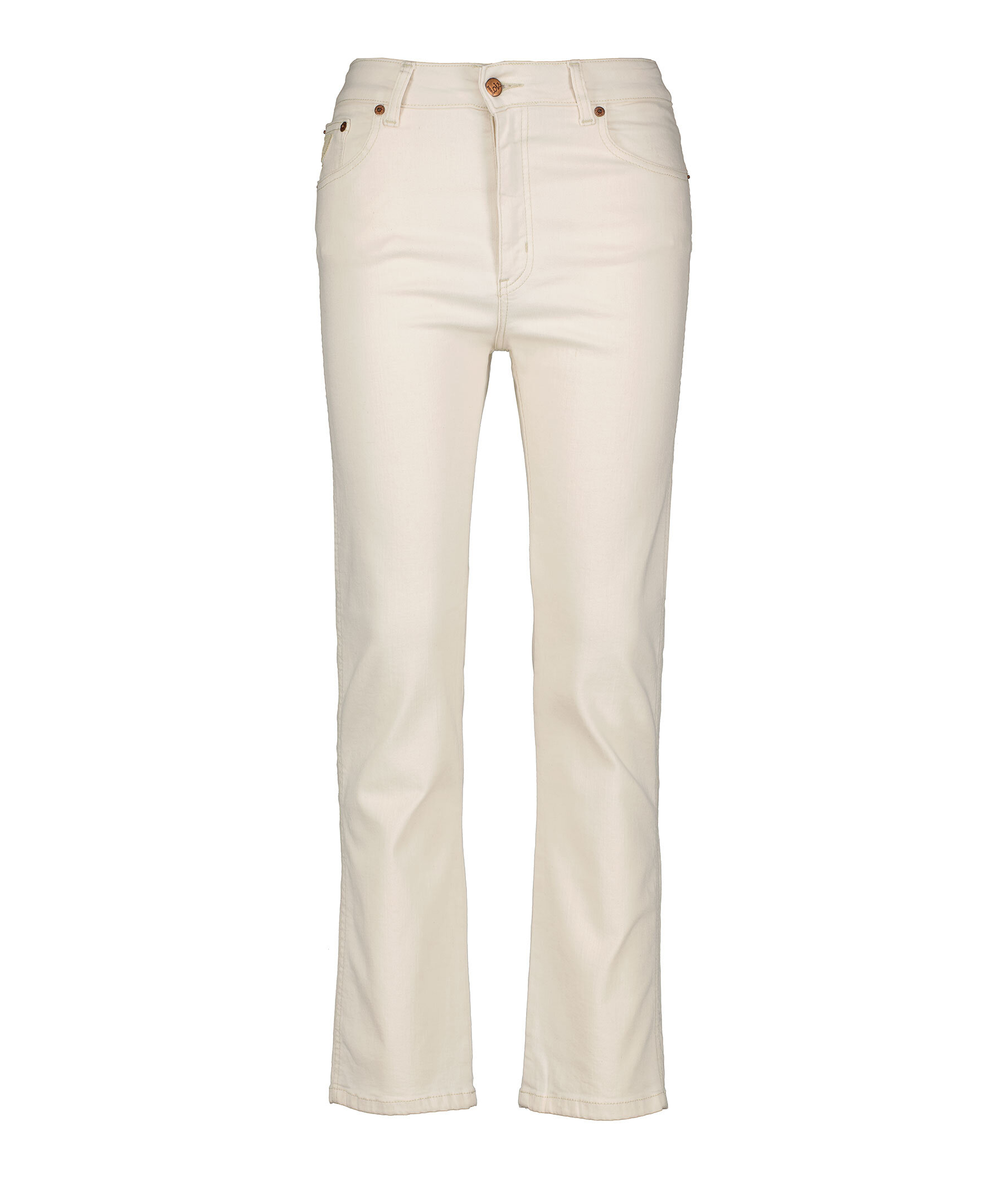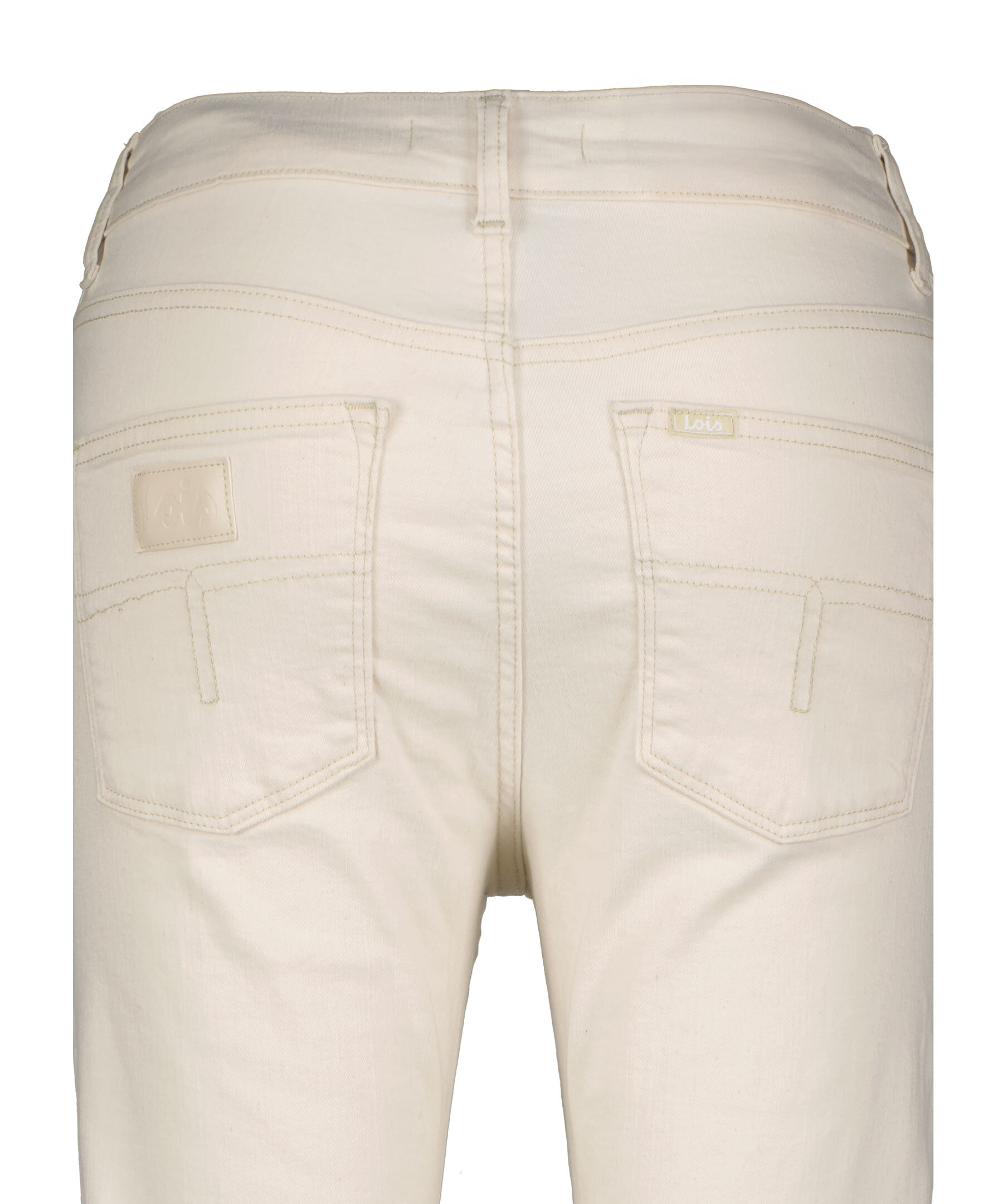 Krämvita jeans från Lois. Jeansen har en rak passform, bälteshällor i midjan och fem fickor. Logotyp på bakfickorna samt myntfickan. Tillverkade i en lyocell- och bomullsblandning.
