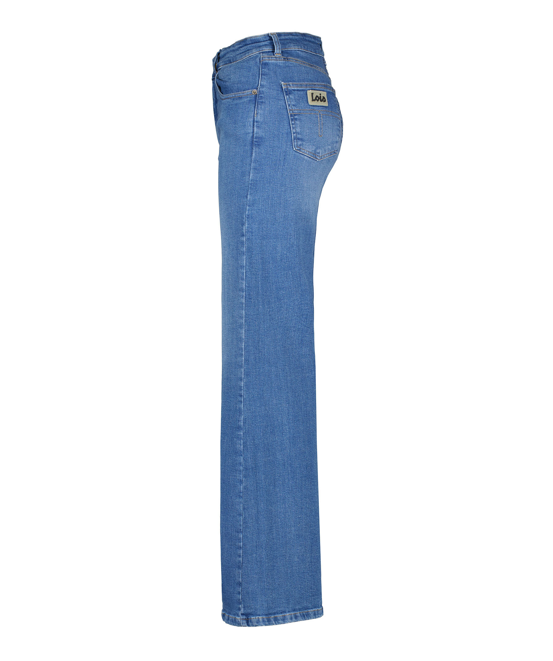Blåa bootcut jeans från Lois. jeansen har hög midja med bälteshällor, fem fickor, logotyp på bakfickorna samt en liten vid myntfickan. Tillverkade i en bomullsblandning.
