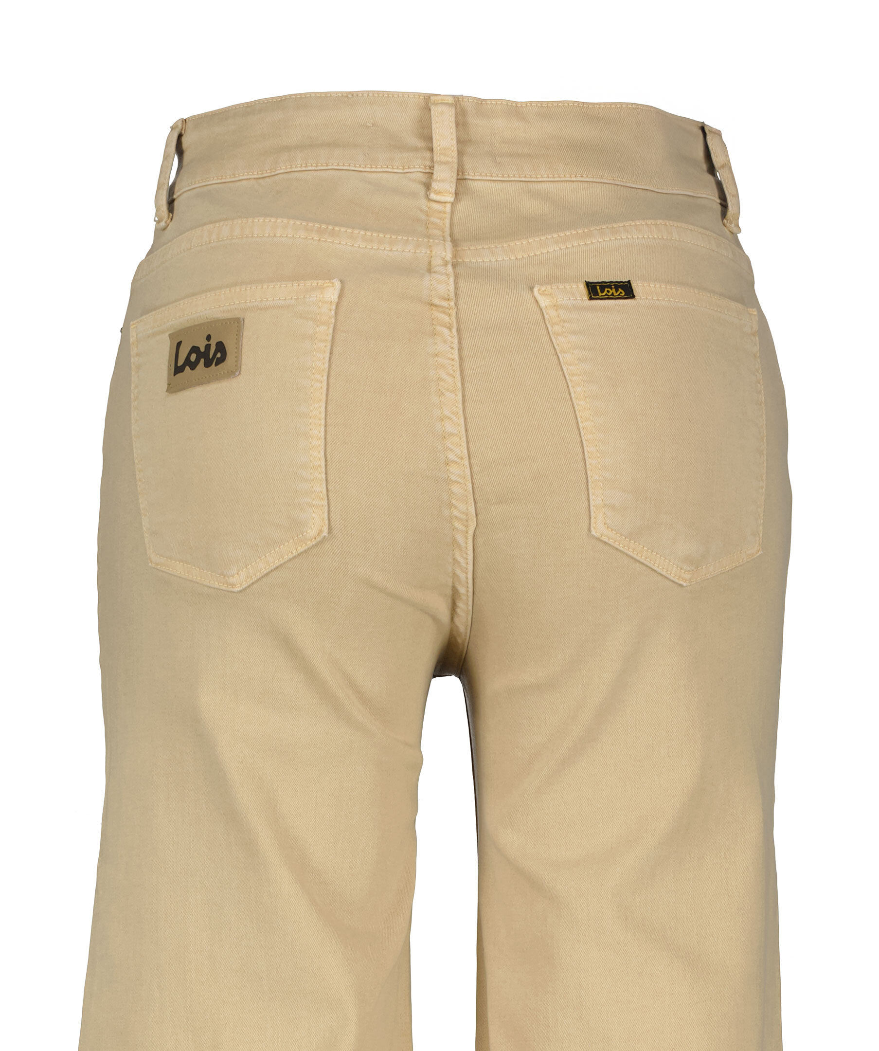 Khakifärgade jeans från Lois. Jeansen har en hög midja med bälteshällor, fem fickor, logotyp på bakfickorna samt en liten vid myntfickan. Benslut har en avklippt look. Tillverkade i en bomull- och lyocellblandning.