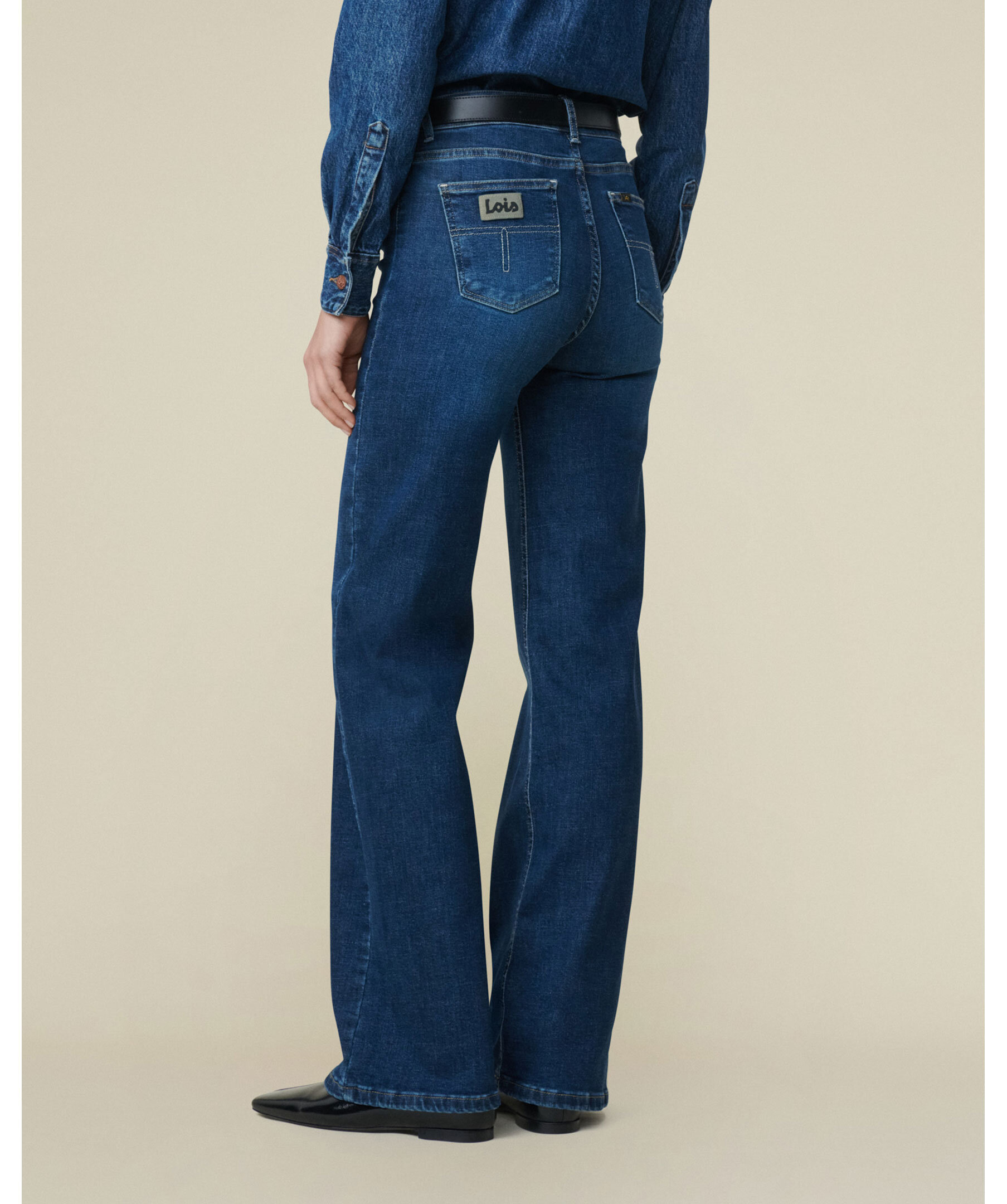 Palazzo Celtic Winter från Lois Jeans är vida jeans i färgen Dark Blue. Jeanserna har en mid-rise midja, vida ben och tillverkade i stretchdenim. En del av Lois’ Bio Denim-kollektion och producerade i Spanien. Stiltyp: Palazzo – perfekt för ett avslappnat men stilrent uttryck.