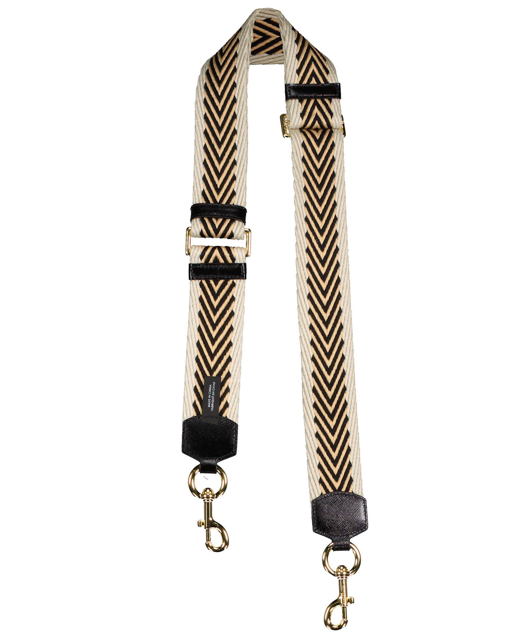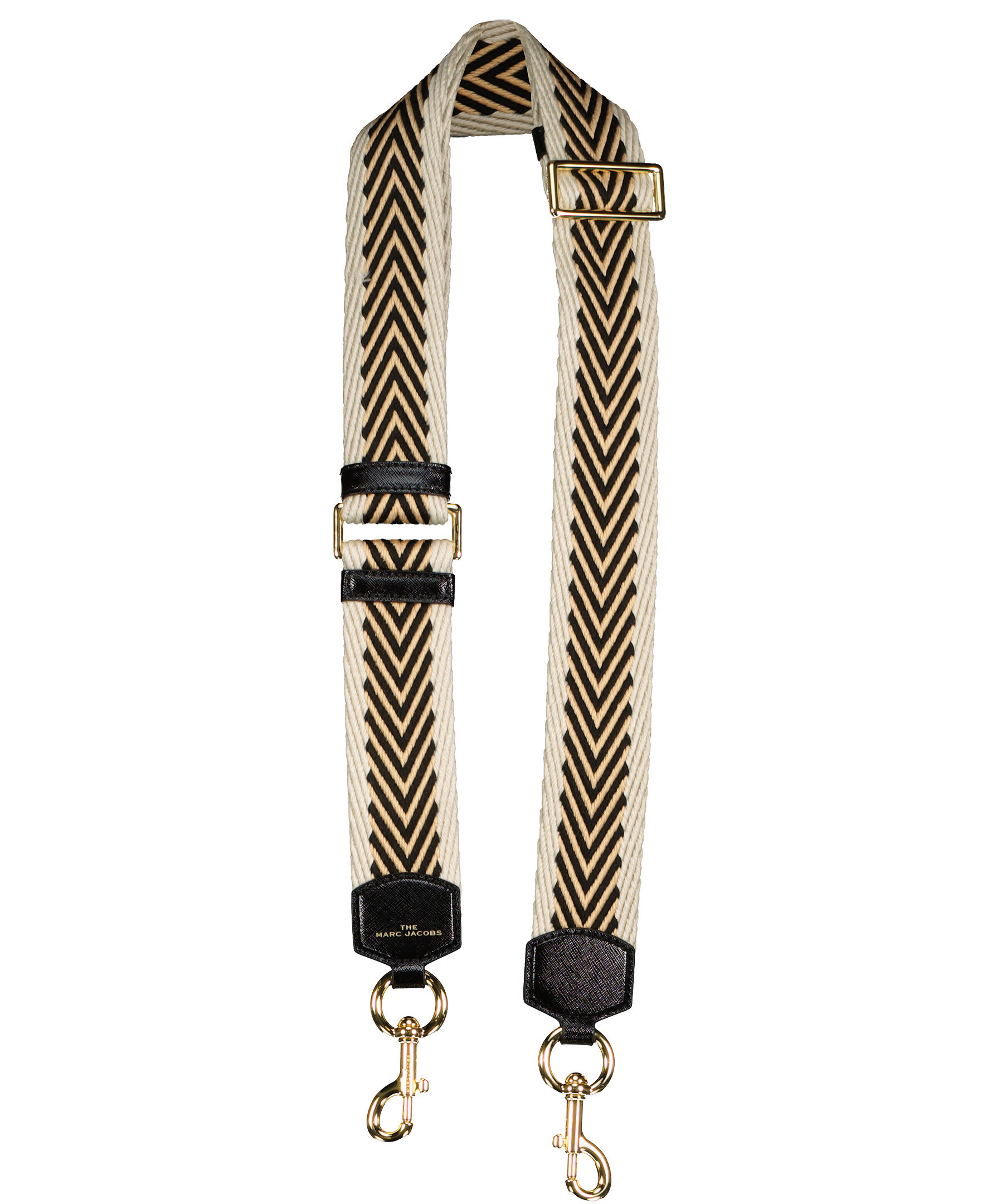 Beige och svart mönstrad justerbar vävd axelrem från Marc Jacobs. Med konstläder detaljer och guldfärgade spännen. 6 cm bred