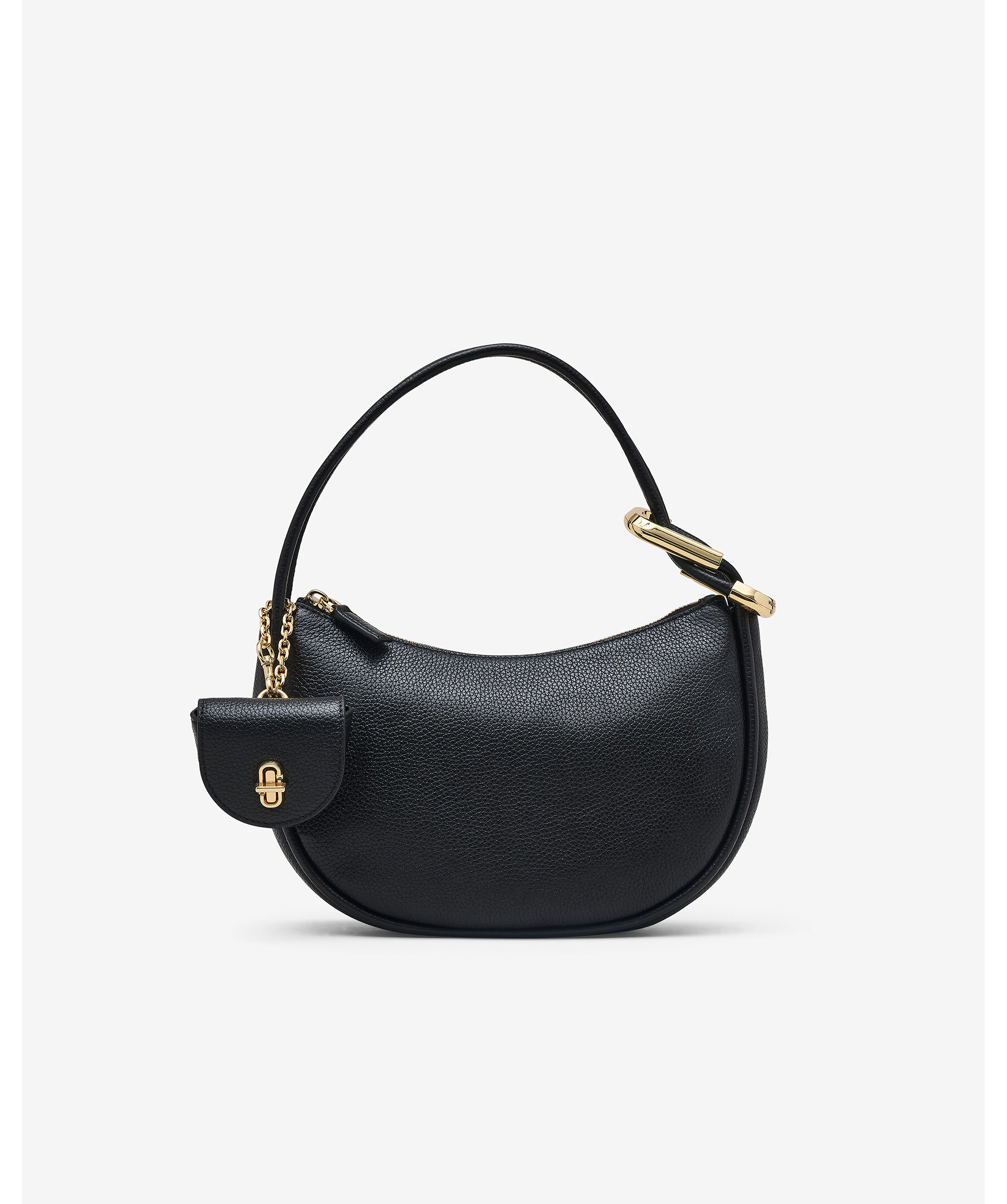 Svart handväska från Marc Jacobs i en halvmåneformad design. Väskan har ett avtagbart hörlursfodral, stängs med dragkedja och har en innerficka med dragkedja, en ytterficka med avtagbar vridlås samt foder i läder. Mått: 26 cm L x 8 cm D x 16 cm H, handtagshöjd 18cm.