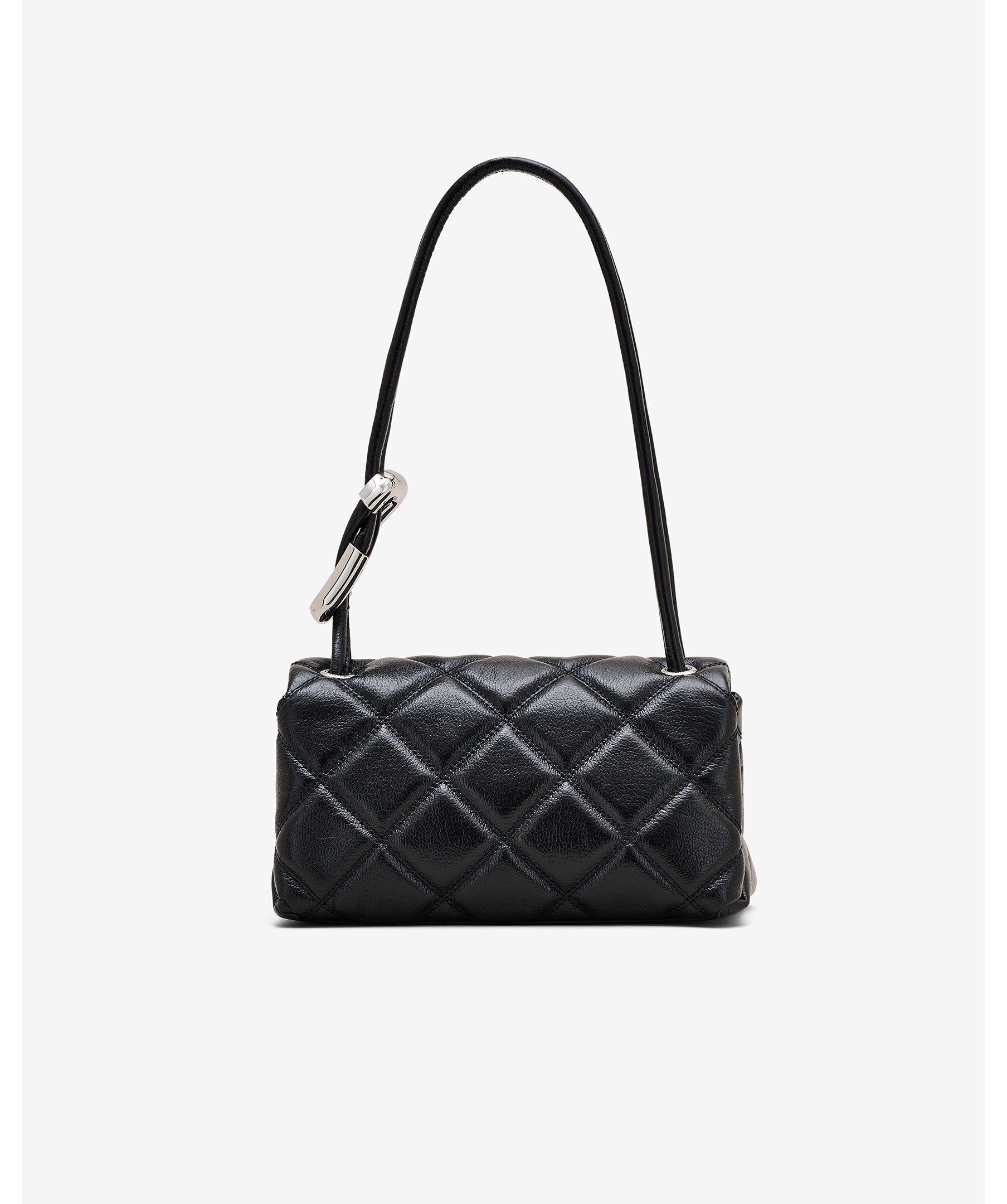 Denna eleganta och kompakta väska i quiltat läder kombinerar tidlös design och funktionalitet. Den har dubbla axelremmar som gör den enkel att bära både över axeln och crossbody. Trots sin lilla storlek rymmer den det viktigaste: ett interiört fack med utrymme för mobil, plånbok och små accessoarer, samt en smidig konstruktion som håller dina tillhörigheter säkra men lättillgängliga. Mått: 22cm L x 11cm D x 11cm H och Axelremmens dropplängd är 12 cm.