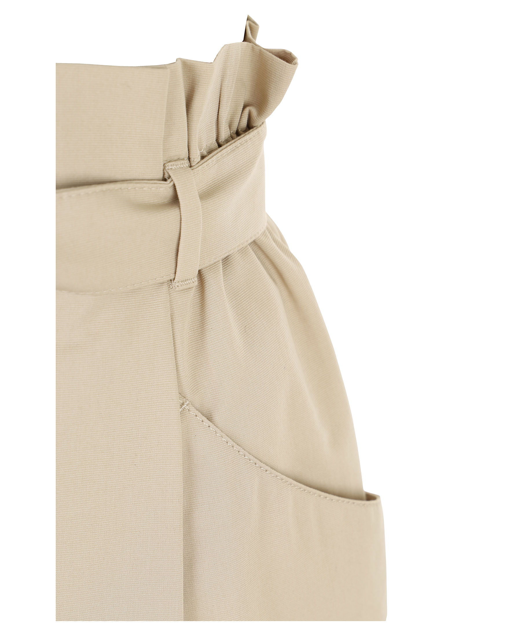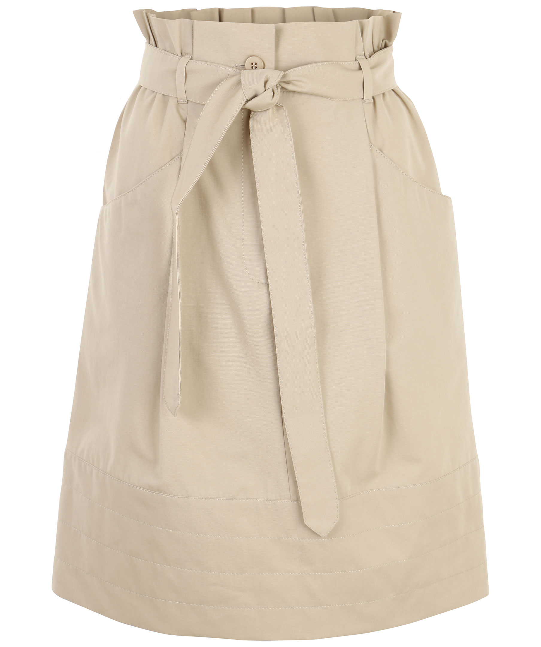 Beige kjol från Max Mara Weekend. Resår och bälte i midjan, knapp och dragkedja i gylfen. Två fickor fram.