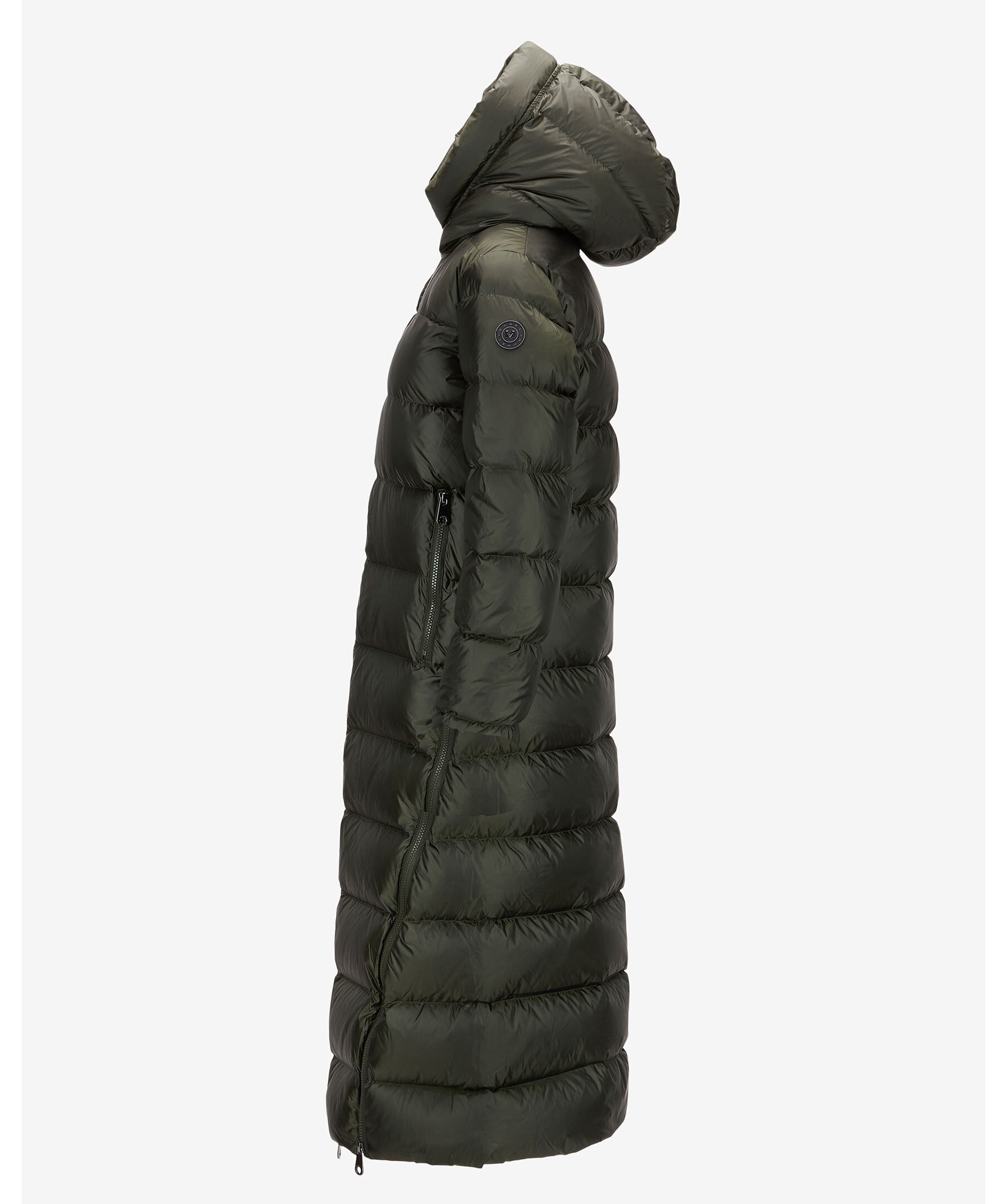 Mörkgrön quiltad dunkappa från Monel. Stängs framtill med tvåvägsdragkedja. Två fickor framtill som stängs med dragkedja. Innerficka som stängs med dragkedja. Höga slitsar i sidorna som stängs med dragkedja. Patch i gummi på vänster ärm med logotyp i metall. Tryckt logotyp på kragen innanför luvan. Jackan är vattenavstötande.