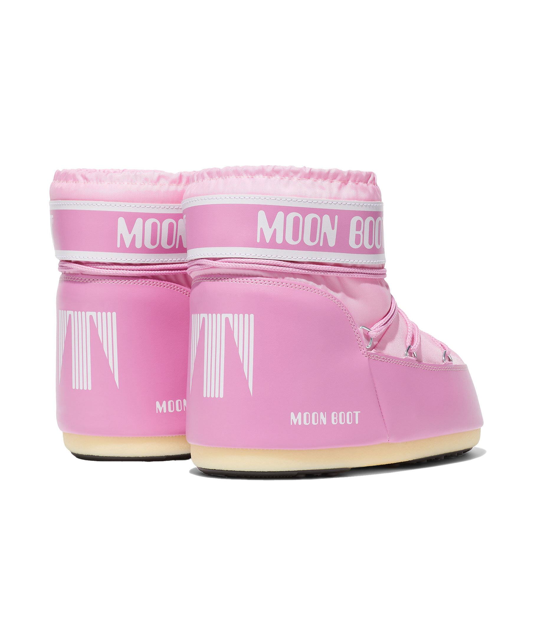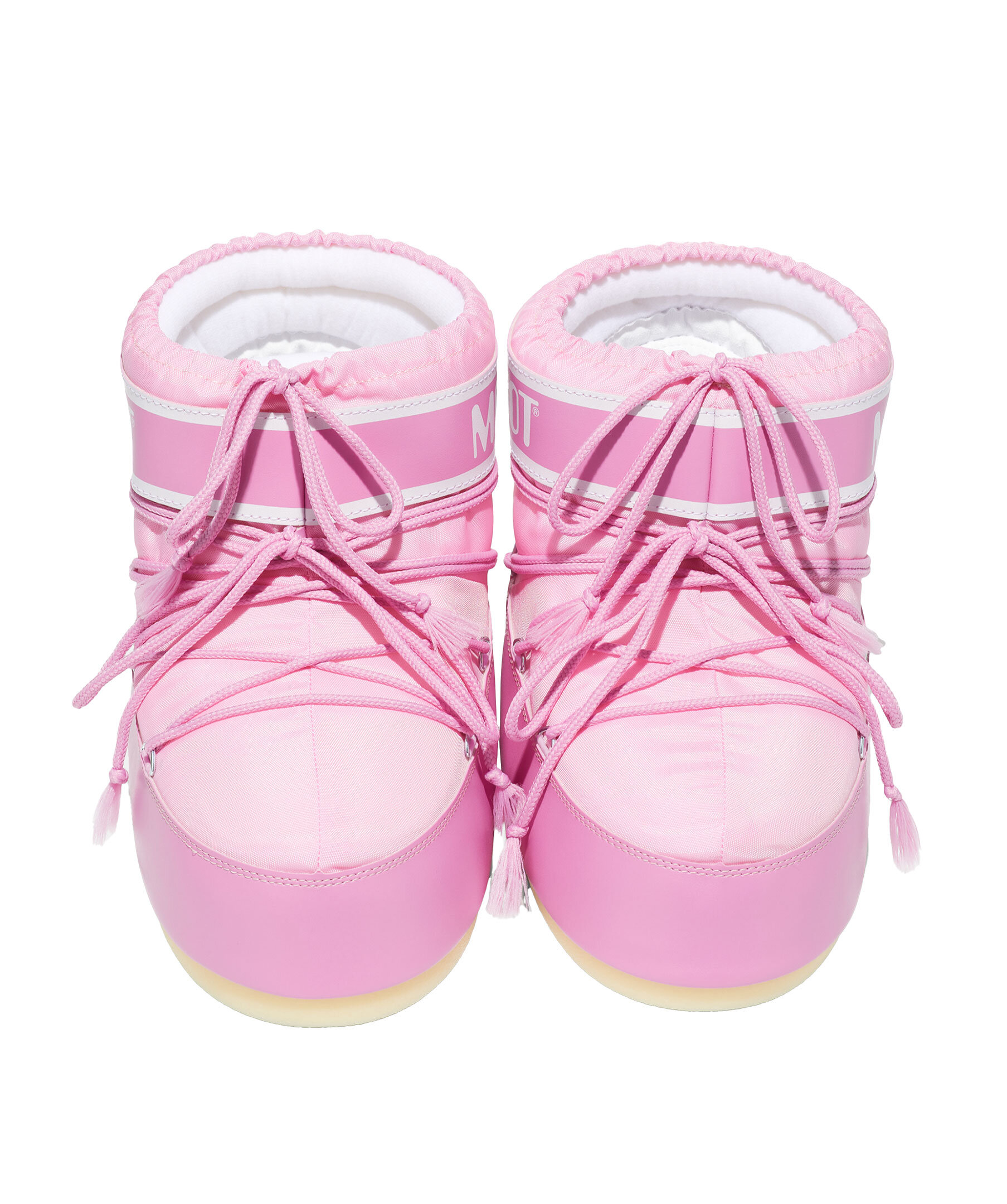 Ljusrosa boots från Moon Boot i en låg modell. Skorna är isolerade och utrustade med en lätt mellansula samt sugkuddar på gummisulan som ger bättre markkontroll. Logotyp runt skon samt snörning framtill. Dragsko upptill. 100% vattenavvisande. Skorna är inspirerade av månlandningen 1969.