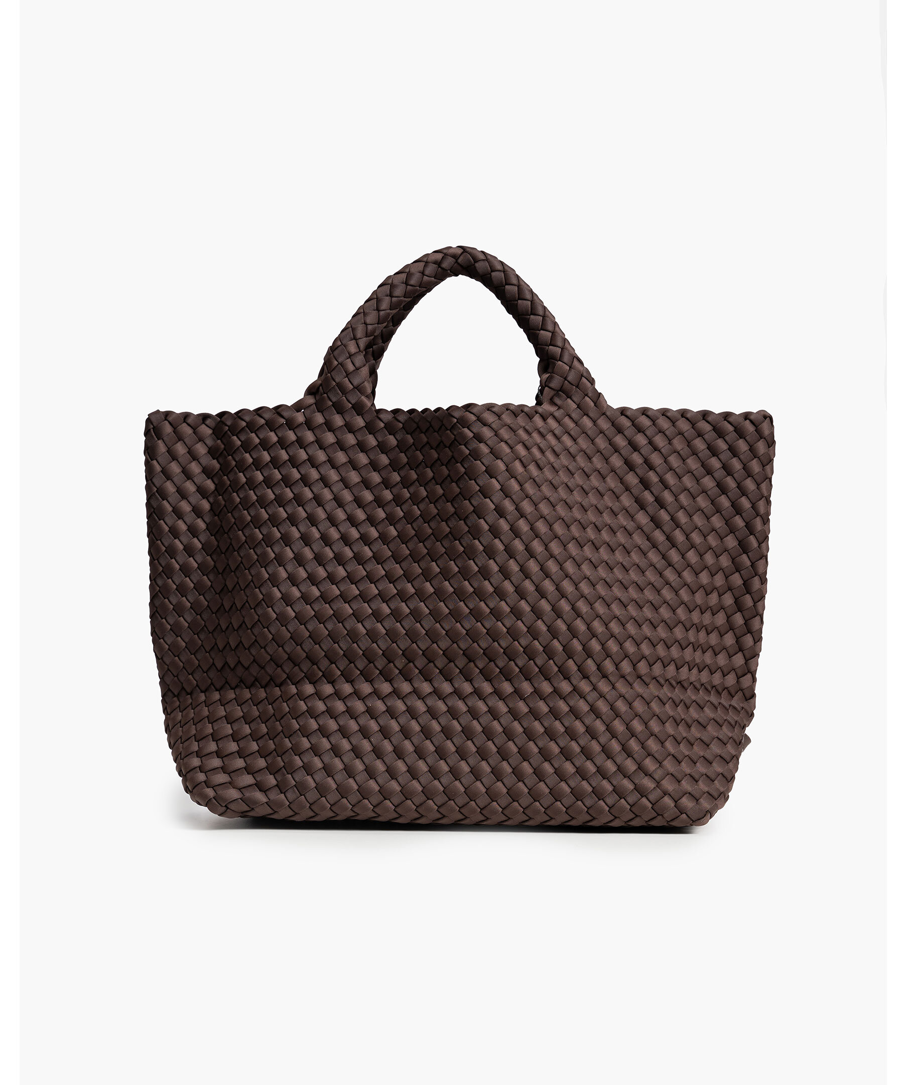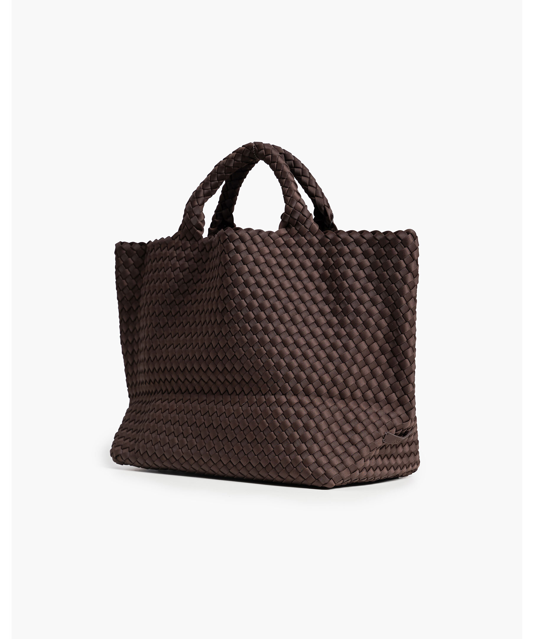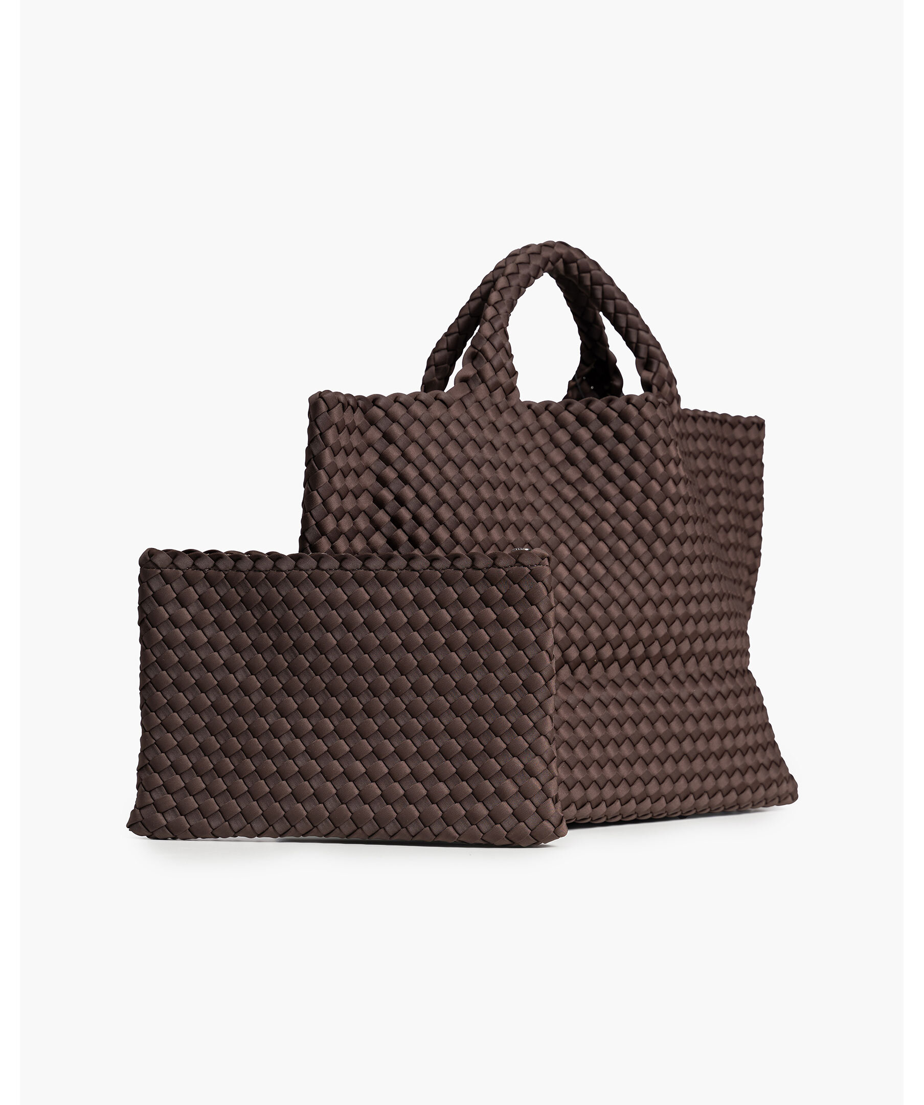 Handvävd väska från Naghedi. En rymlig och lätt vardagsväska – den perfekta följeslagaren för arbete, helg och allt däremellan. Denna mjukt strukturerade, mellanstora tote-väska har en öppen topp och kommer med en matchande vävd necessär med dragkedja för att hålla dina småsaker organiserade.