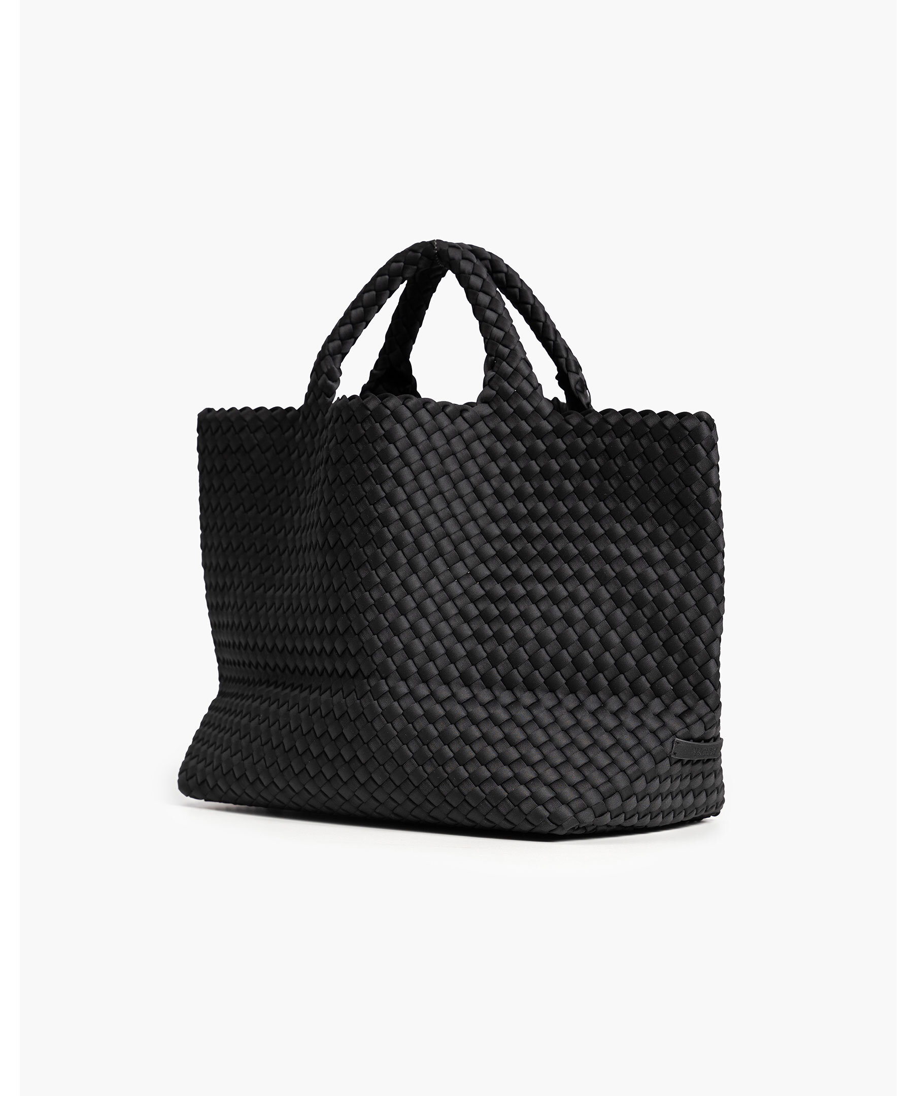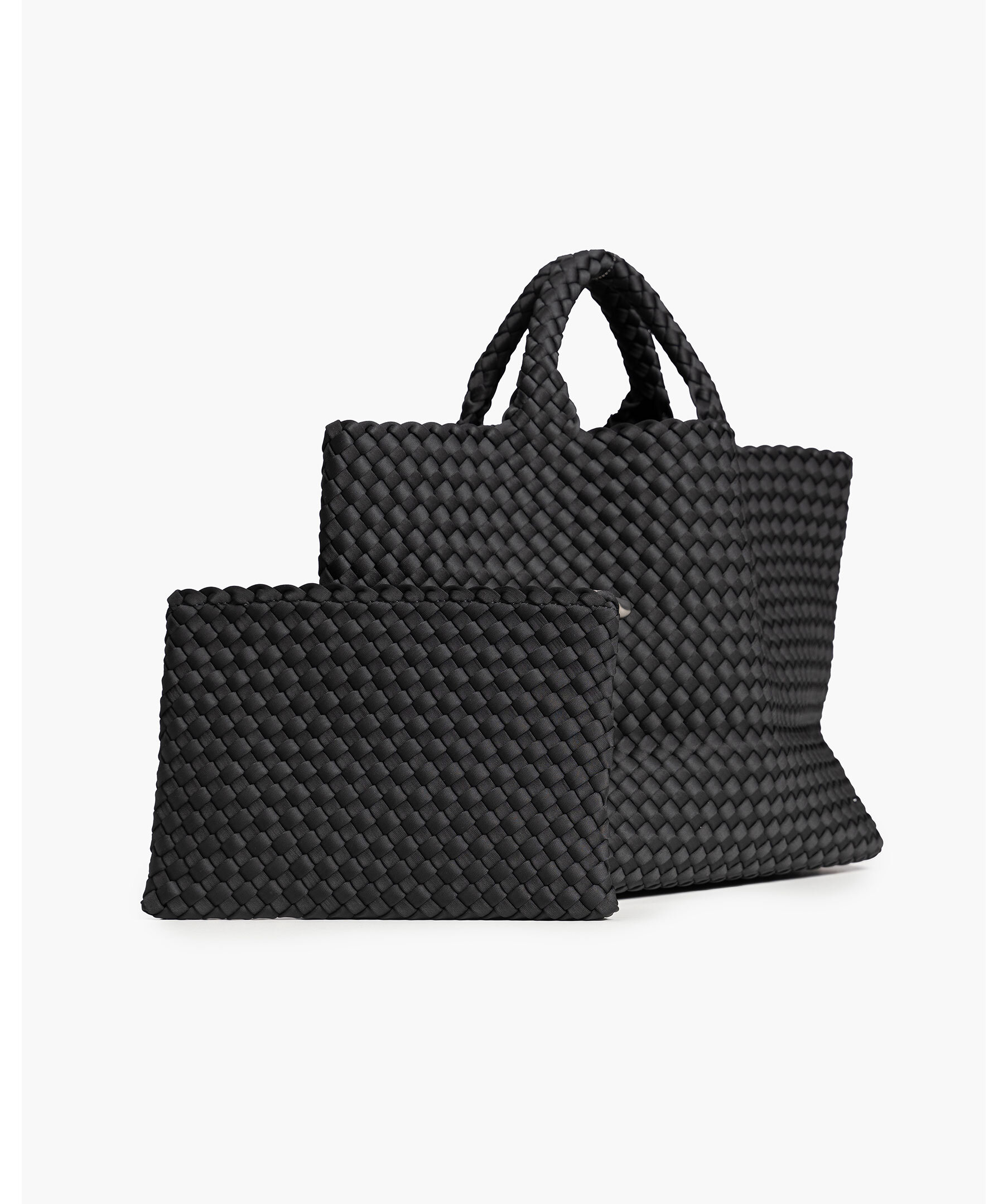 Handvävd väska från Naghedi. En rymlig och lätt vardagsväska – den perfekta följeslagaren för arbete, helg och allt däremellan. Denna mjukt strukturerade, mellanstora tote-väska har en öppen topp och kommer med en matchande vävd necessär med dragkedja för att hålla dina småsaker organiserade.