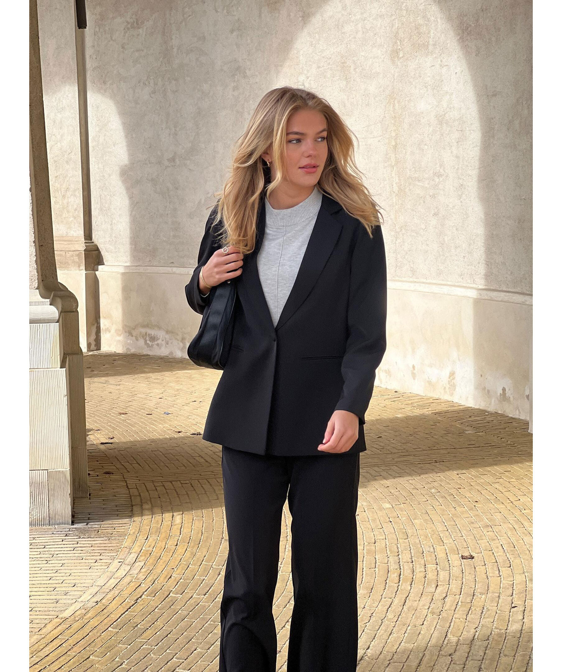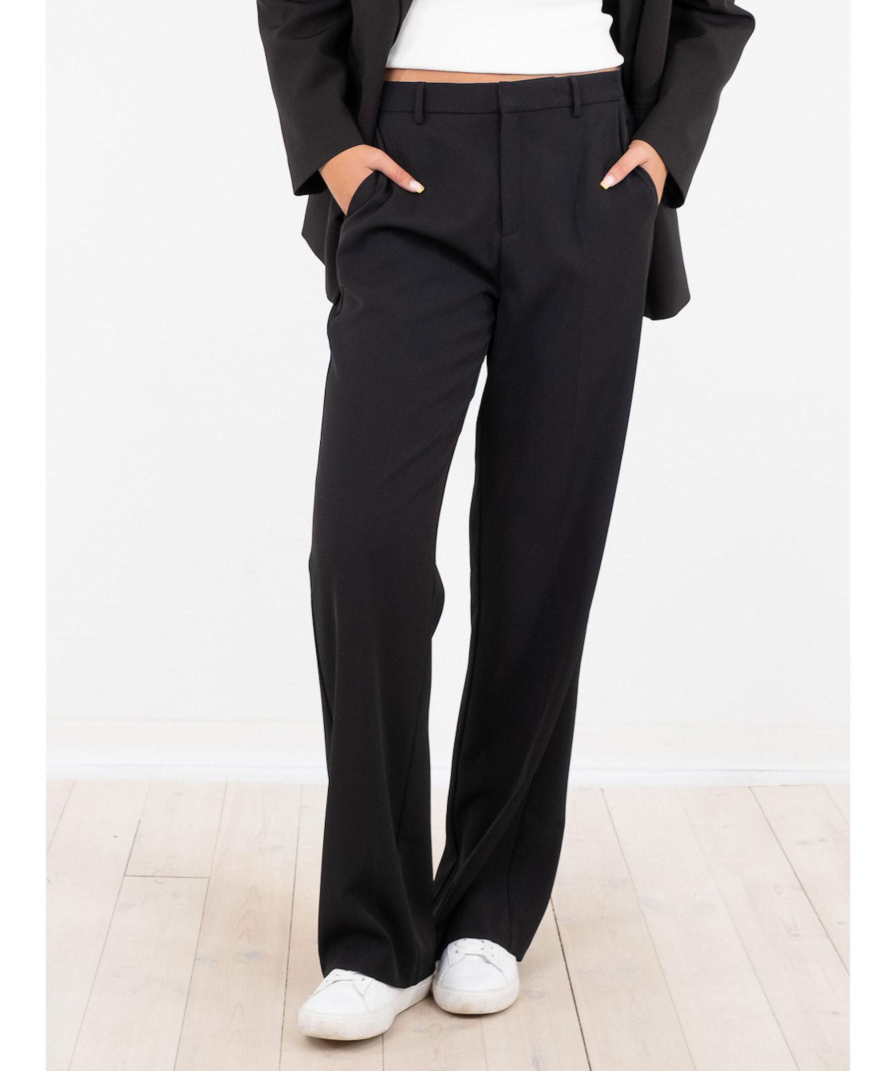 Svarta byxor från Neo Noir i rak modell. Mjuk kvalitet, stängs med dold dragkedja, hyska och hake samt knapp. Snedställda fickor i sidorna, passpoalfickor baktill samt hällor för bälte i linning.