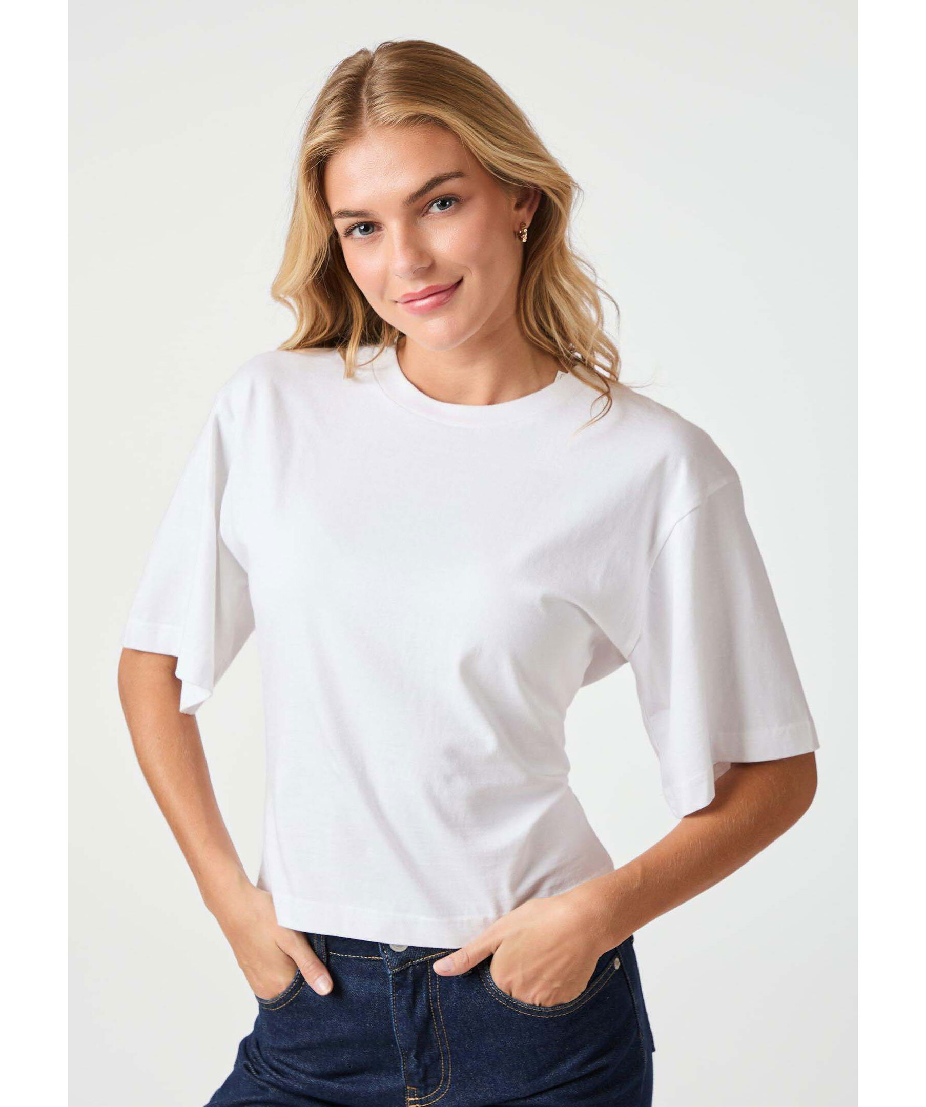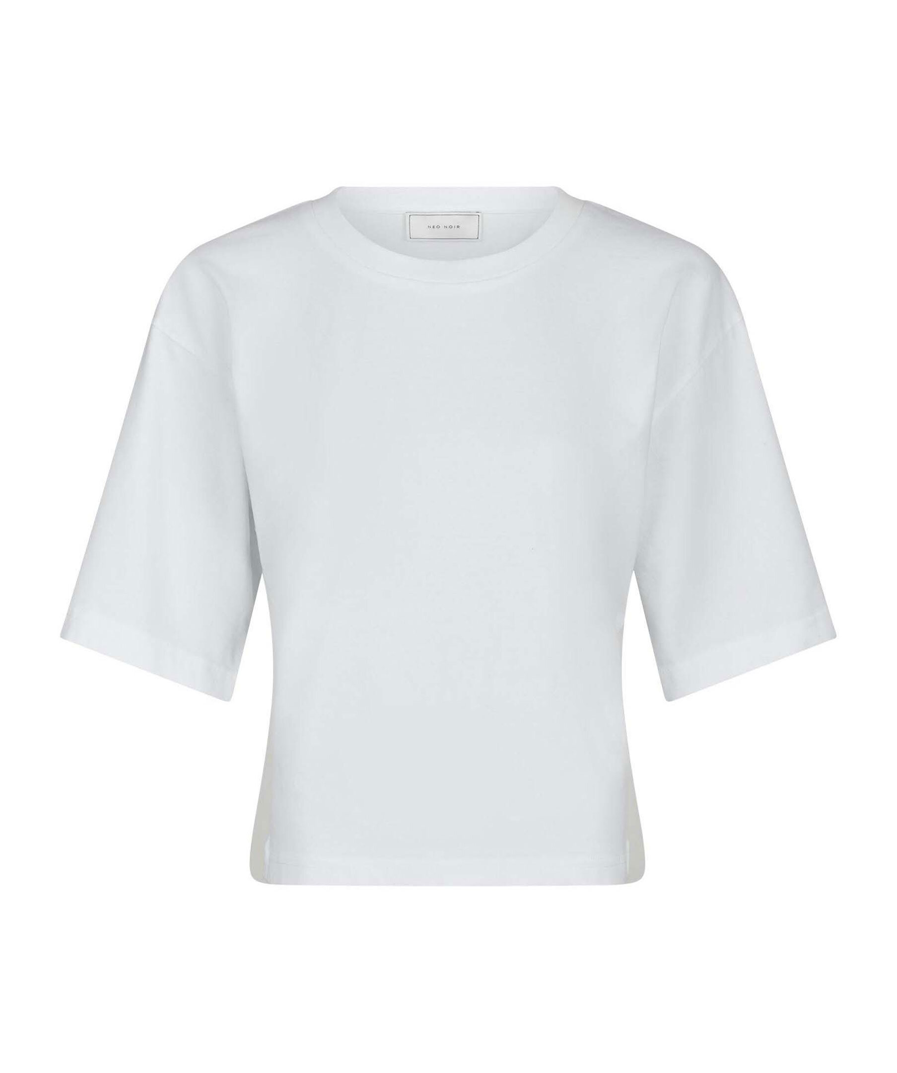 Vit t-shirt med skräddarsydd passform och boxiga, något längre ärmar. från Neo Noir. Rundad halsringning och nedfällda axlar. Tillverkad i bomull.