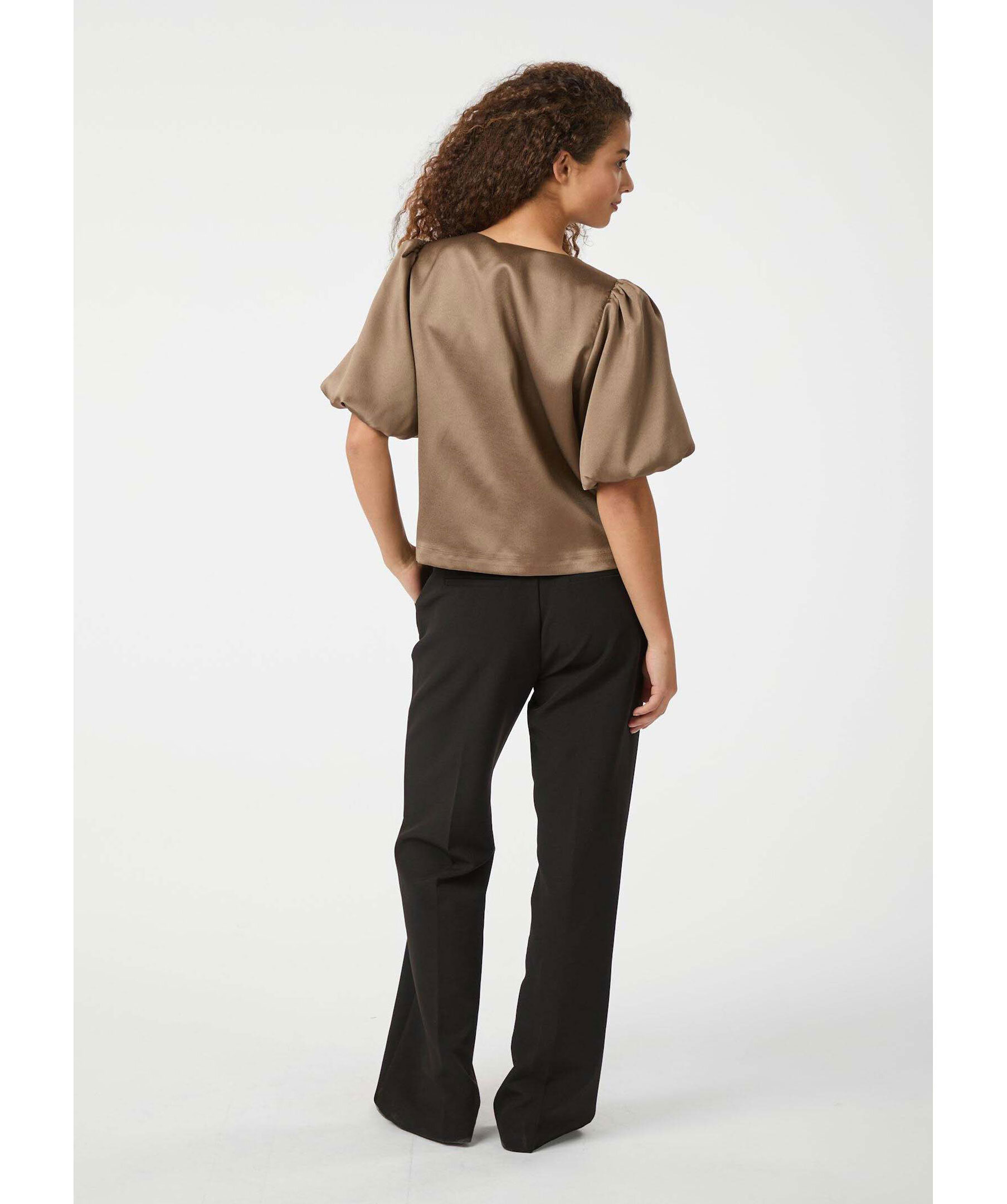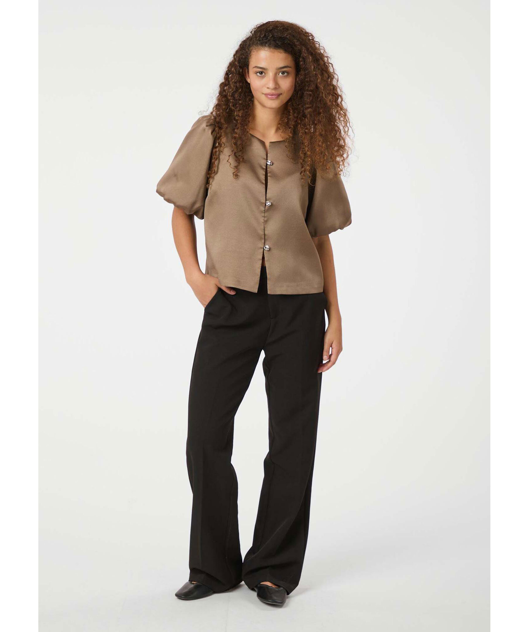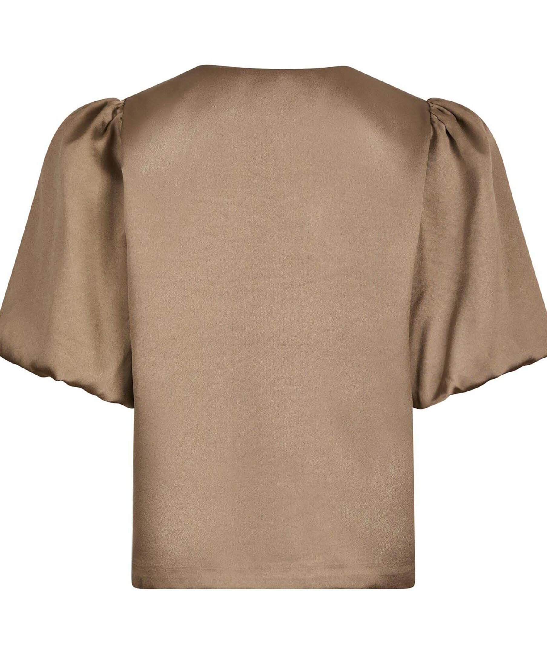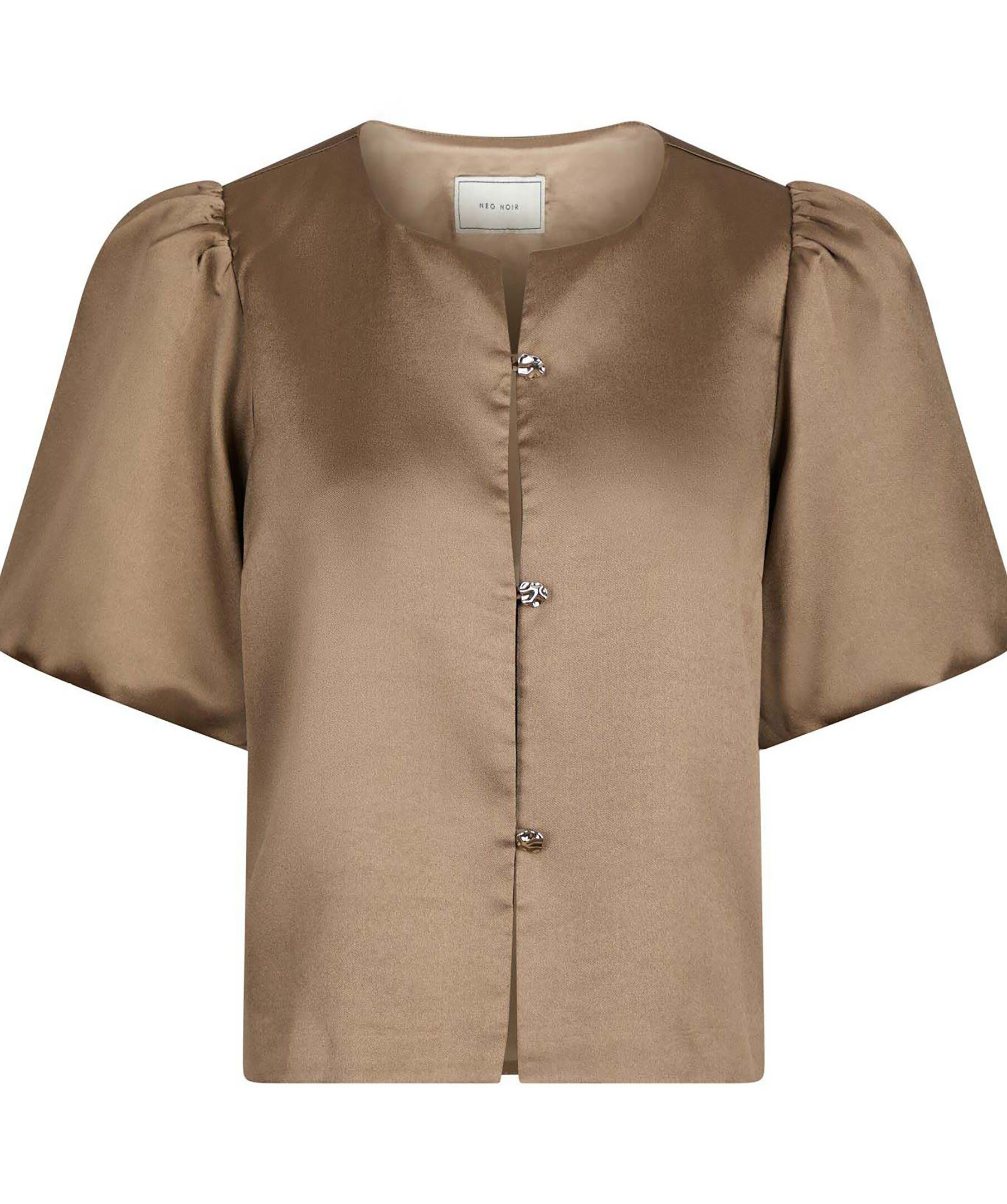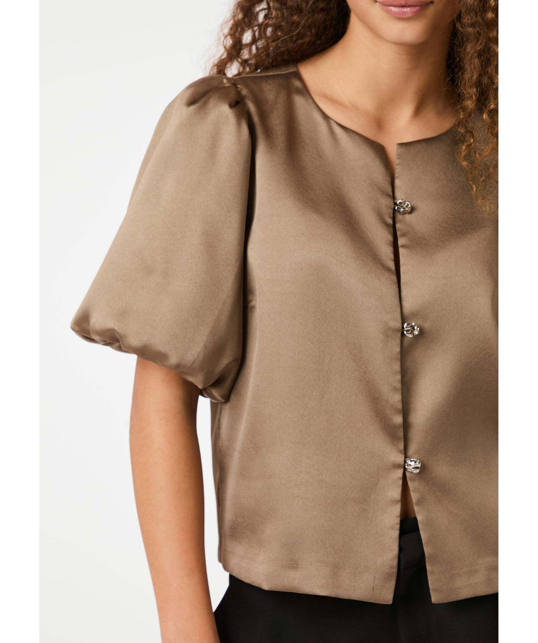 Taupefärgad blus från Neo Noir. Blusen har puffärmar och knäppning framtill. Tillverkad i polyester.
