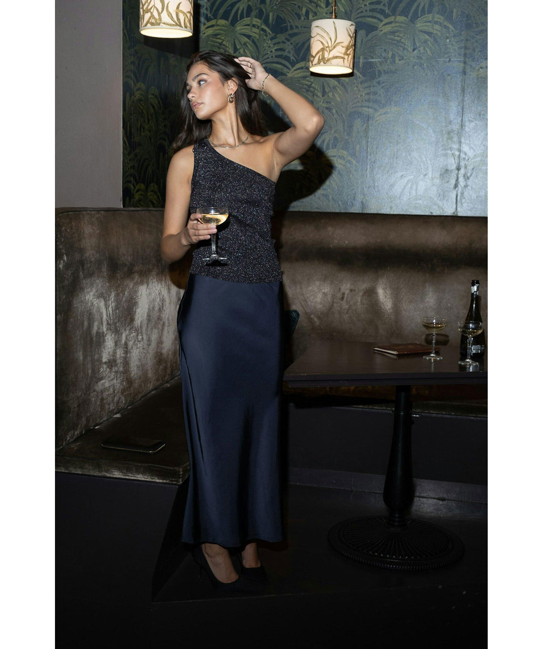 Svart midi-lång kjol från Neo Noir. Resår på insidan i midjan och snedskuren med en mycket smickrande passform. Tillverkad i 100% Polyester.