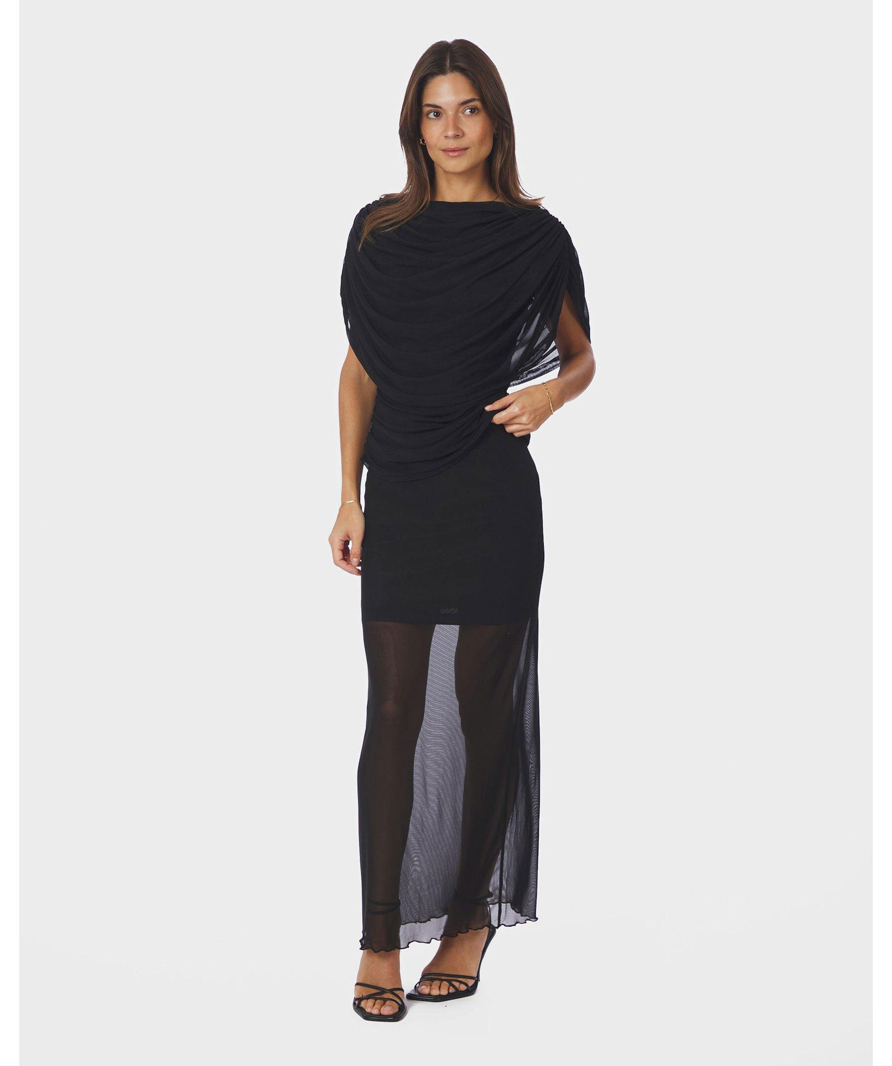 Neo Noir Cottuna Drapy Mesh Top - Svart