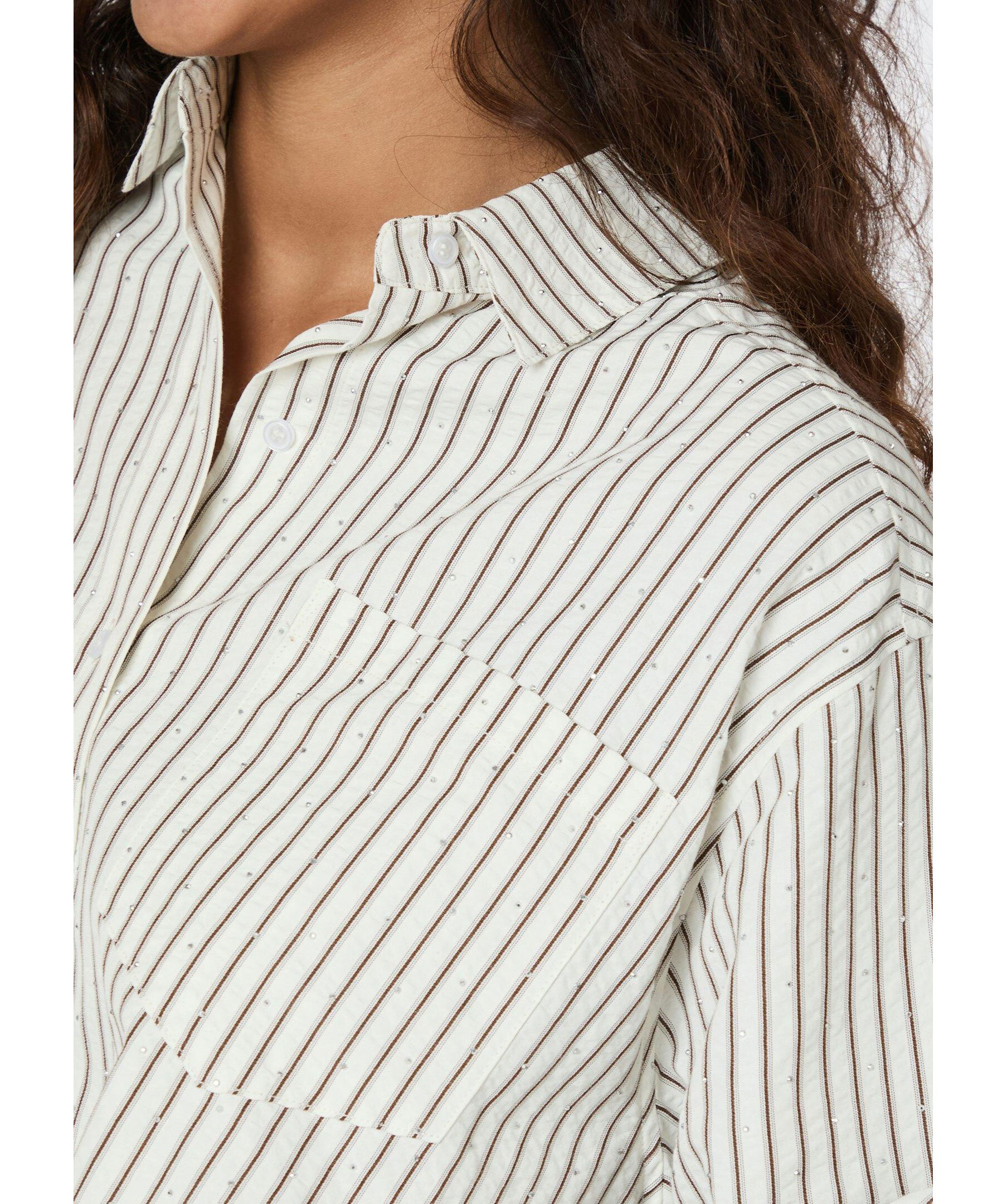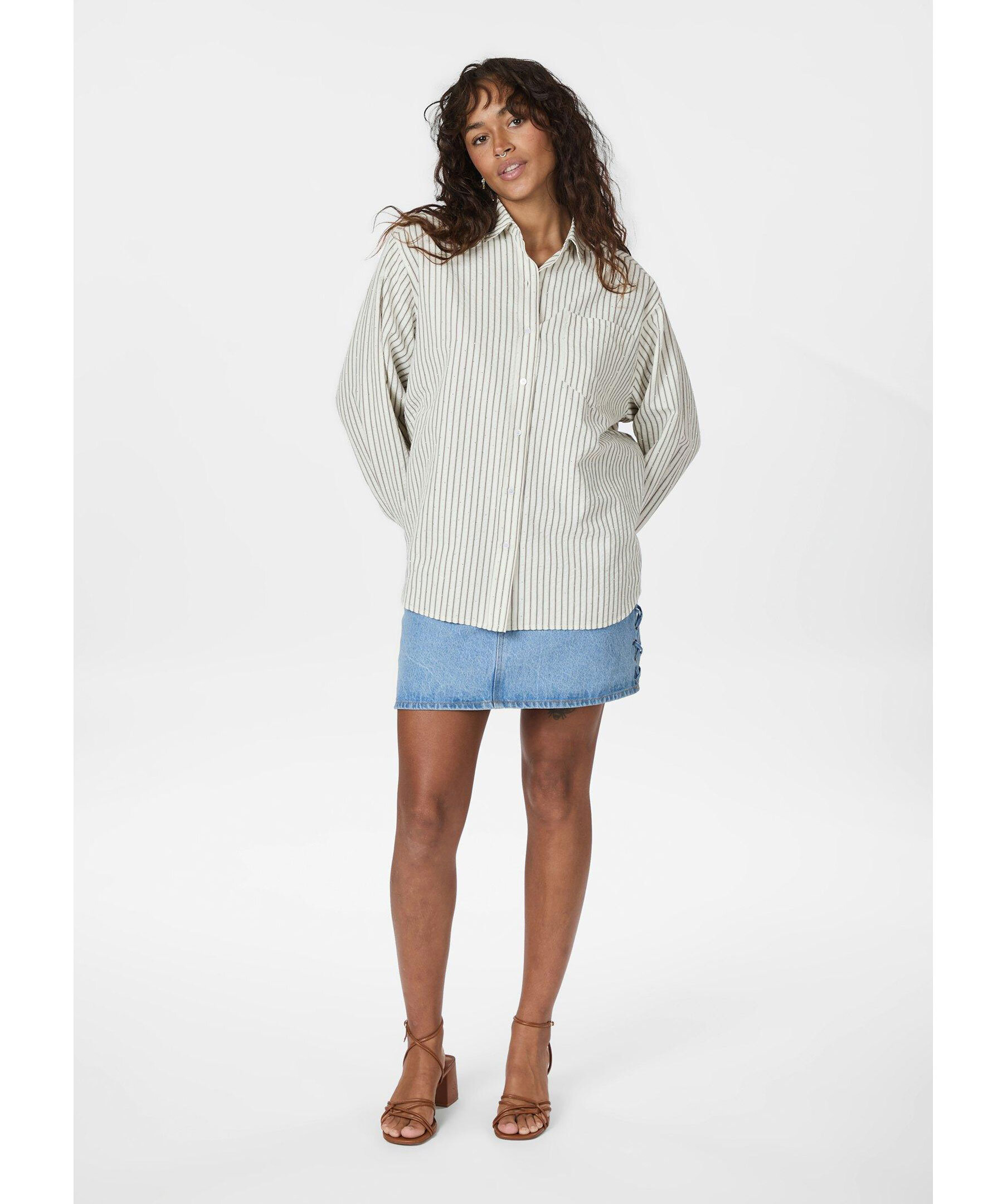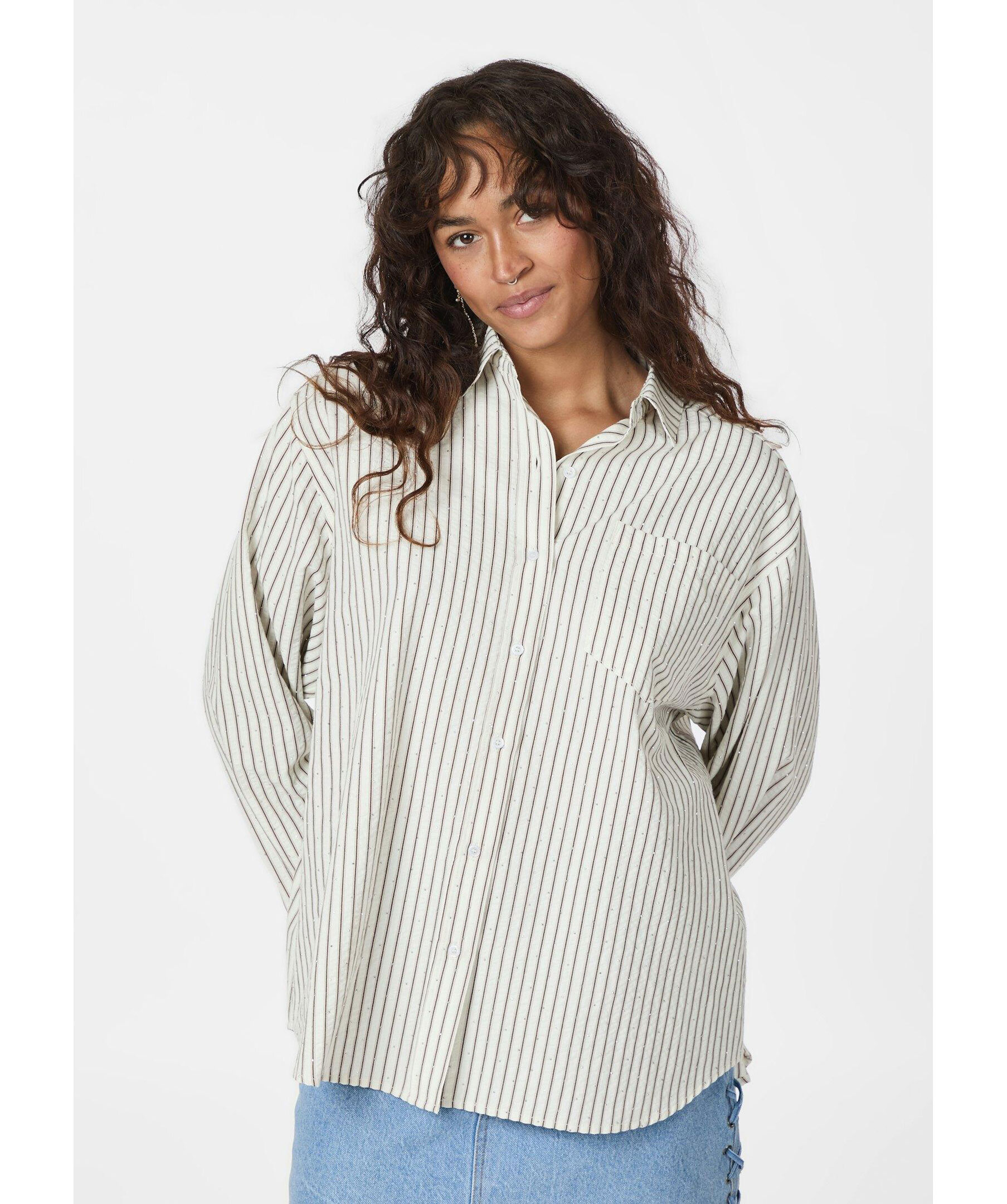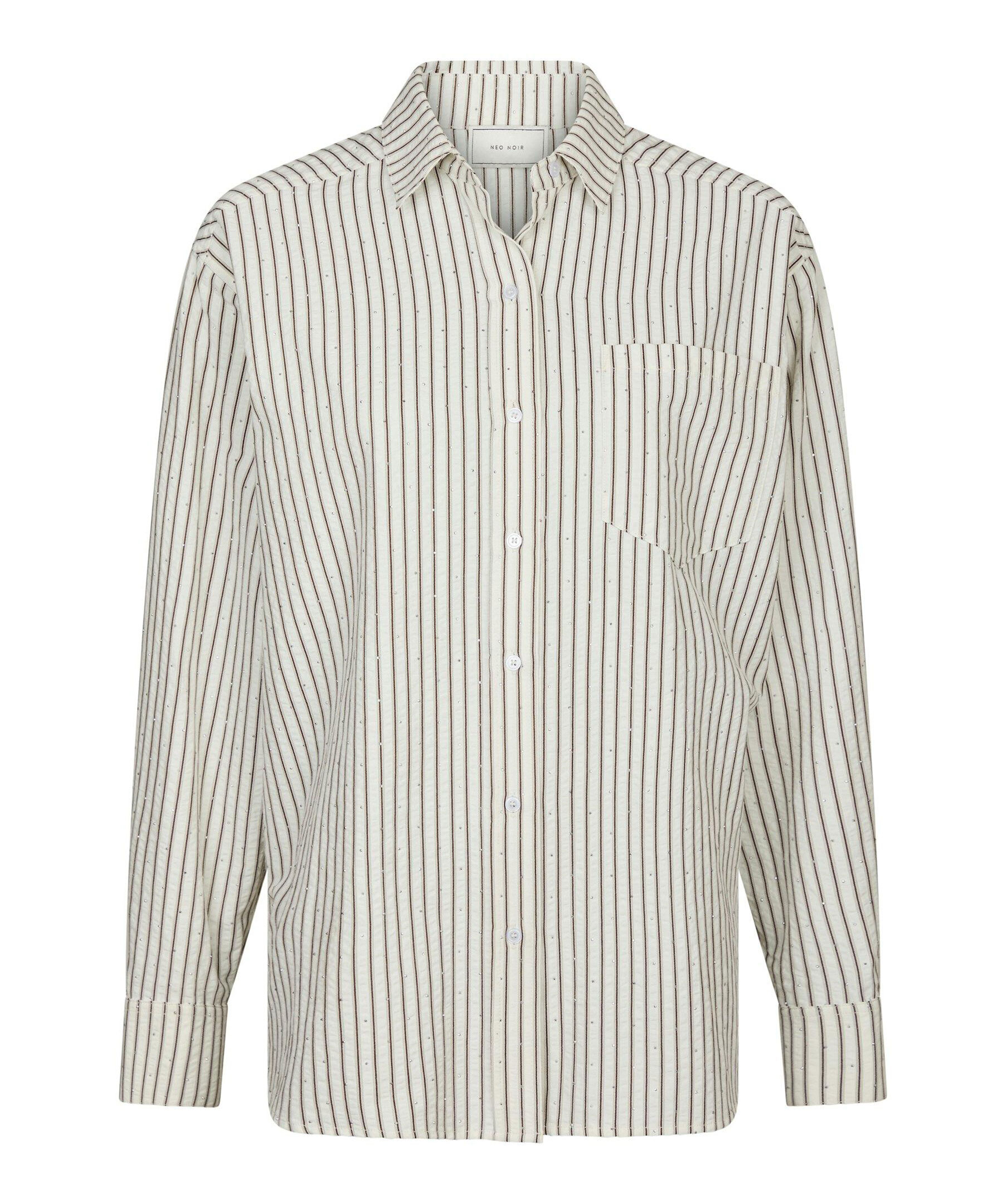 Randig skjorta från Neo Noir. Skjortan stängs med knappar framtill och har en påsydd bröstficka samt glitterstenar över hela plagget. Tillverkad i en polyester- och bomullsblandning.