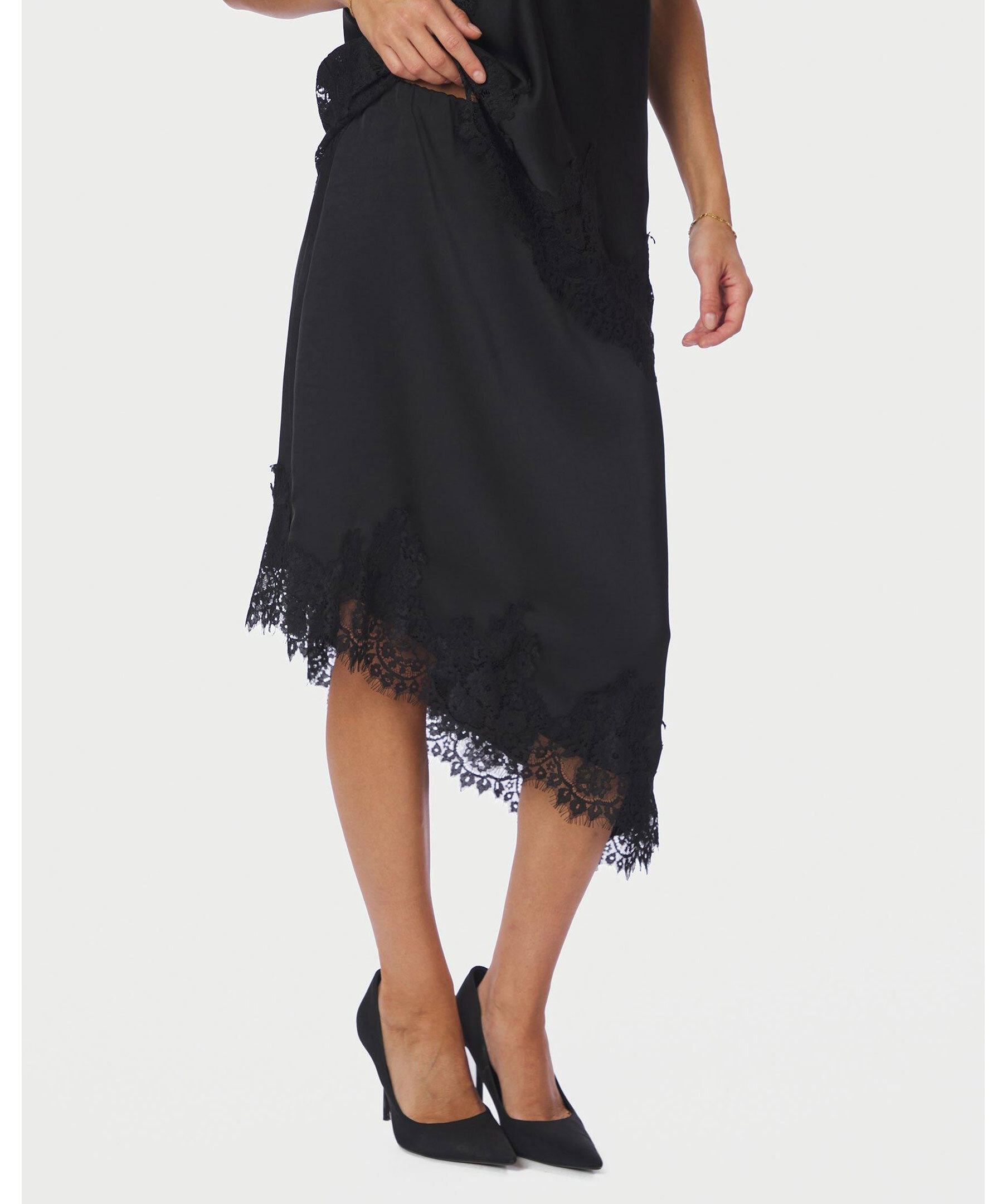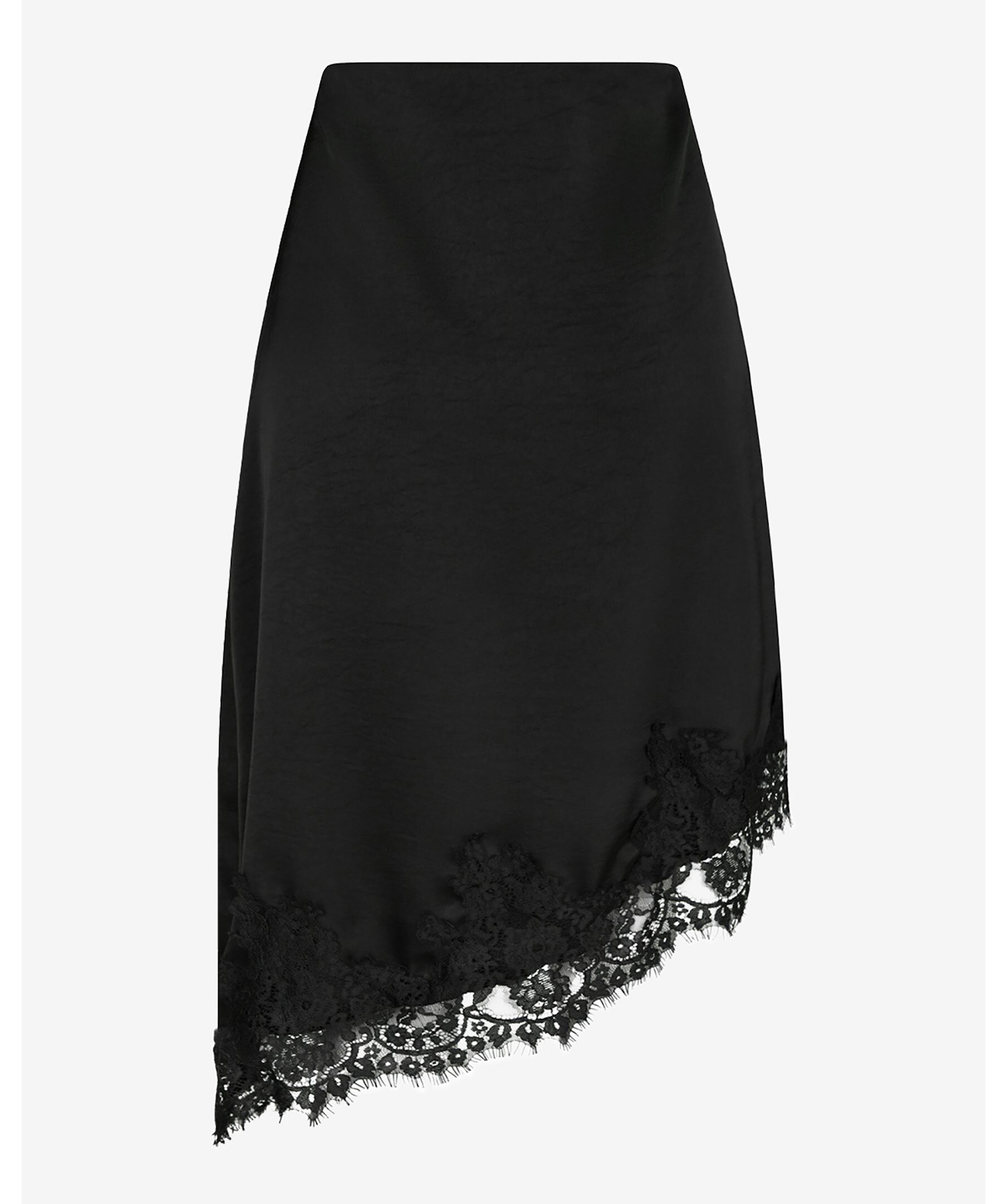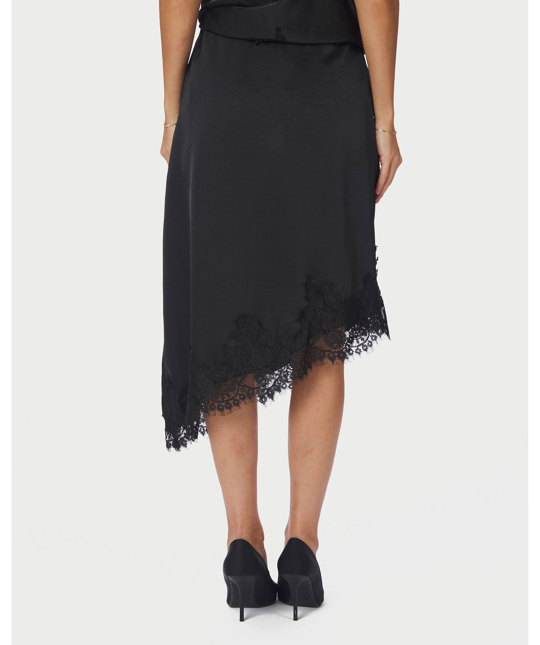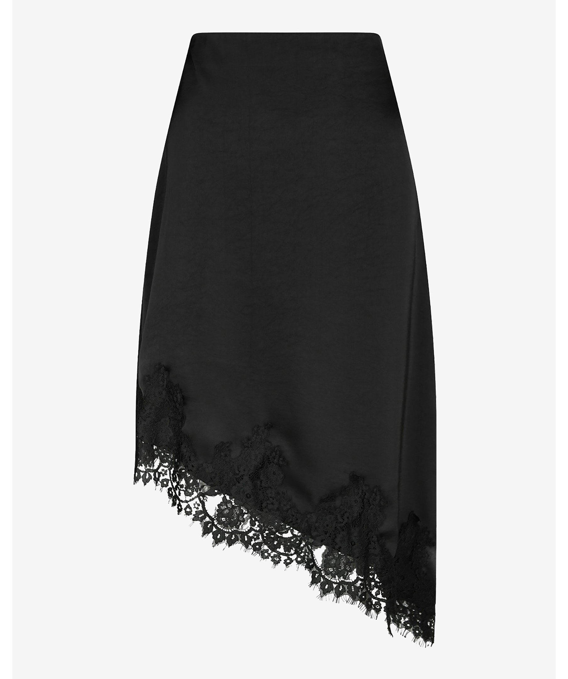 Kjol med spetsdetaljer från Neo Noir. Kjolen har en asymmetrisk design och är tillverkade i en vacker satinkvalitet.