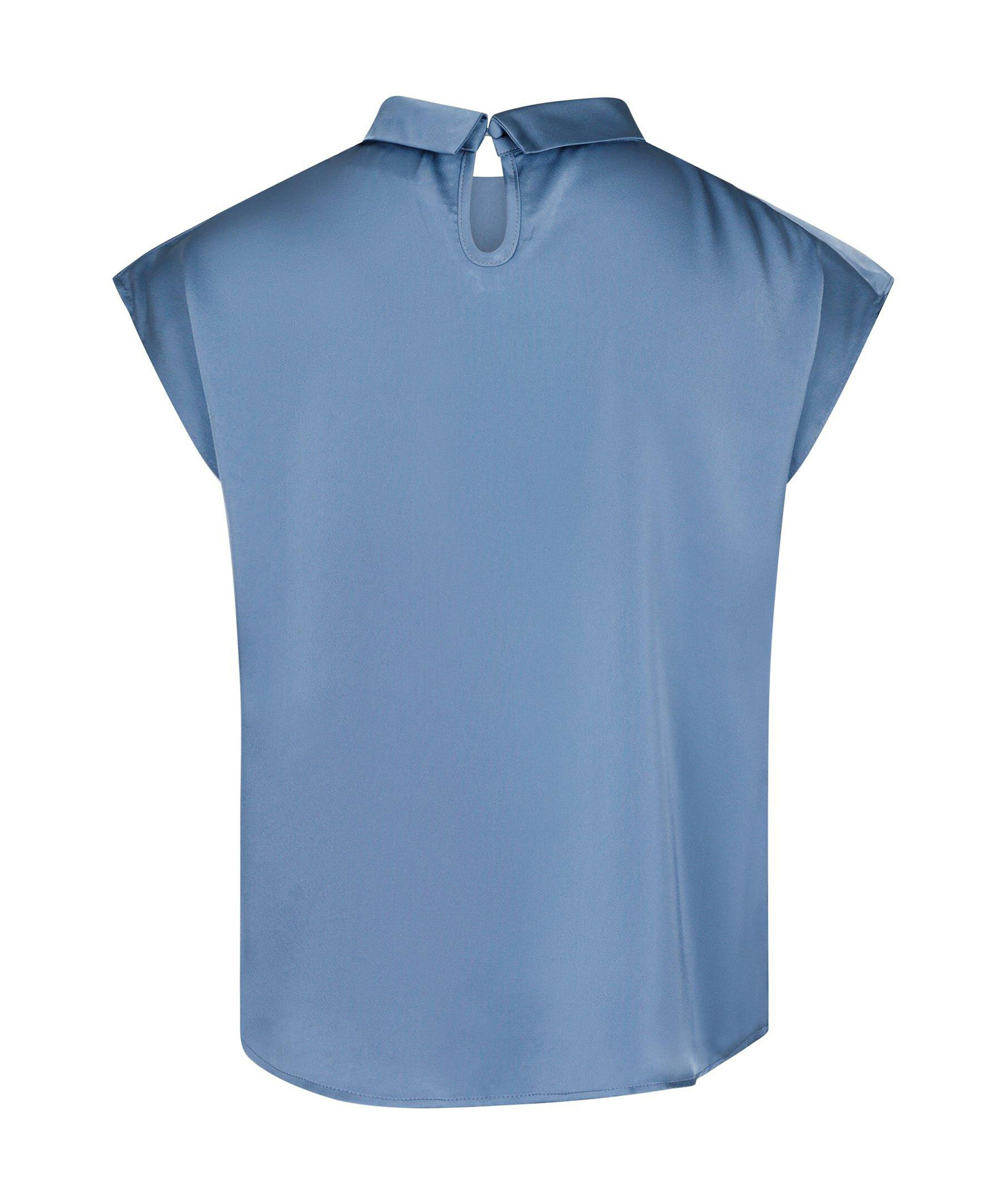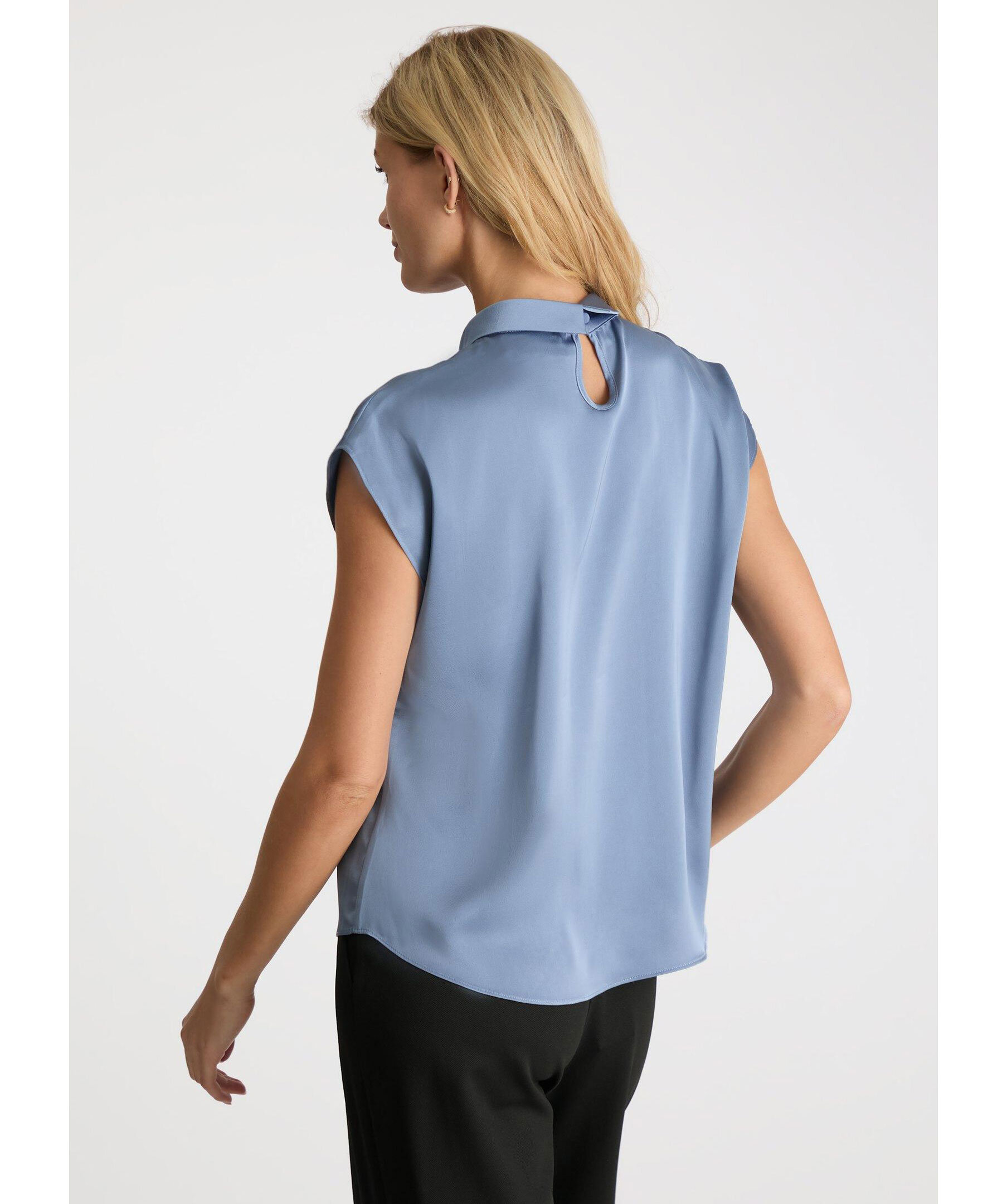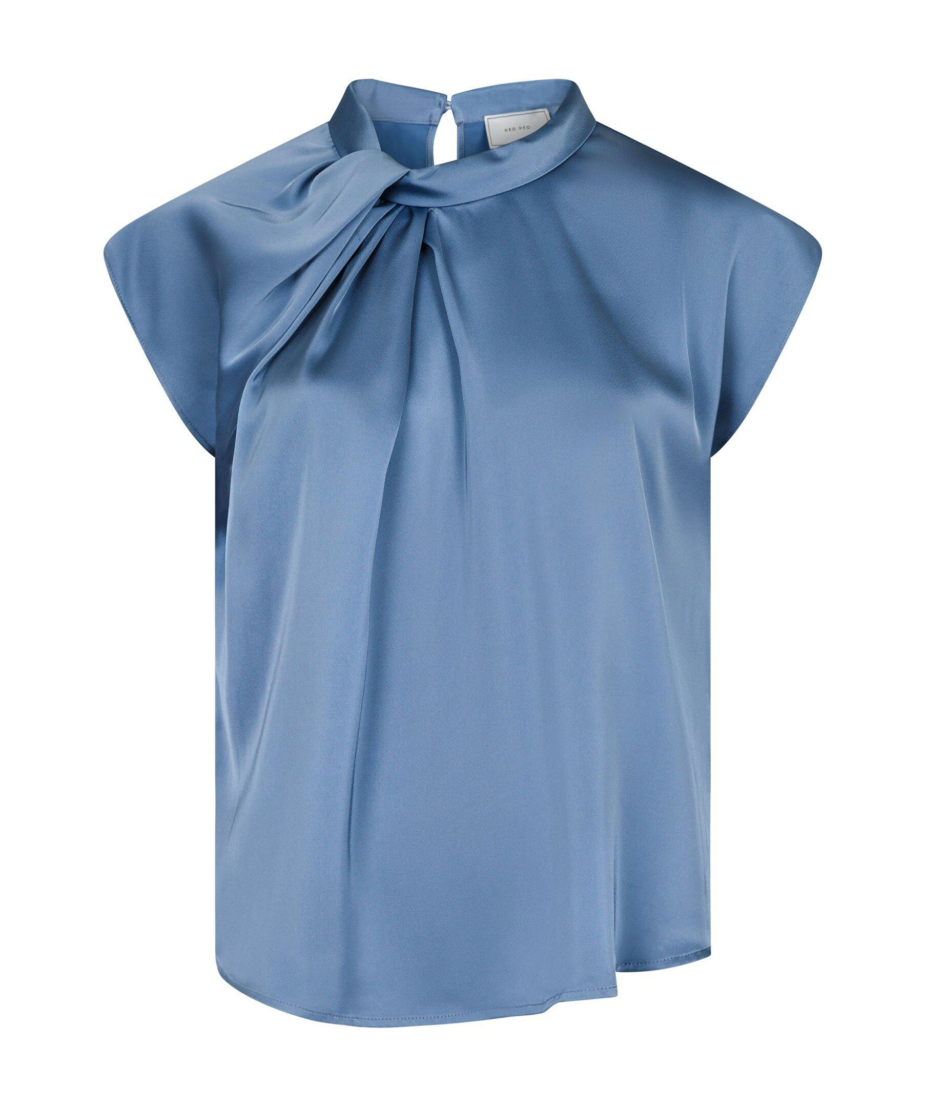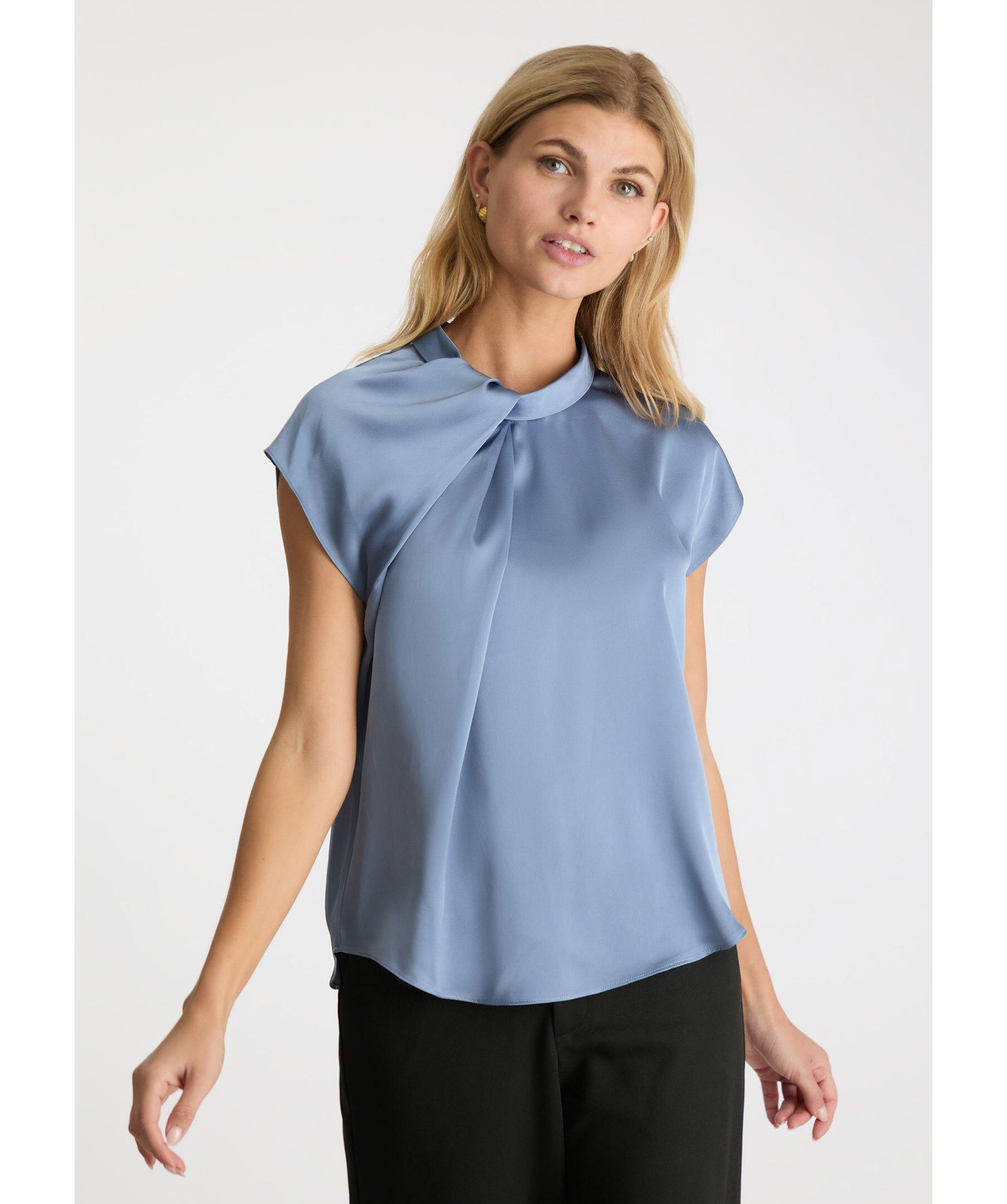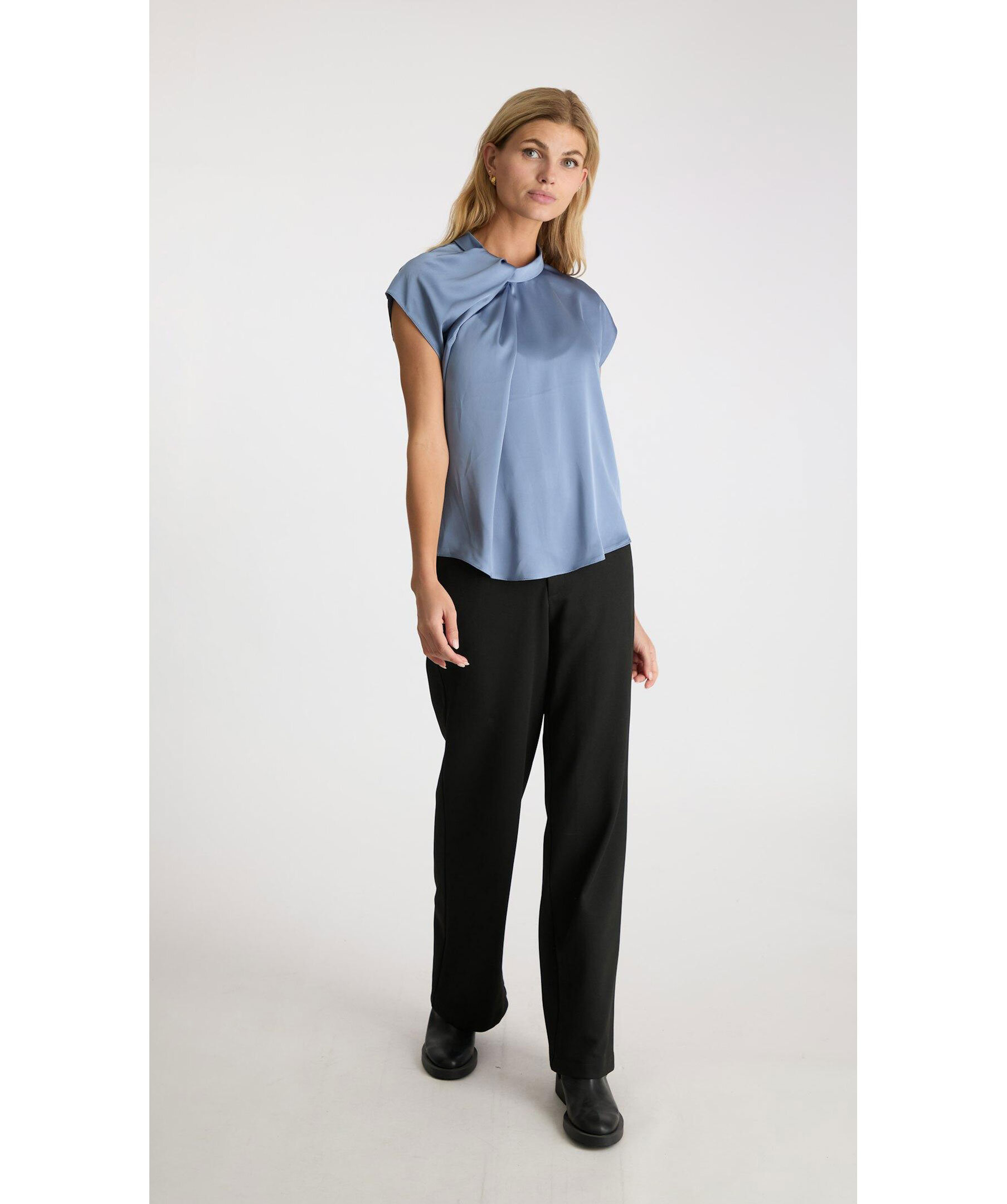 Ljusblå satinblus från Neo Noir. hög krage med knytdetalj med drapering. Knäppning baktill. Avslappnad passform.