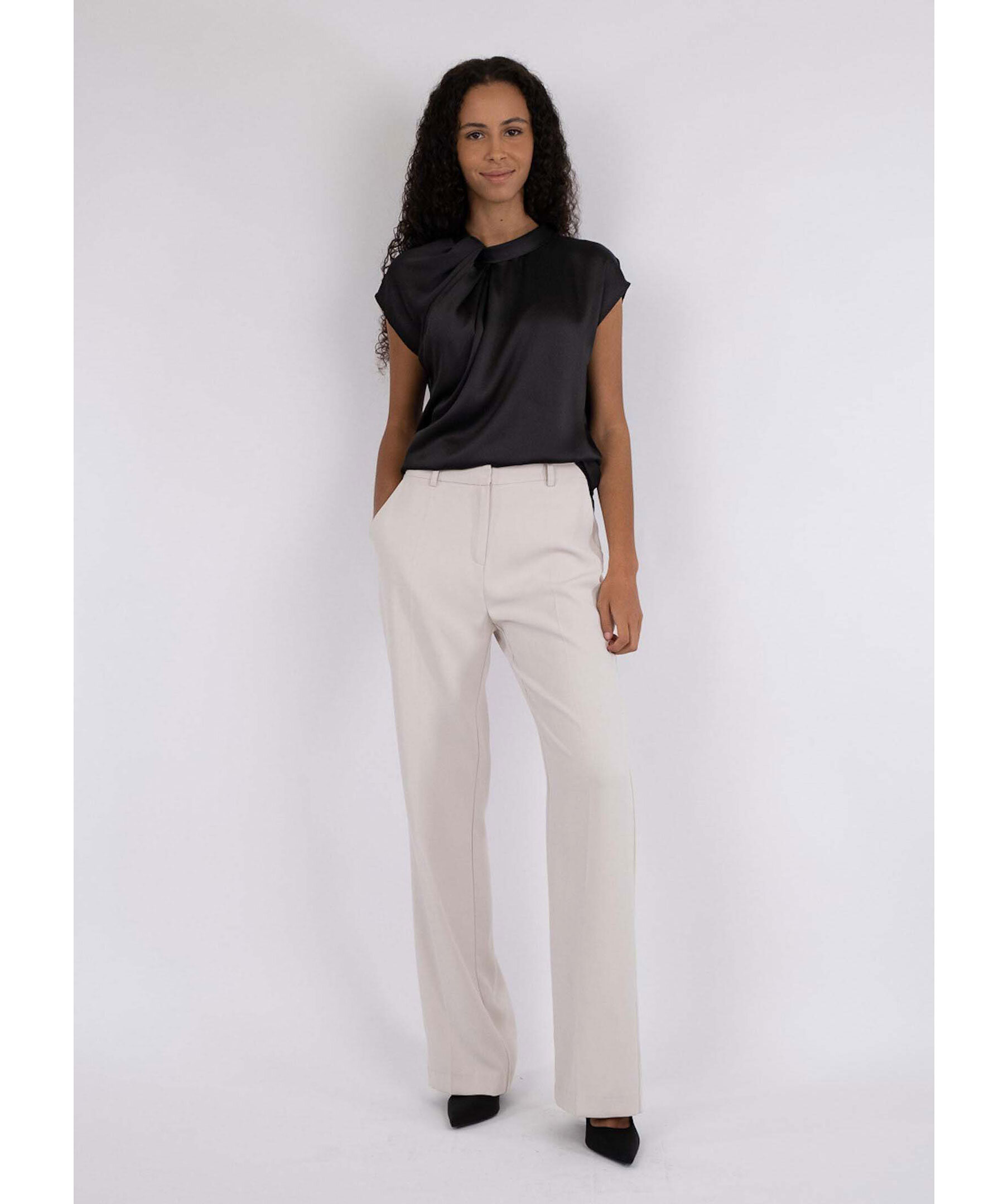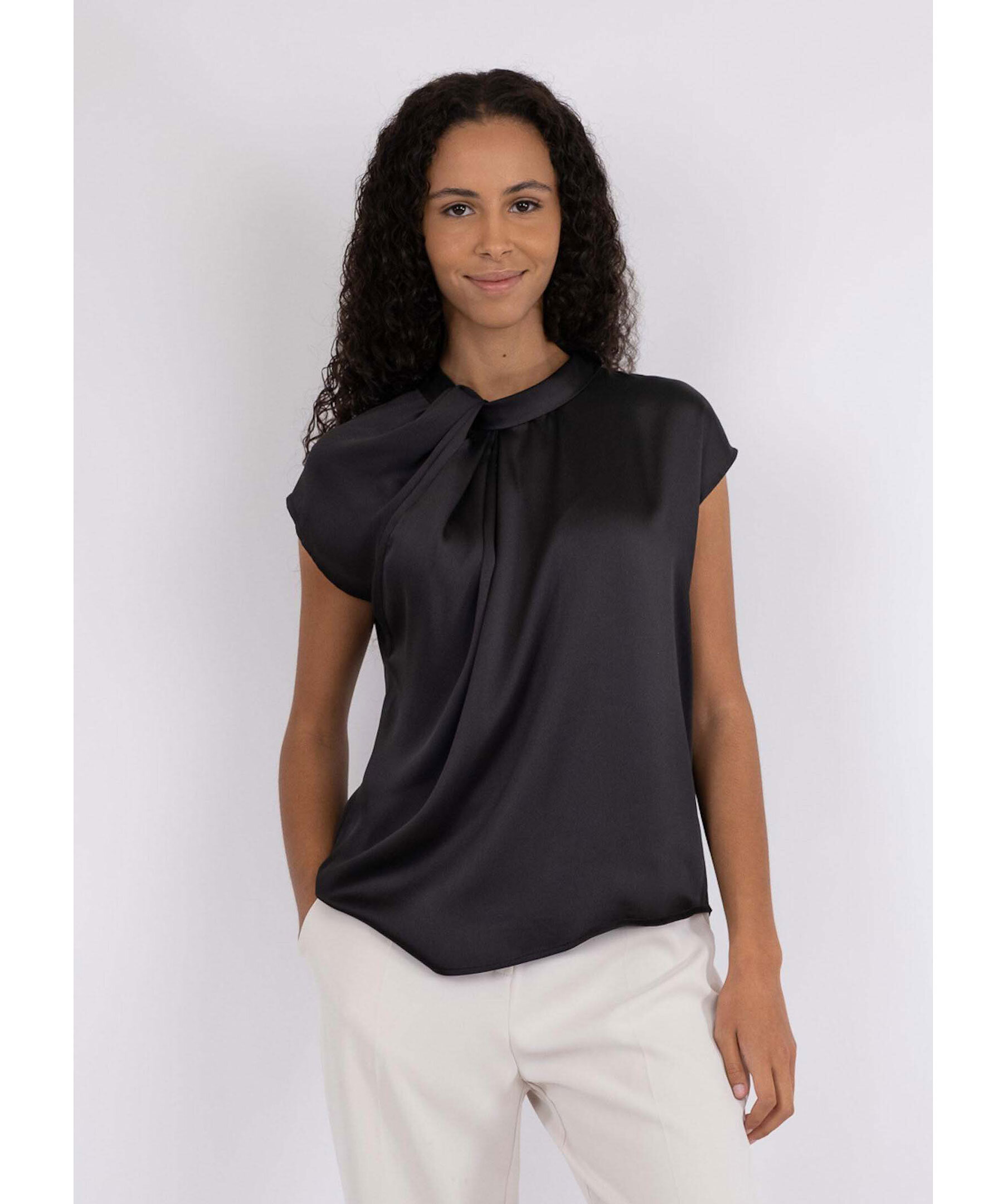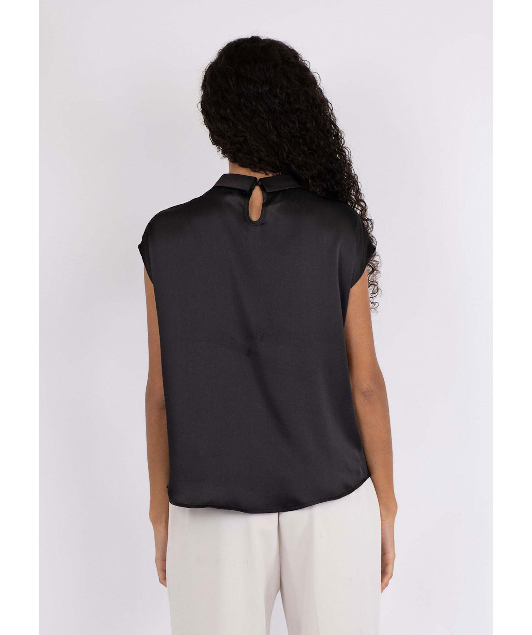 Svart satinblus från Neo Noir. Hög krage med knytdetalj med drapering. Knäppning baktill. Avslappnad passform. Tillverkad i polyester.