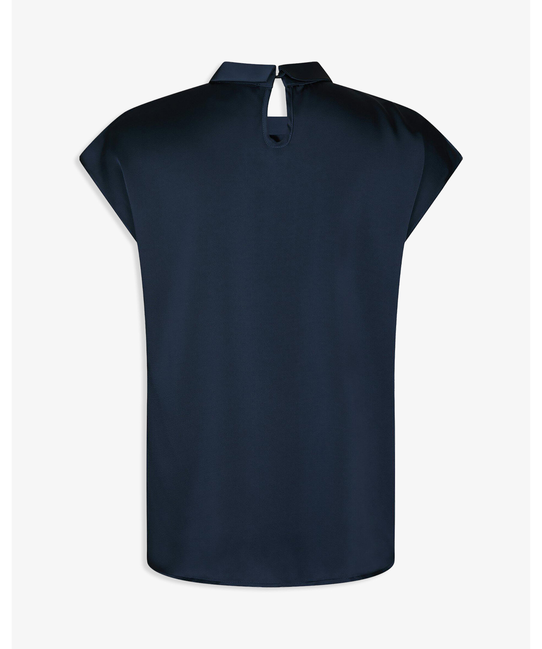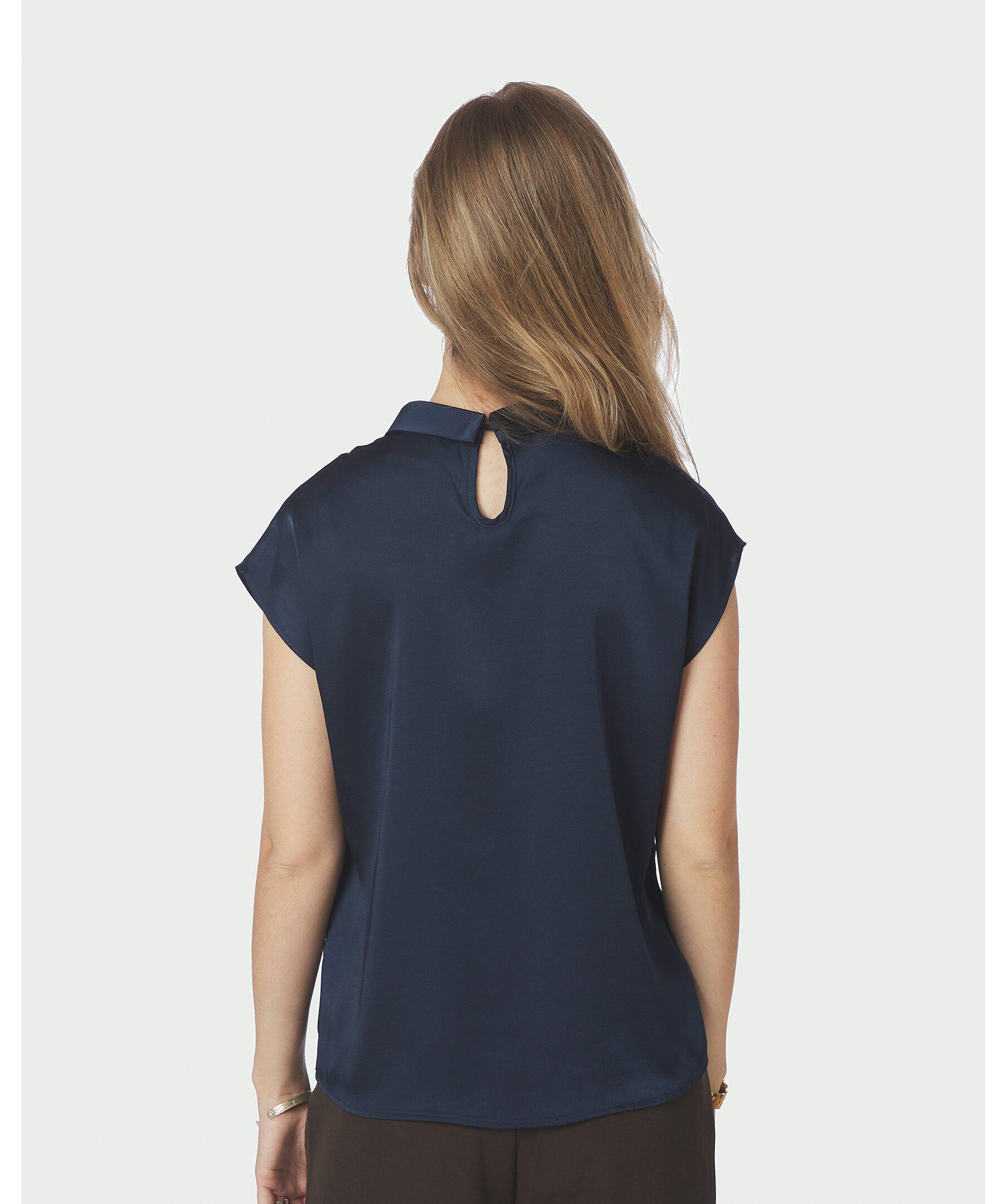 Mörkblå satinblus från Neo Noir. Hög krage med knytdetalj med drapering. Knäppning baktill. Avslappnad passform. Tillverkad i polyester.
