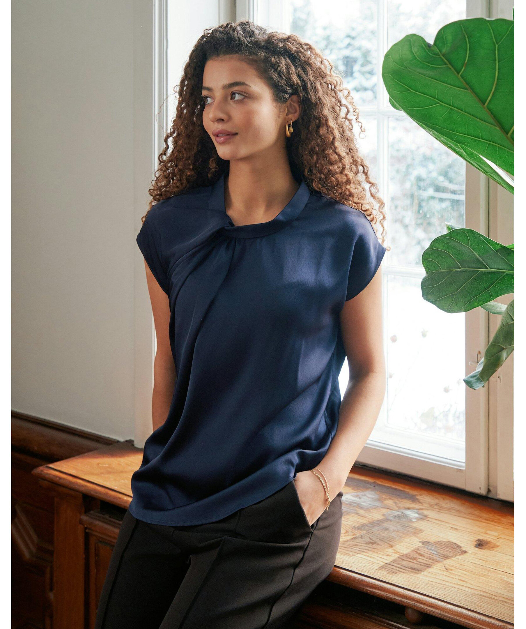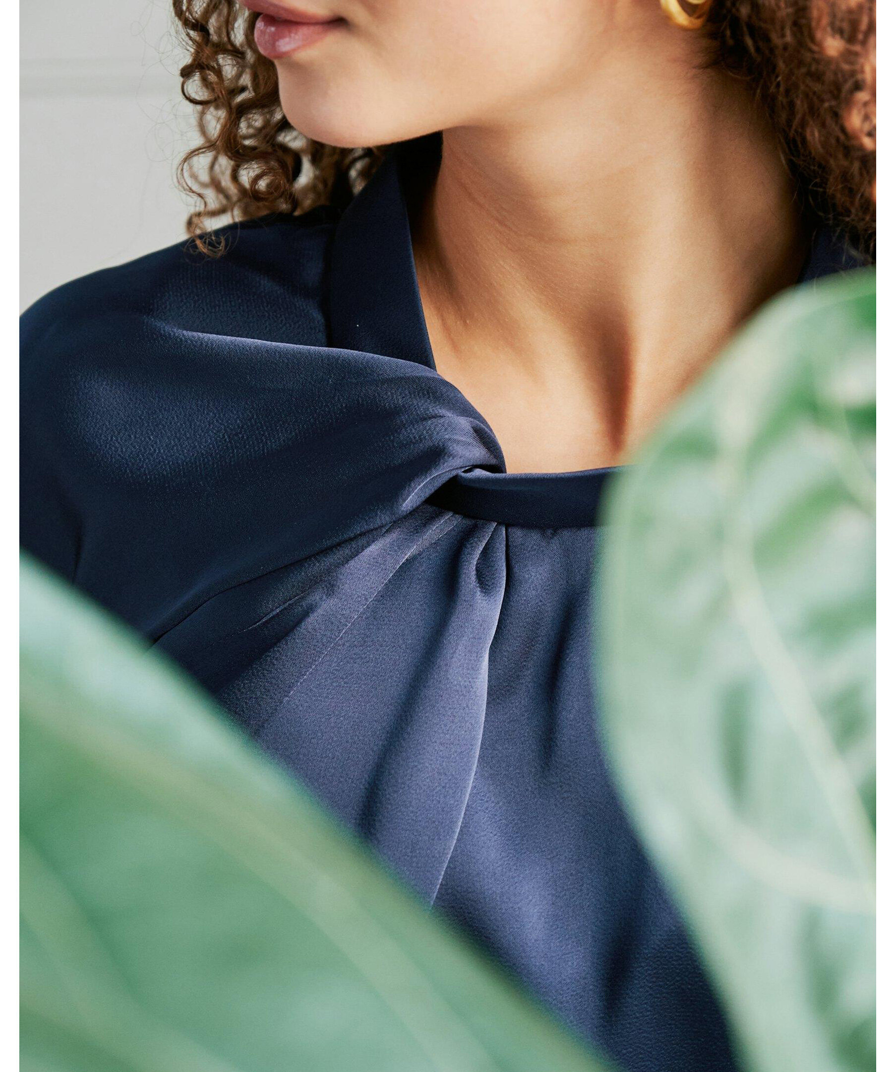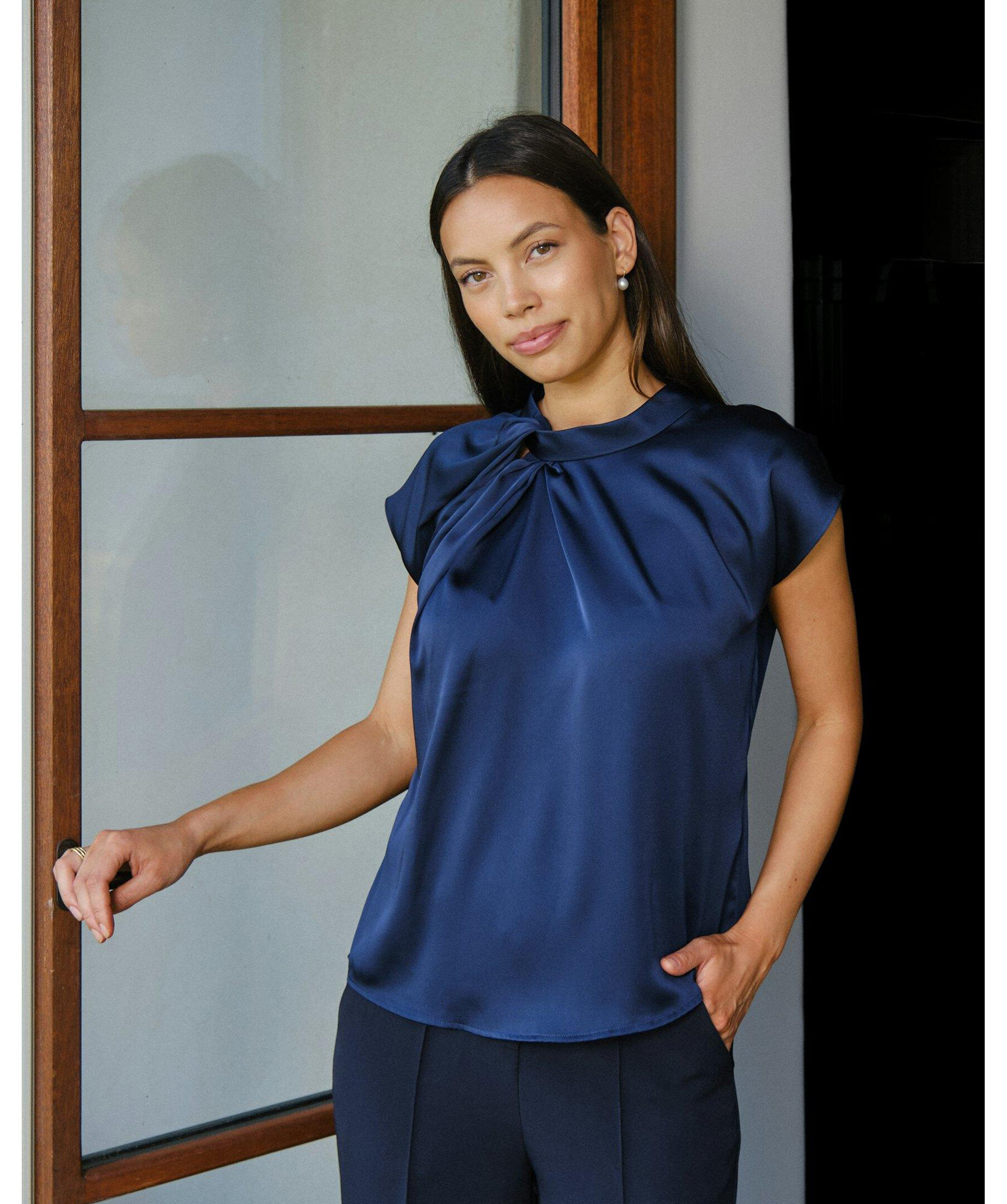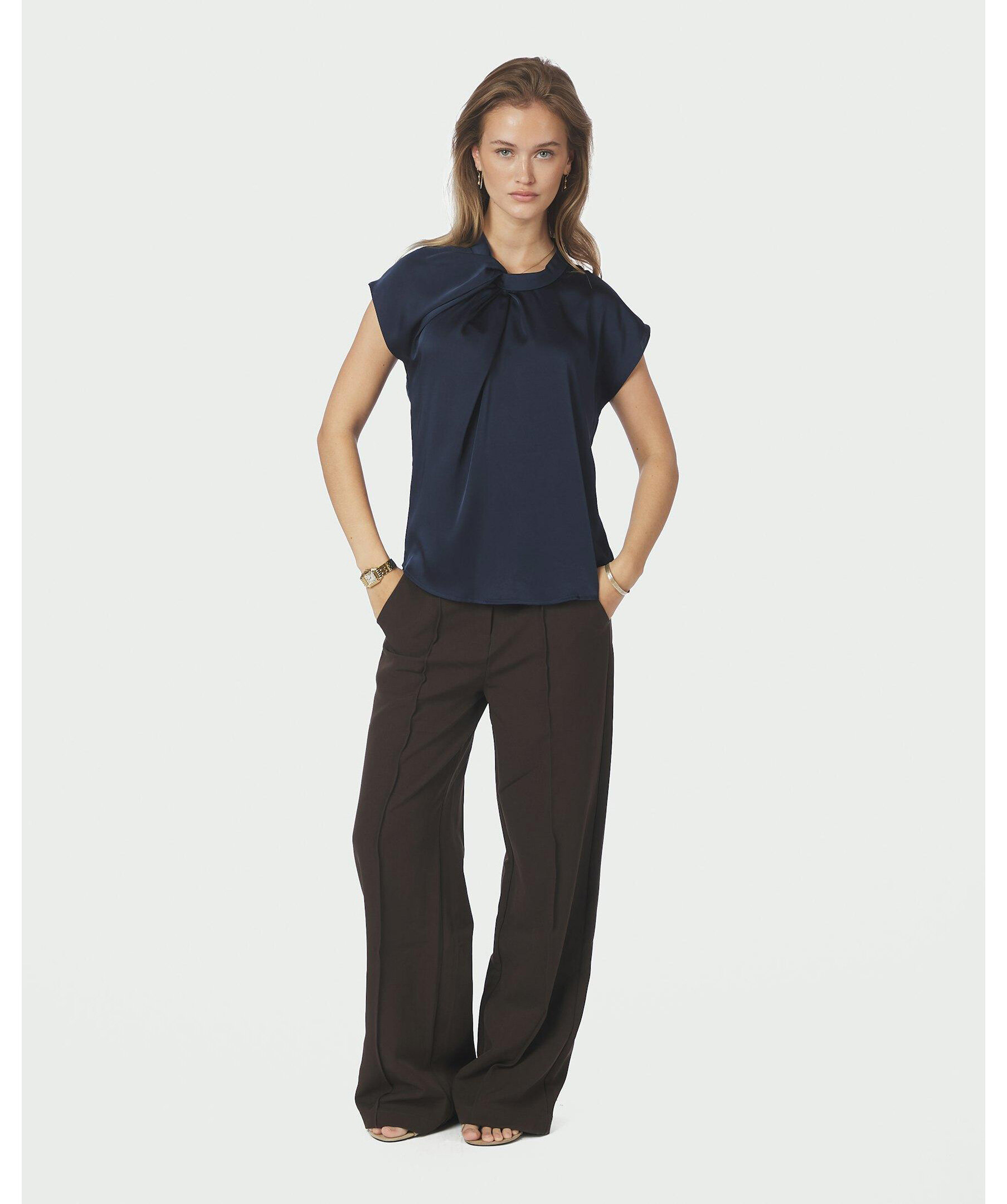 Neo Noir Fleur Drapy Satin Blouse - Navy